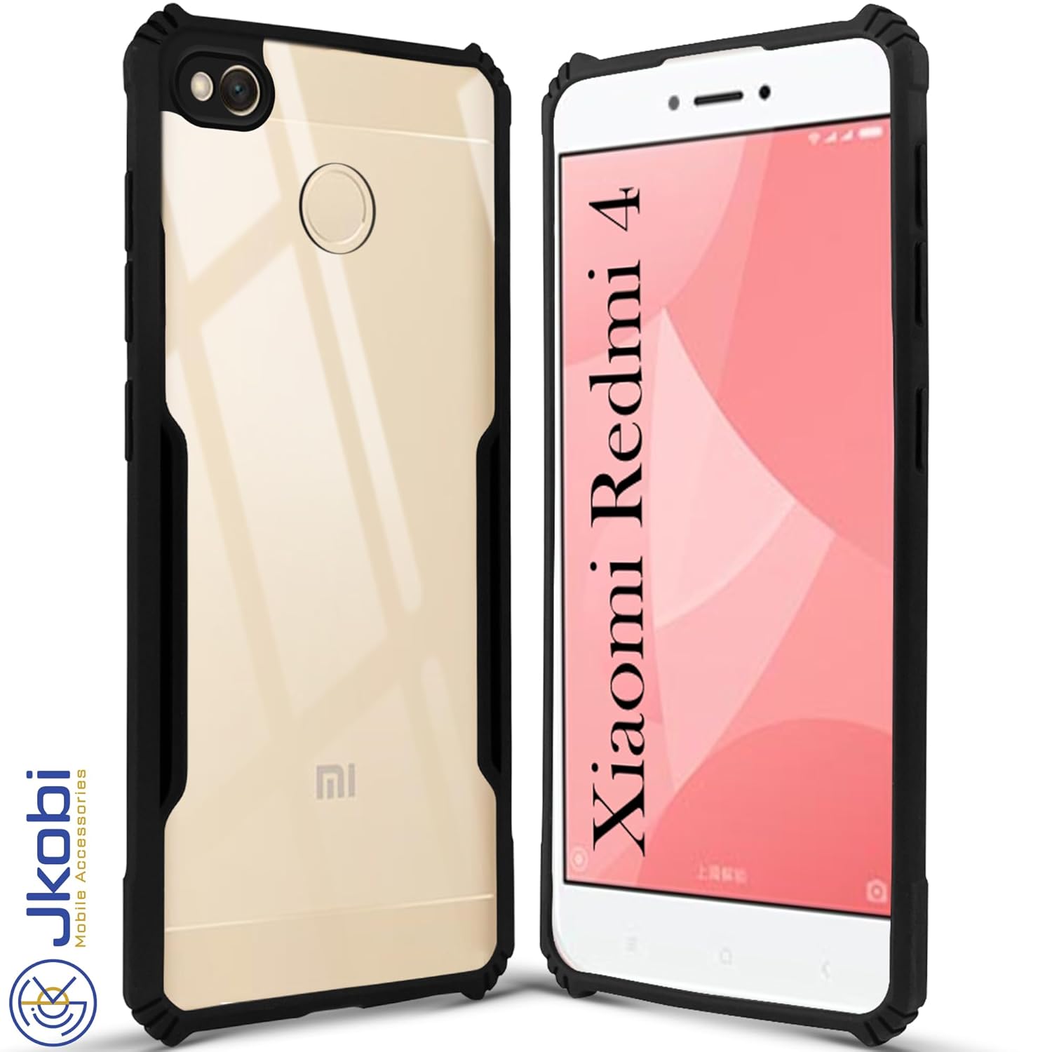 For Xiaomi Redmi 4 Back Cover Case (Shockproof with Polycarbonate Clear Panel | Professional Black)