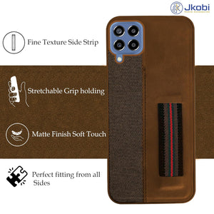 For Samsung Galaxy M33 5G Back Cover Case (Professional PU Leather | Strip Chain Holder Socket)