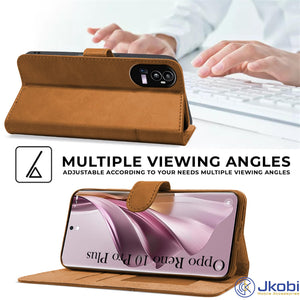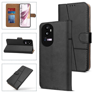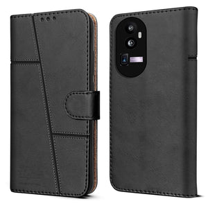 for Oppo Reno 10 Pro Plus Flip Cover Case (Stitched Leather with Magnetic Closure | Black)