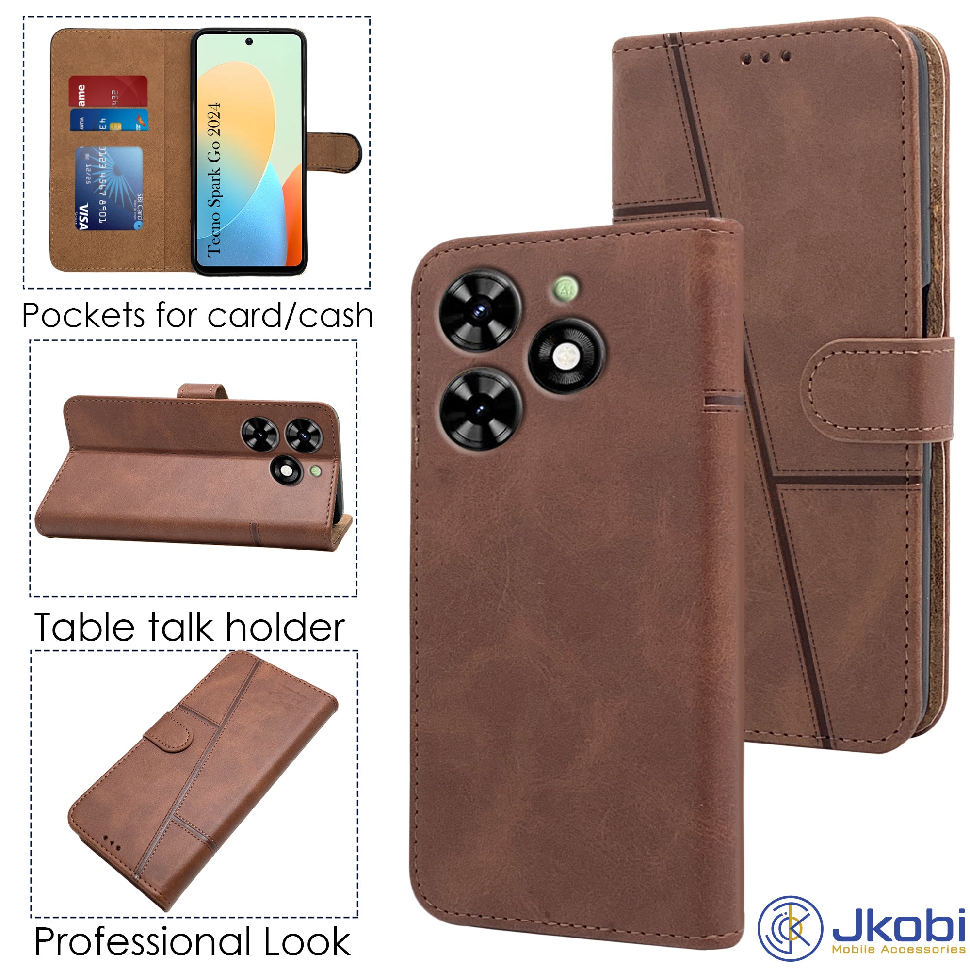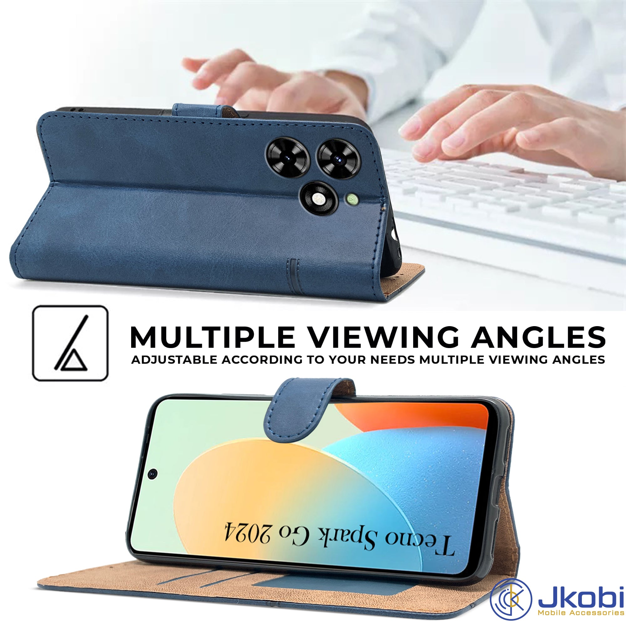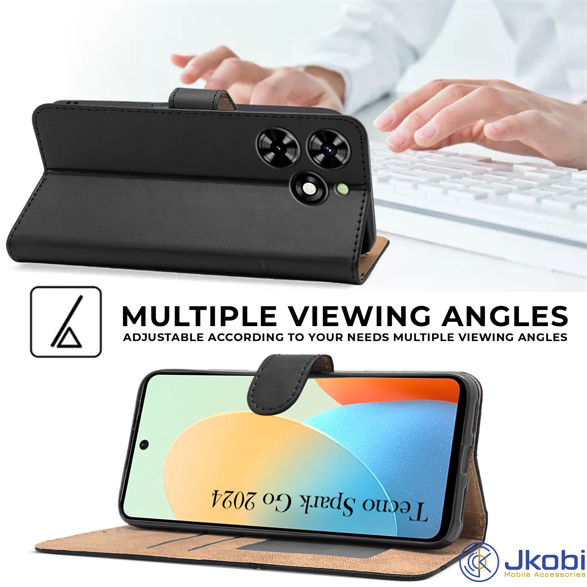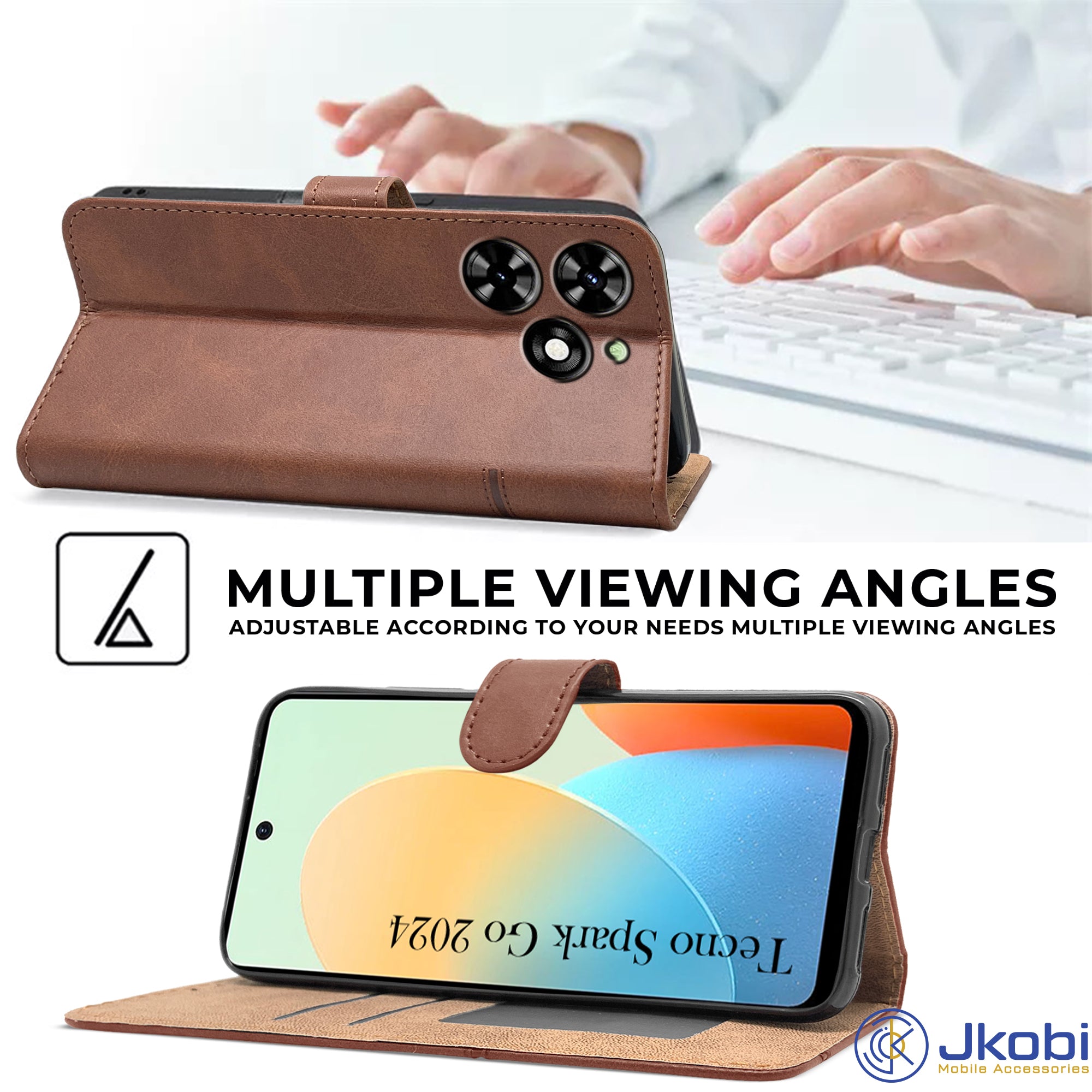 For Tecno Spark Go 2024 Flip Case Cover ( Stitched Leather with Magnetic Closure)