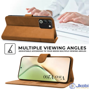 For Vivo Y200 Flip Case Cover ( Stitched Leather with Magnetic Closure)