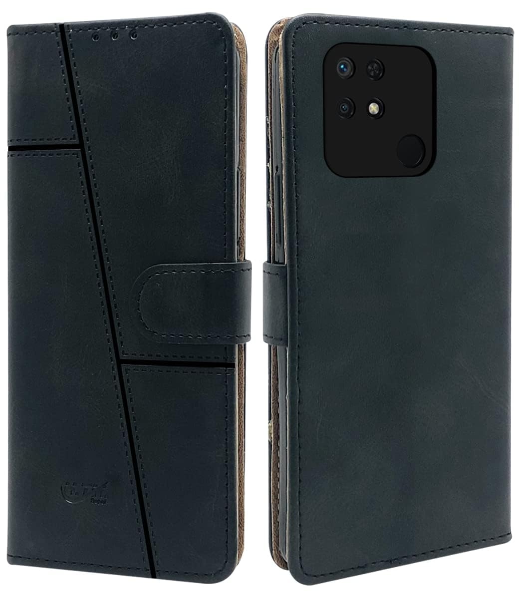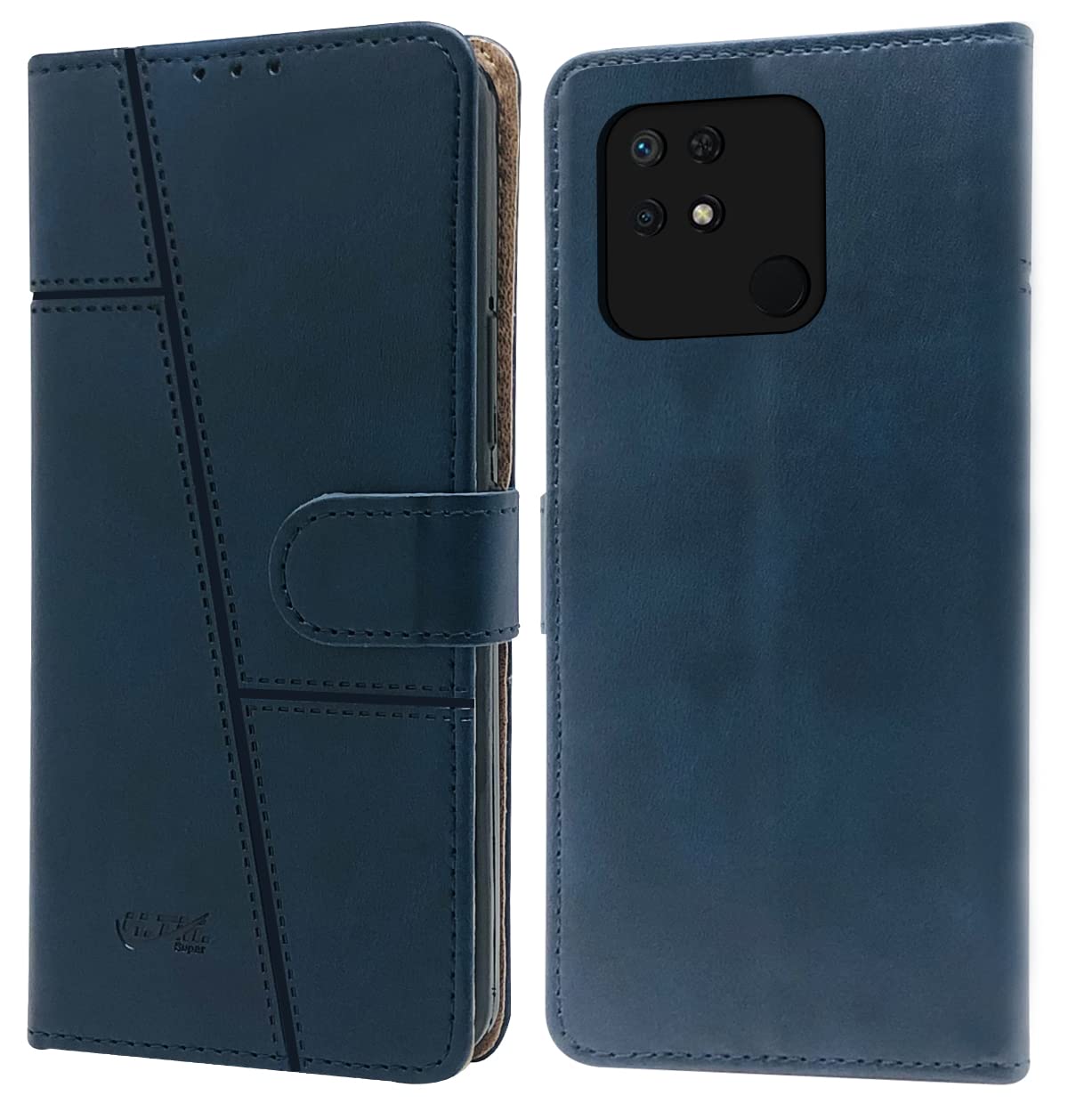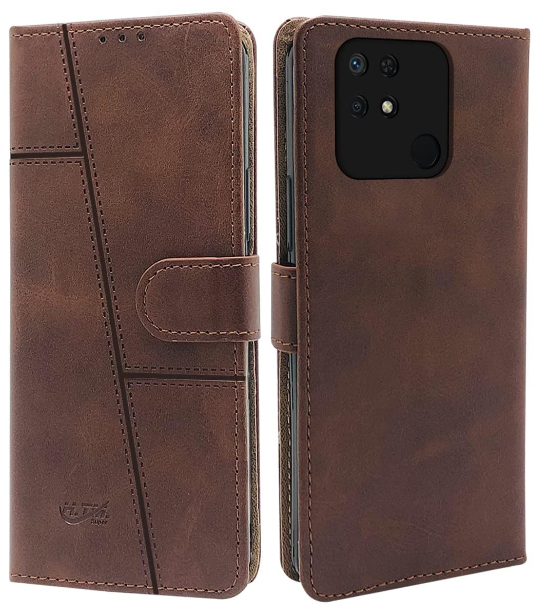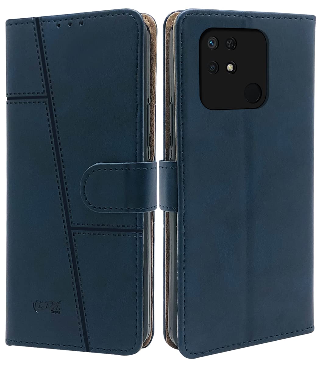 For Xiaomi Redmi 10C Flip Case Cover (Stitched Leather with Magnetic Closure)