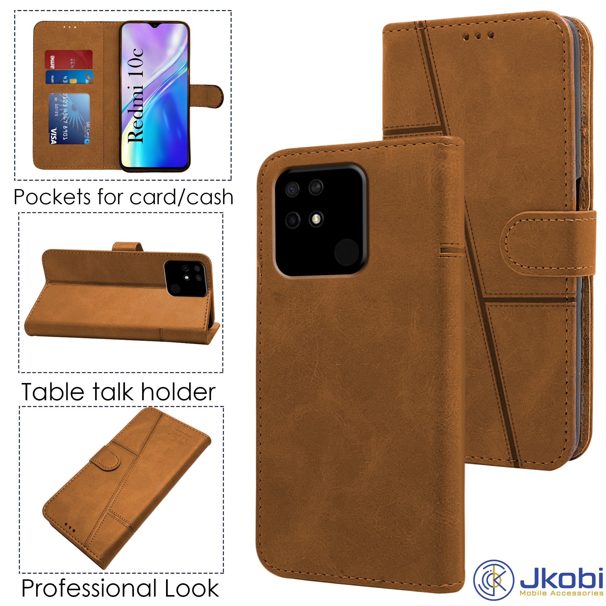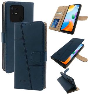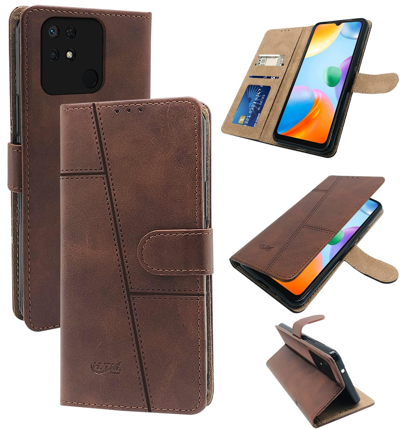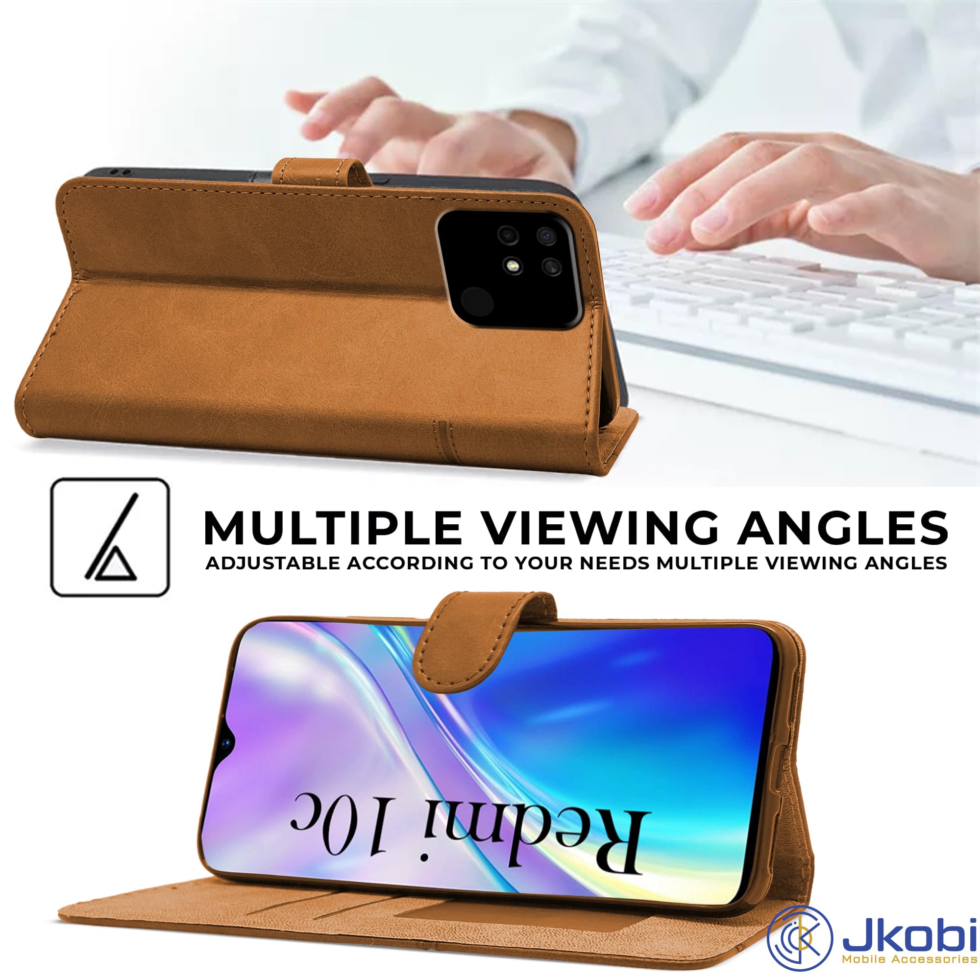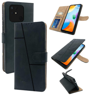 For Xiaomi Redmi 10C Flip Case Cover (Stitched Leather with Magnetic Closure)