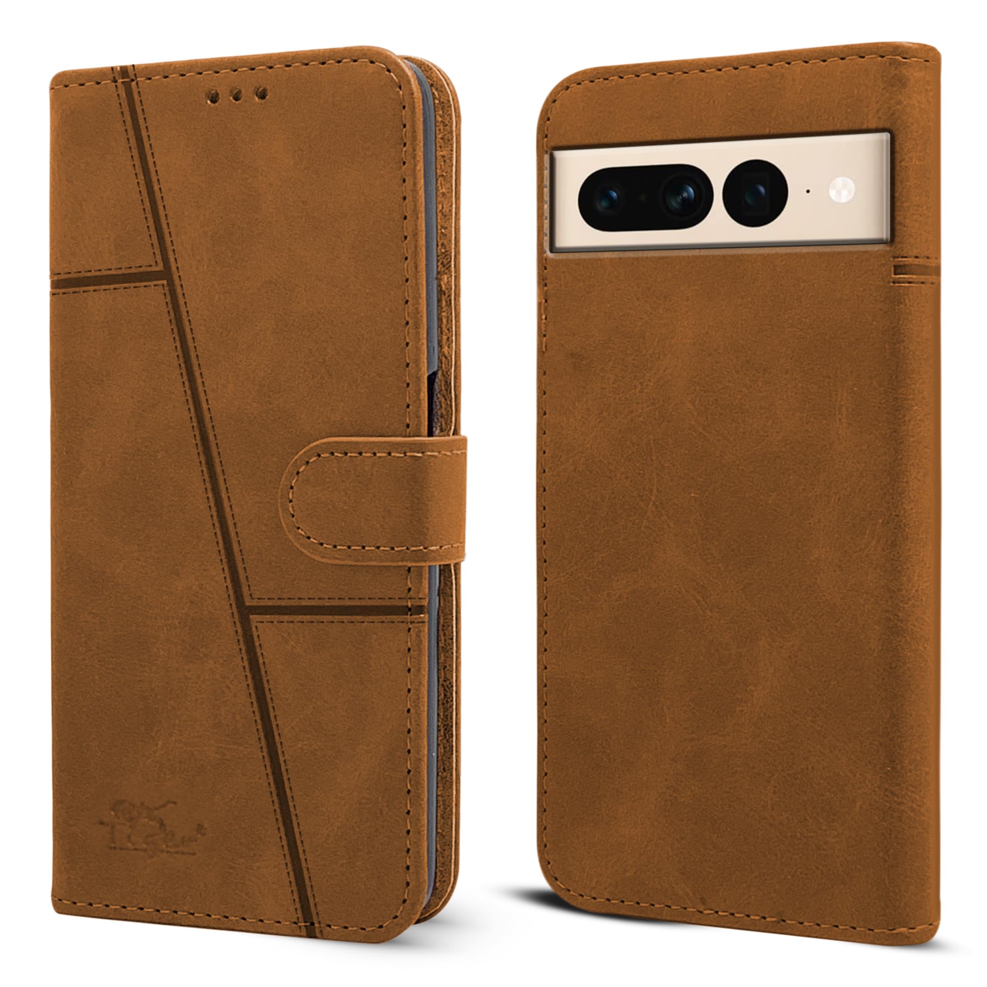 For Google Pixel 7 Pro Flip Cover Case (Stitched Leather Magnetic Closure)