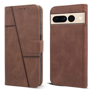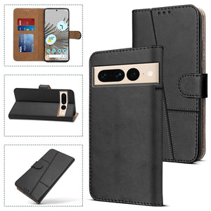 For Google Pixel 7 Pro Flip Cover Case (Stitched Leather Magnetic Closure)