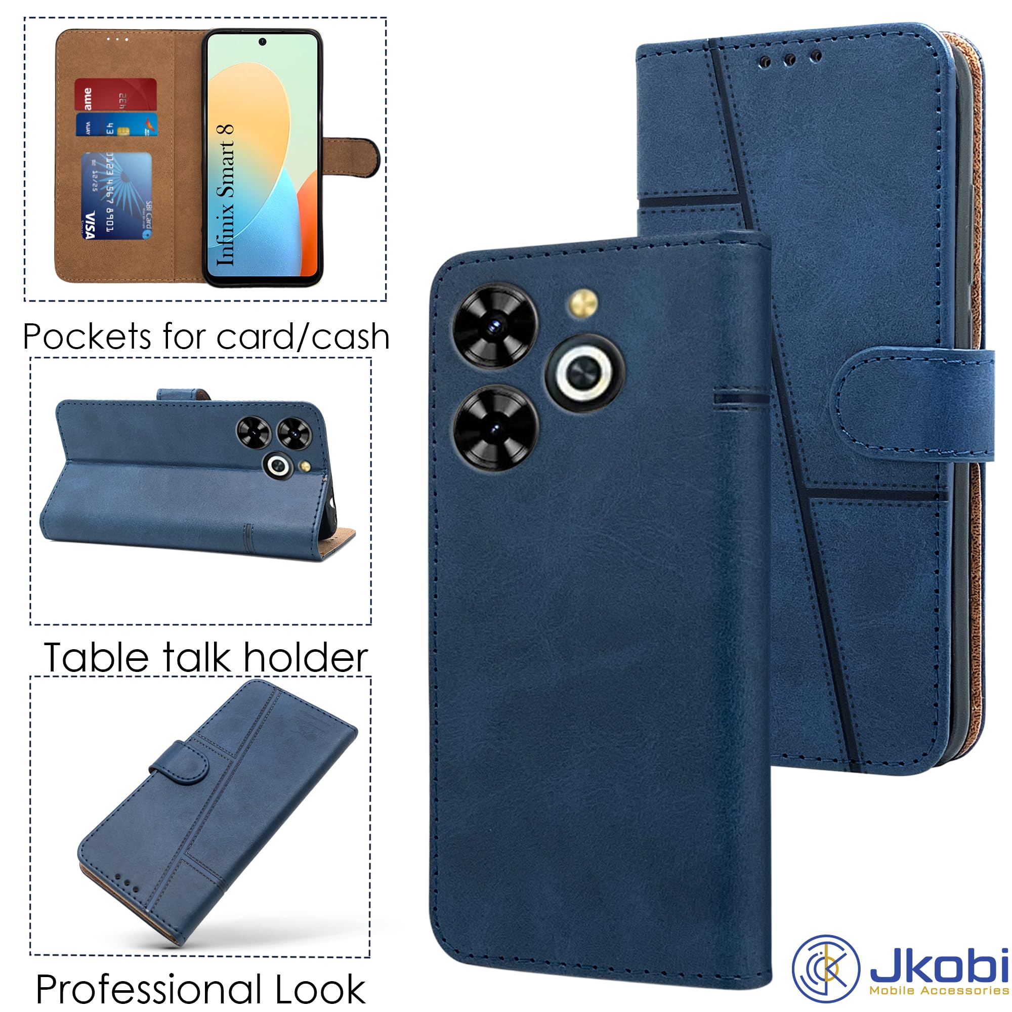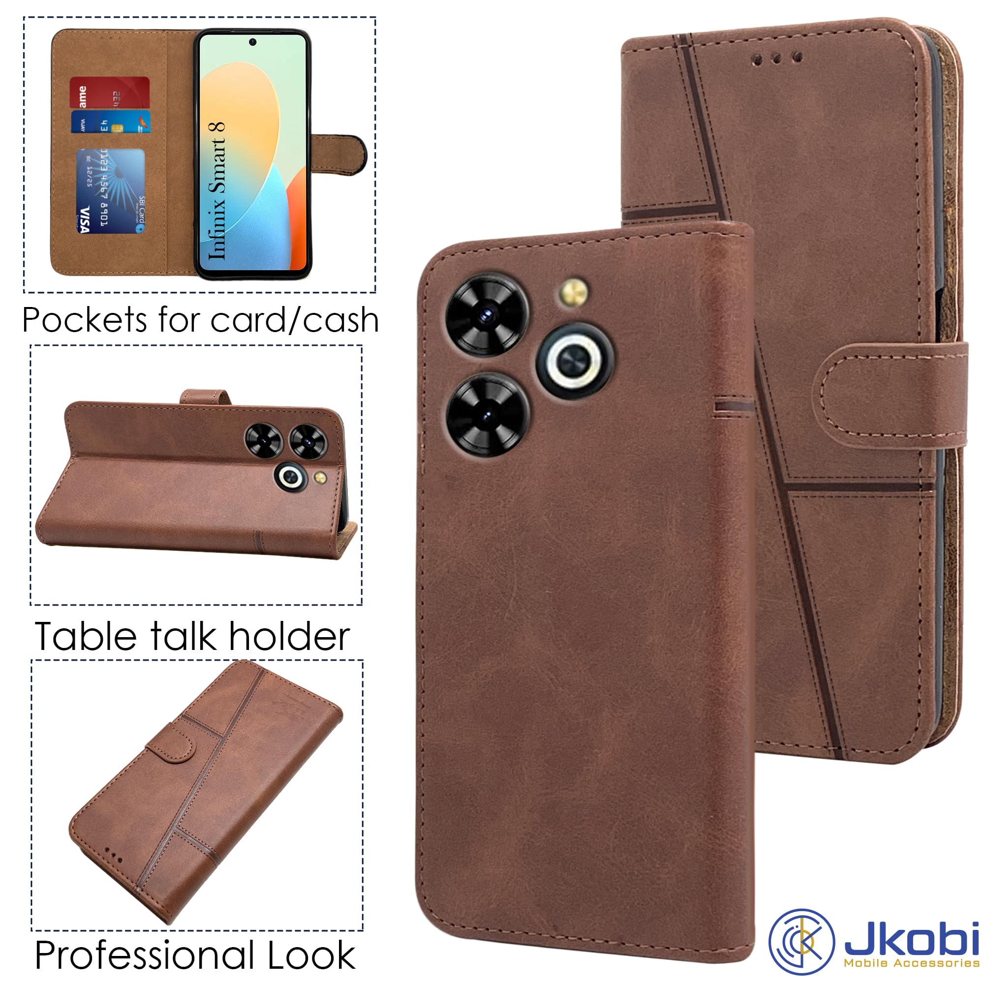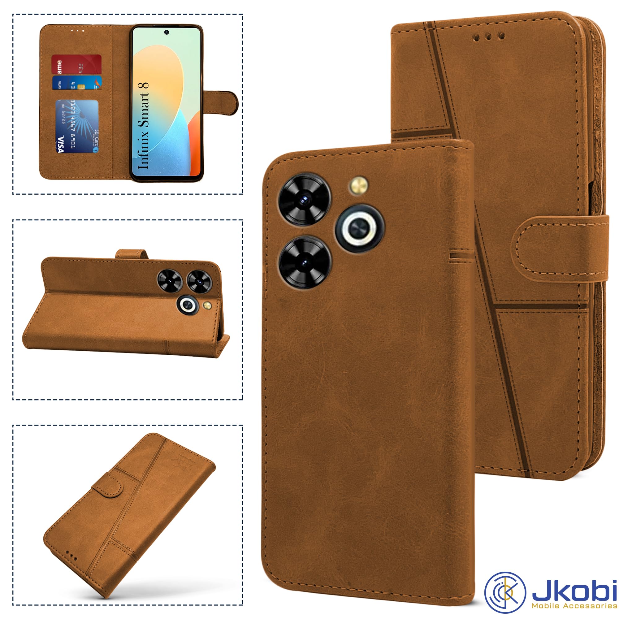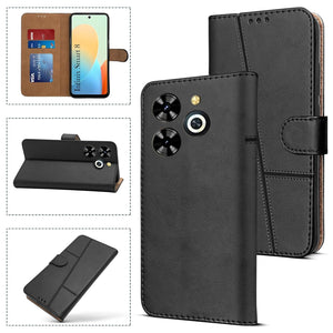 For Infinix Smart 8 HD Flip Cover Case (Stitched Leather with Magnetic Closure )