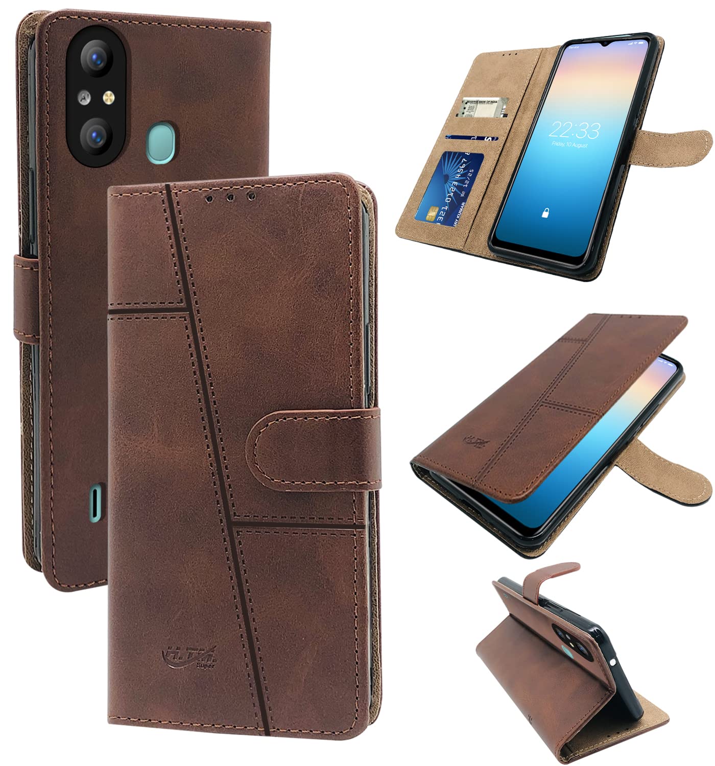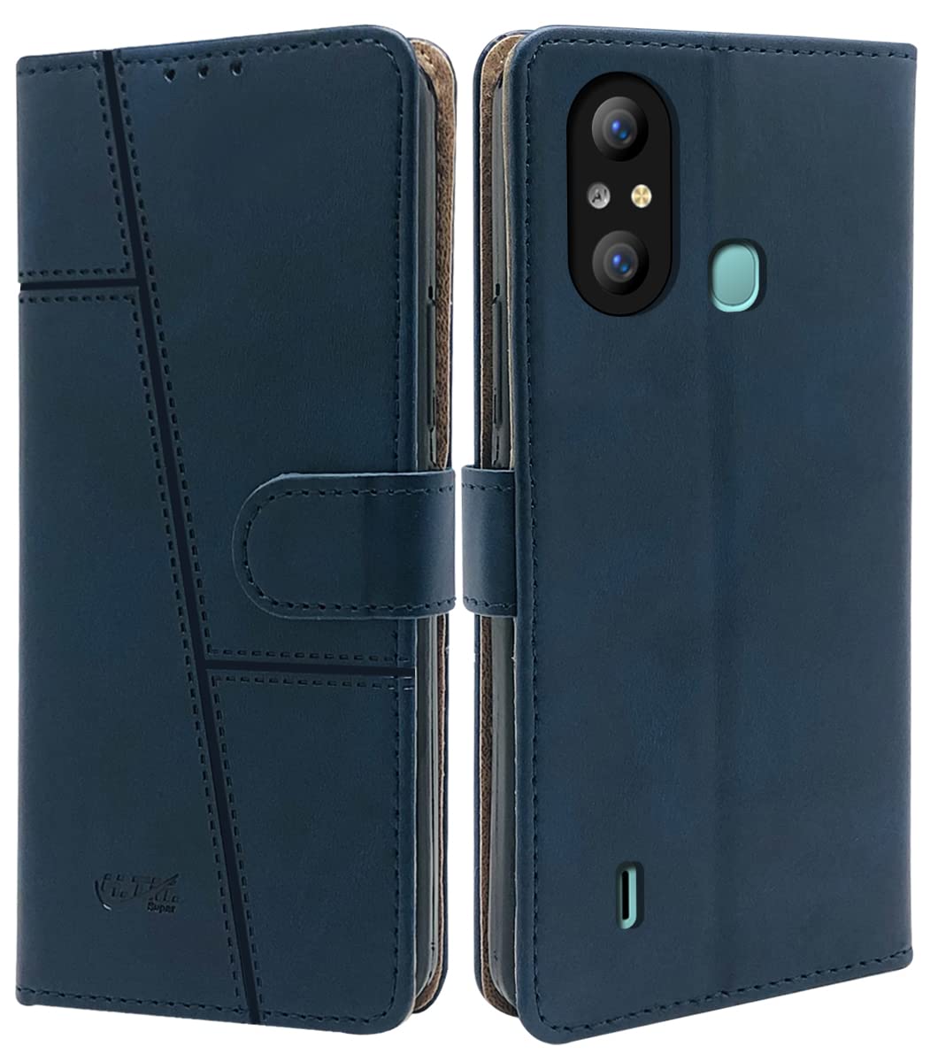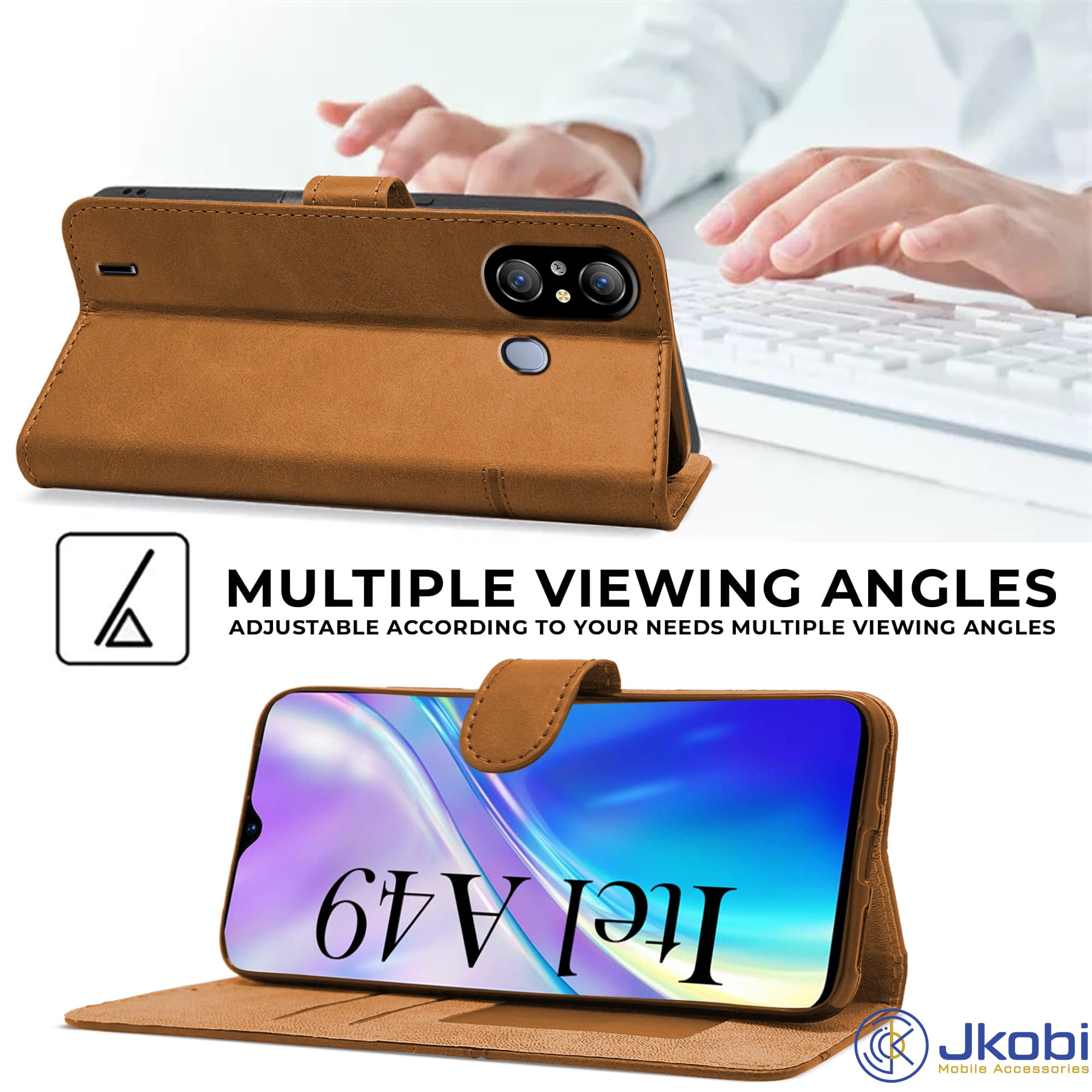 For Itel A49 Flip Cover Case (Stitched Leather Finish | Magnetic Closure | Inner TPU | Foldable Stand | Wallet Card Slots)