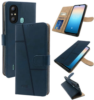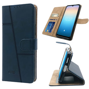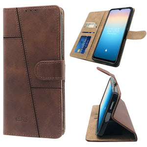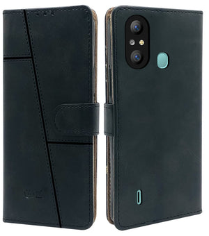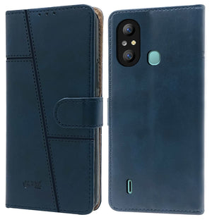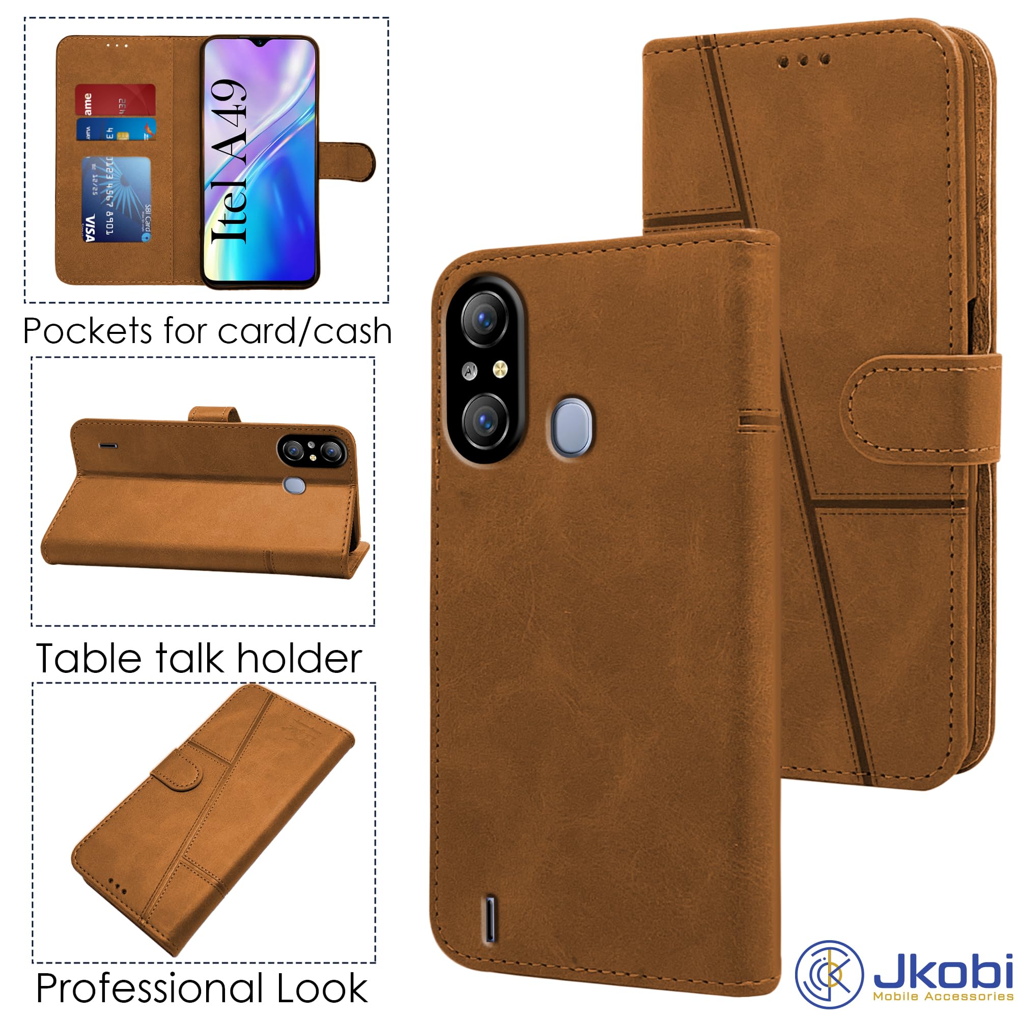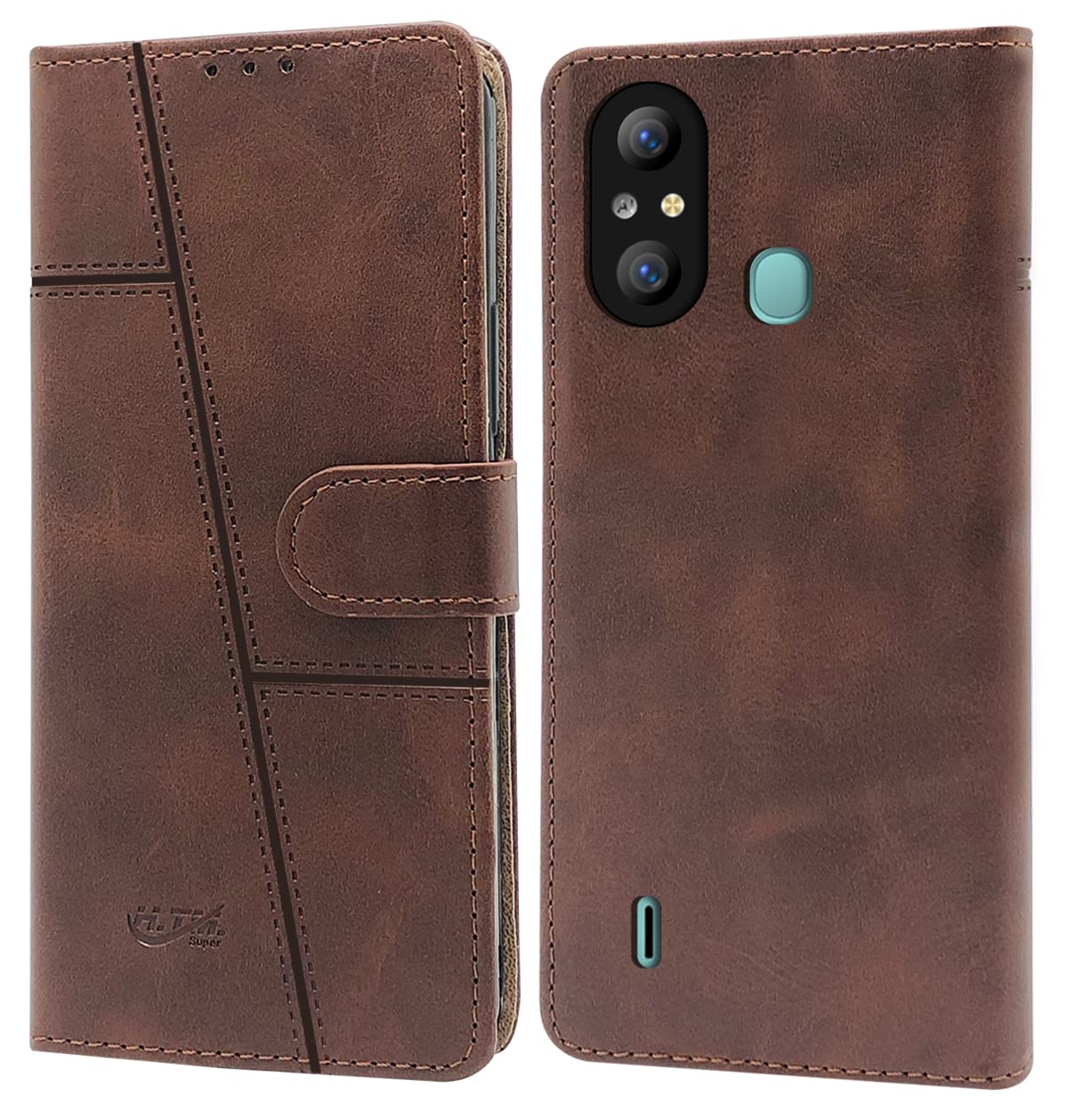 For Itel A49 Flip Cover Case (Stitched Leather Finish | Magnetic Closure | Inner TPU | Foldable Stand | Wallet Card Slots)