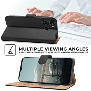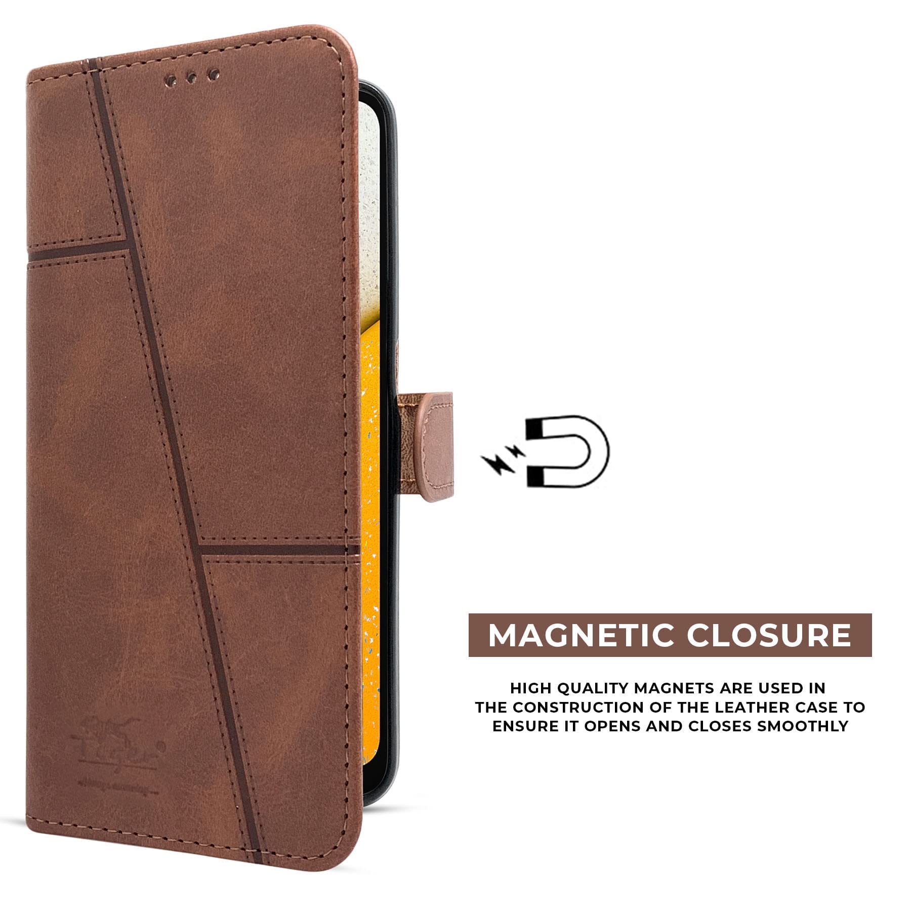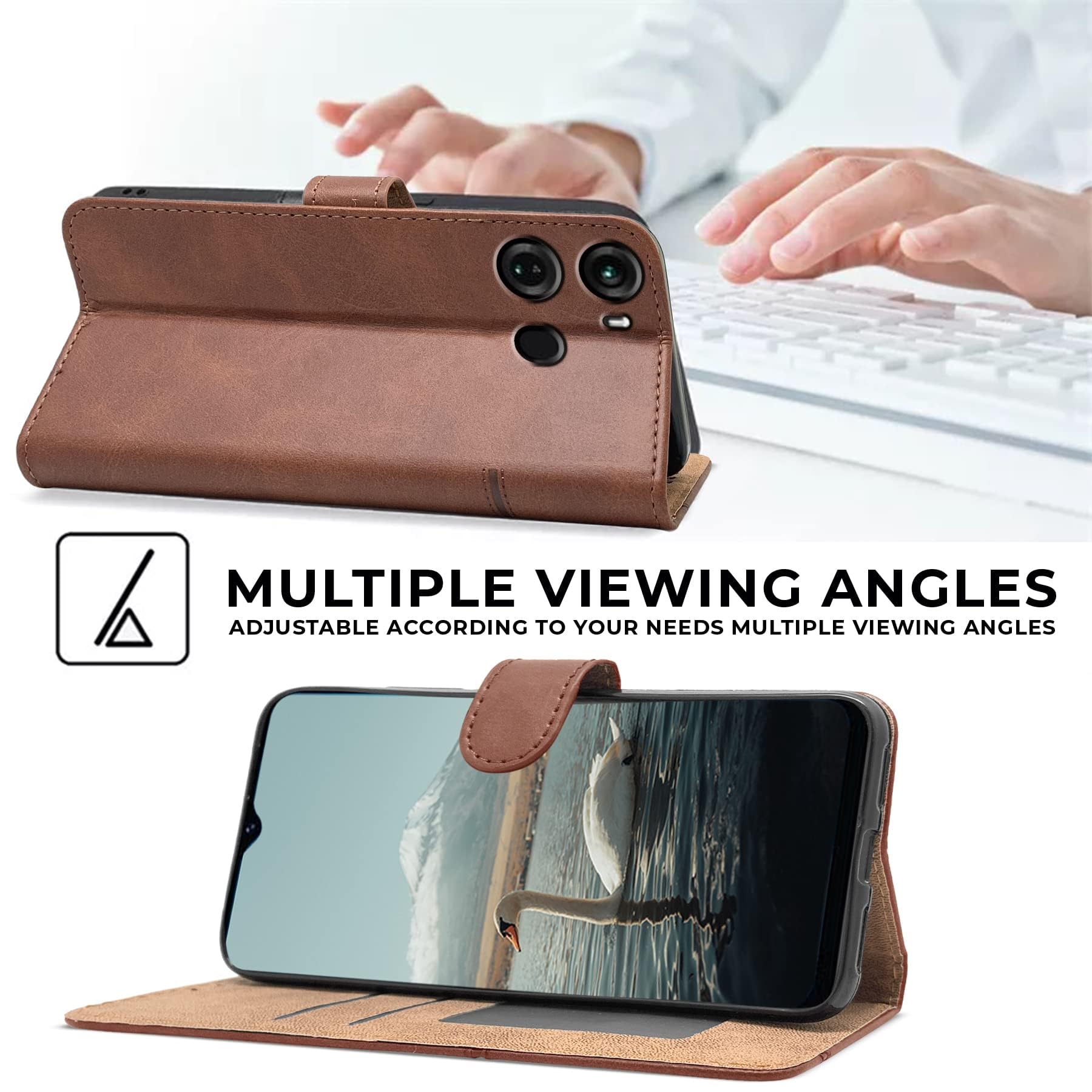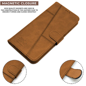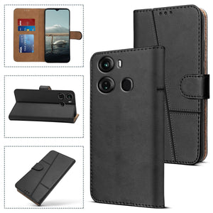 For Itel P40 Flip Cover Case (Stitched Leather with Magnetic Closure)