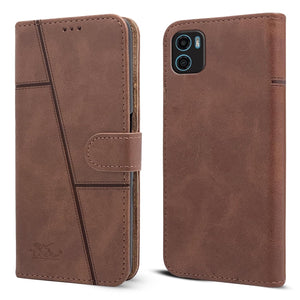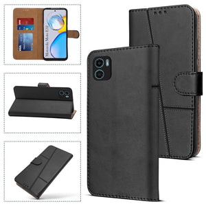 For Motorola Moto E32 Flip Cover Case (Stitched Leather with Magnetic Closure)