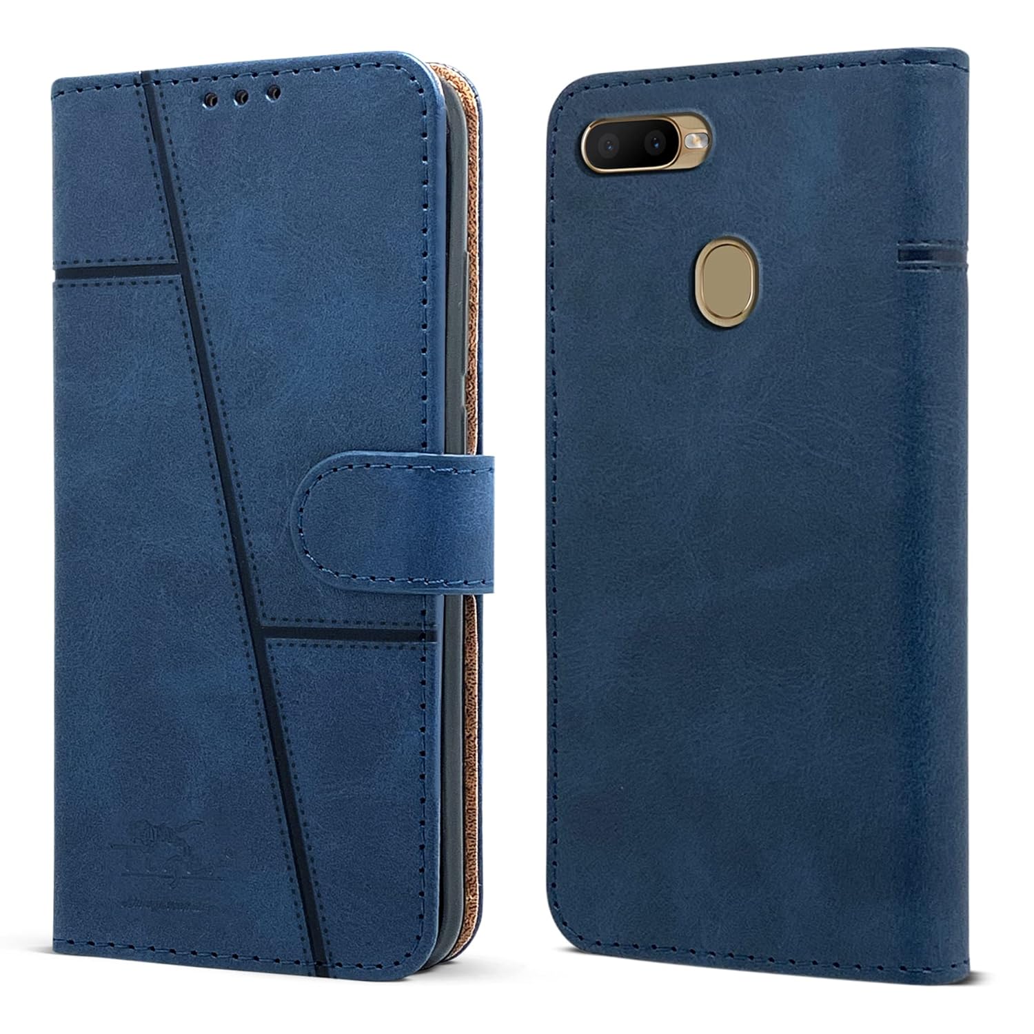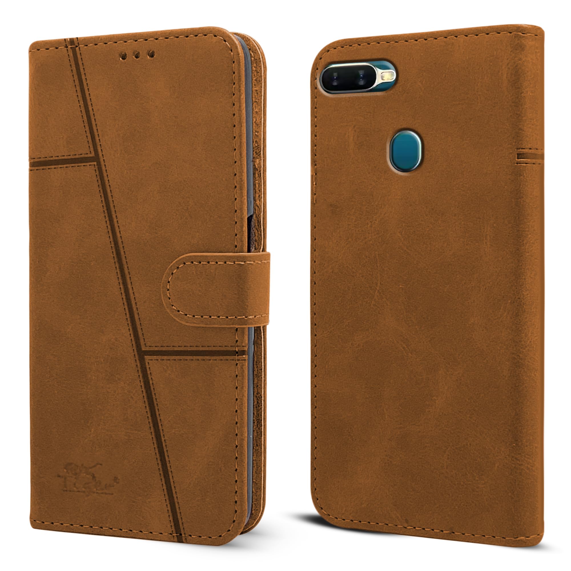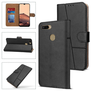 For Oppo A5 / Oppo A5s Flip Cover Case (Stitched Leather Finish | Magnetic Closure | Inner TPU | Foldable Stand | Wallet Card Slots)