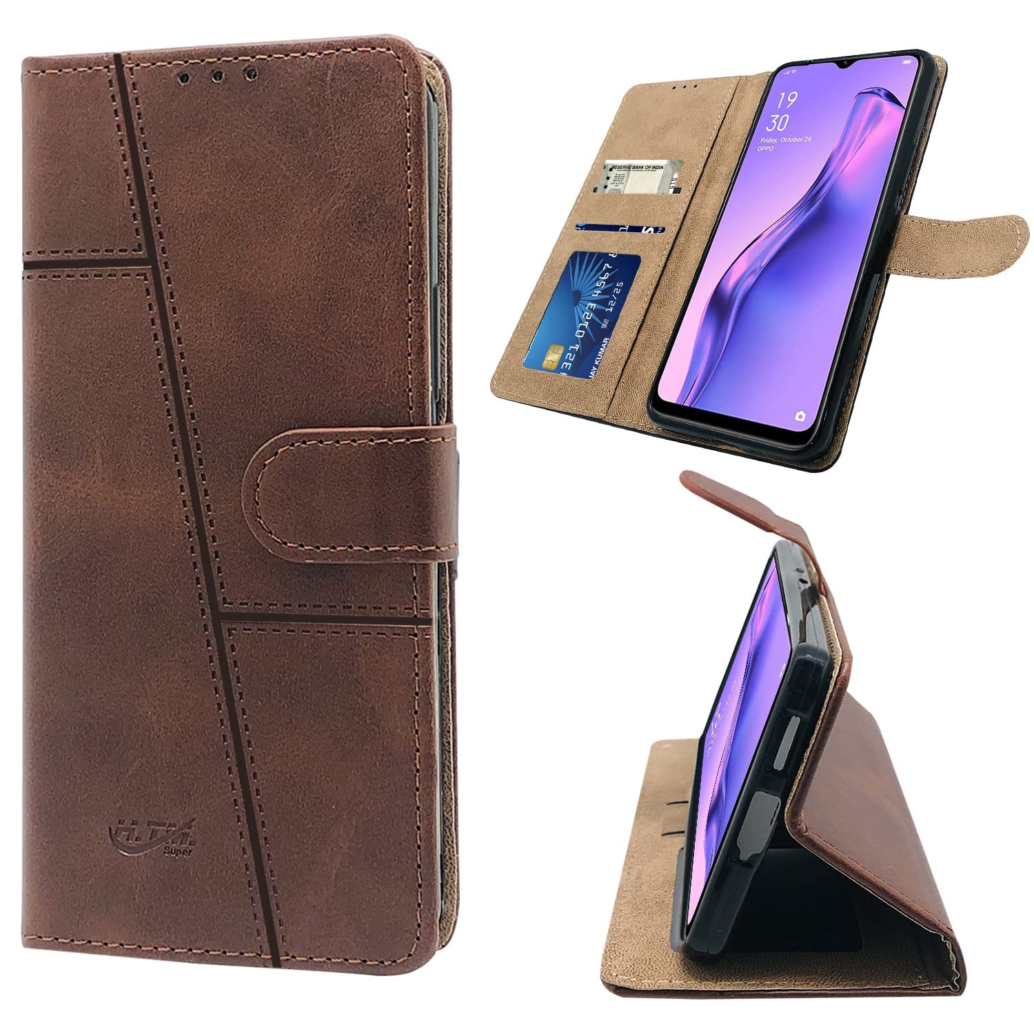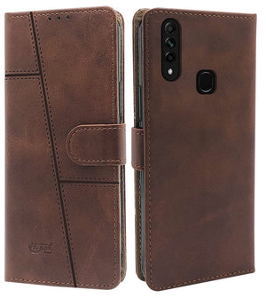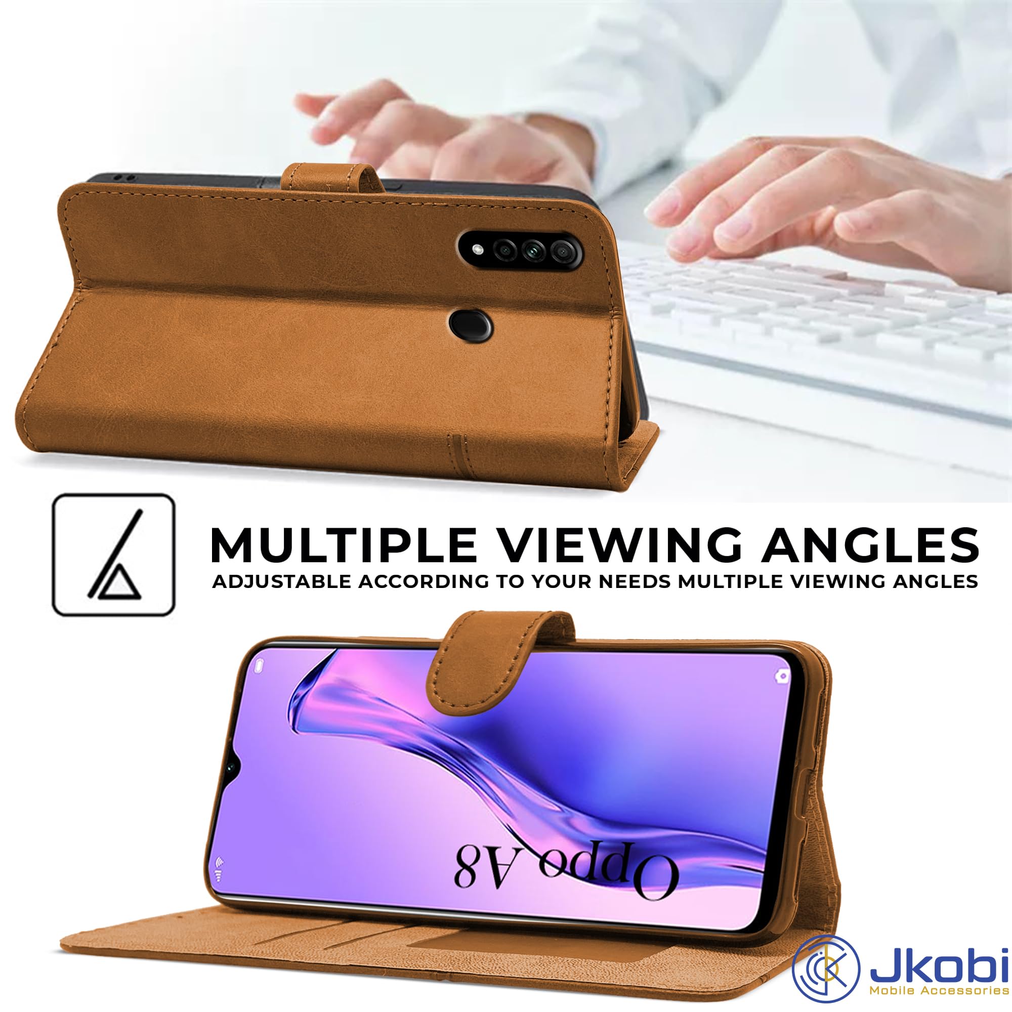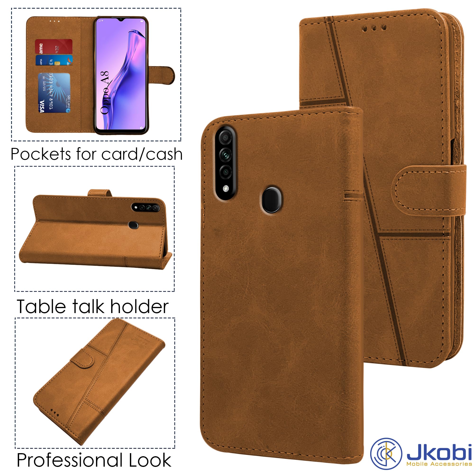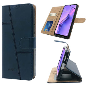 For Oppo A8 Flip Cover Case (Stitched Leather with Magnetic Closure)