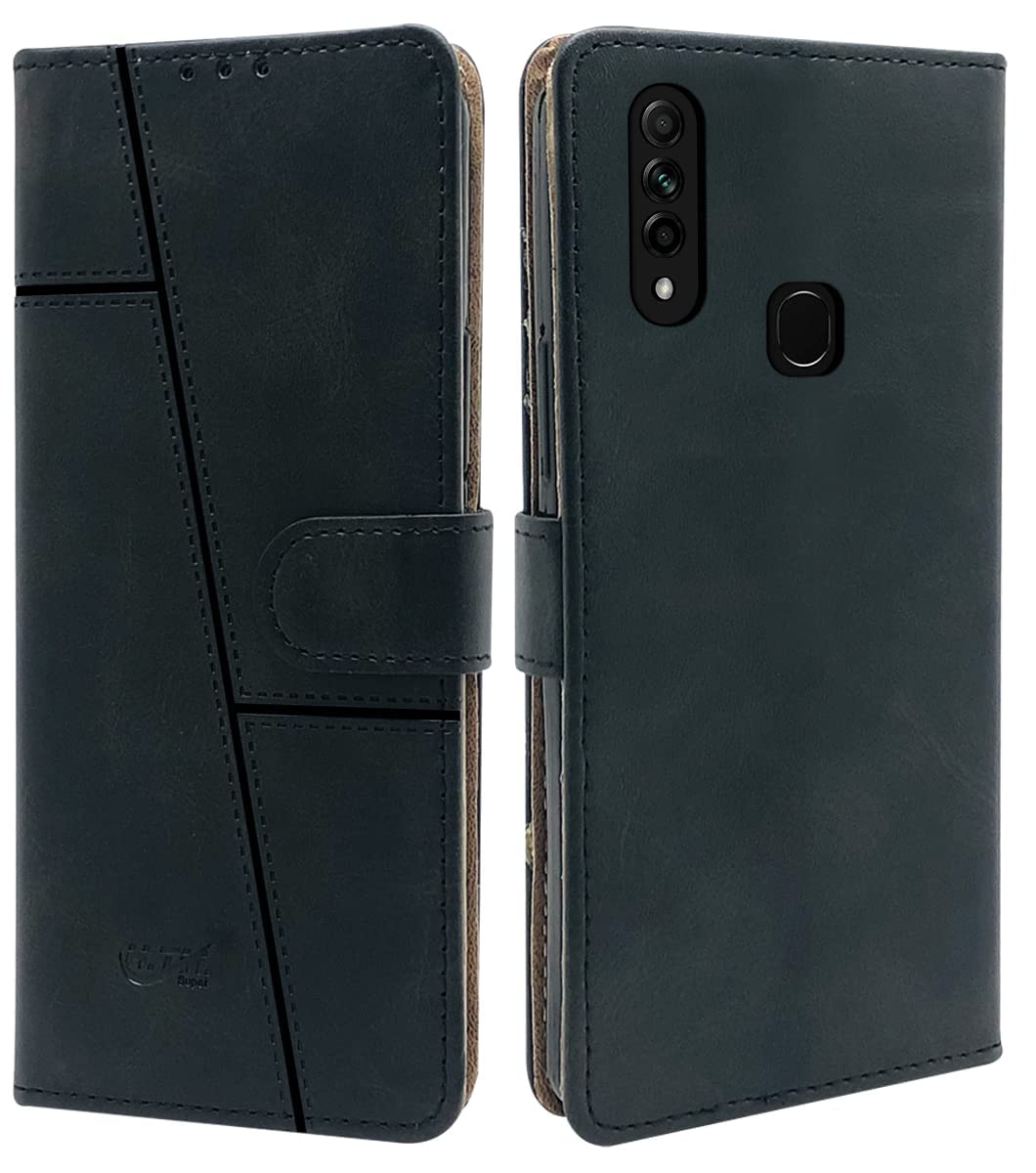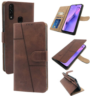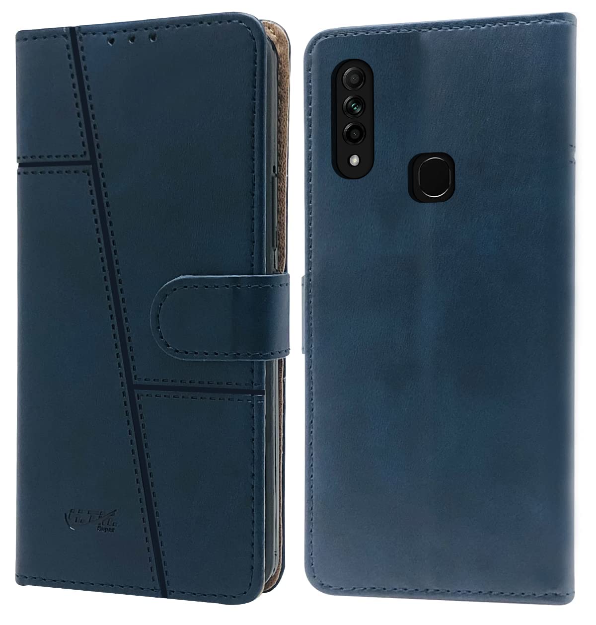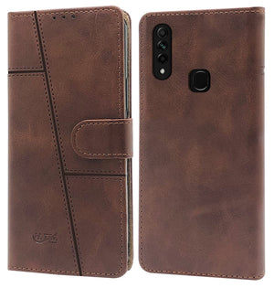 For Oppo A8 Flip Cover Case (Stitched Leather with Magnetic Closure)