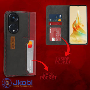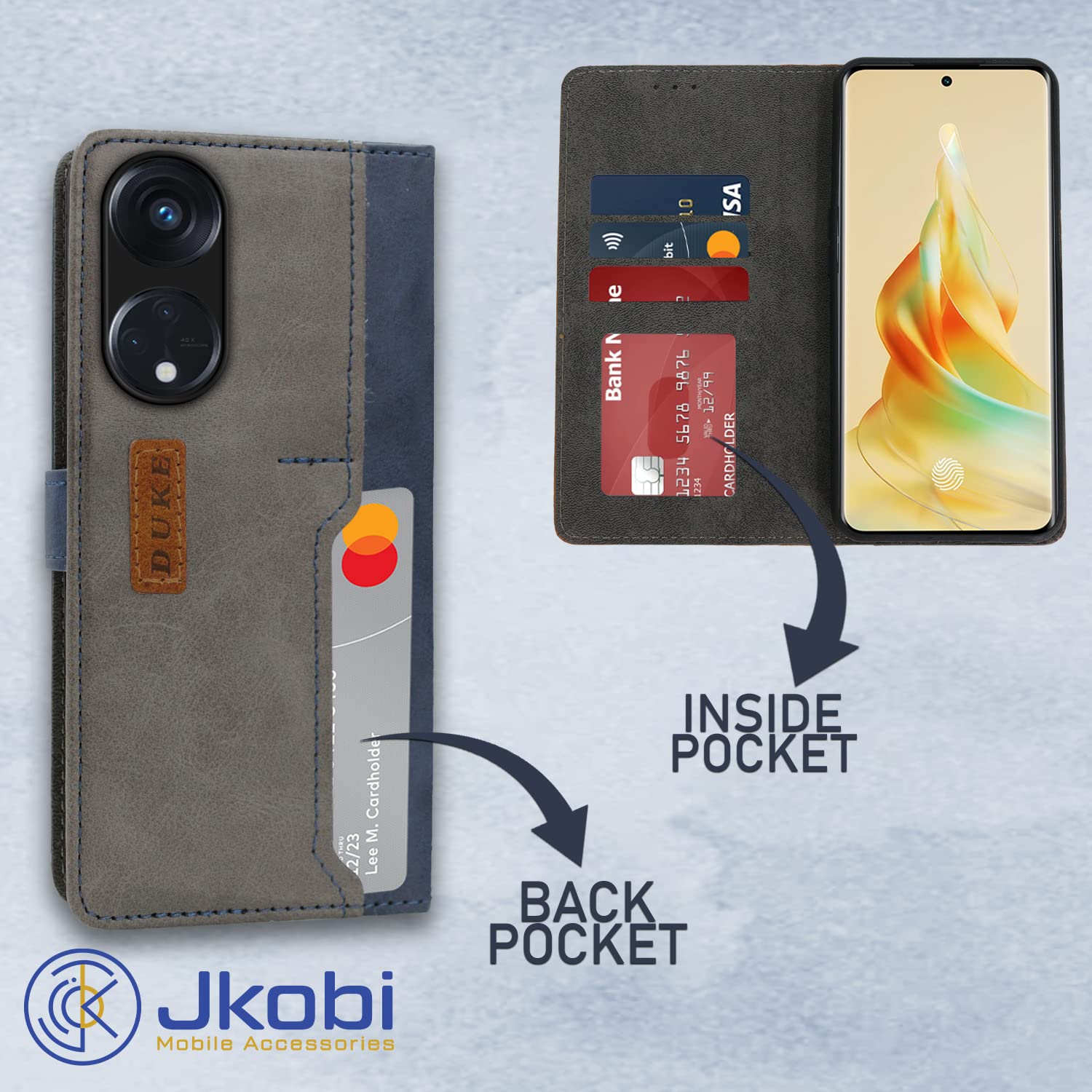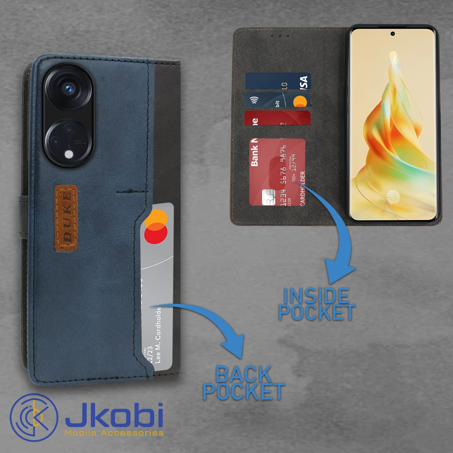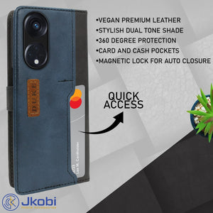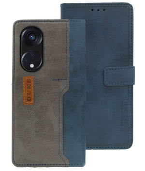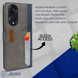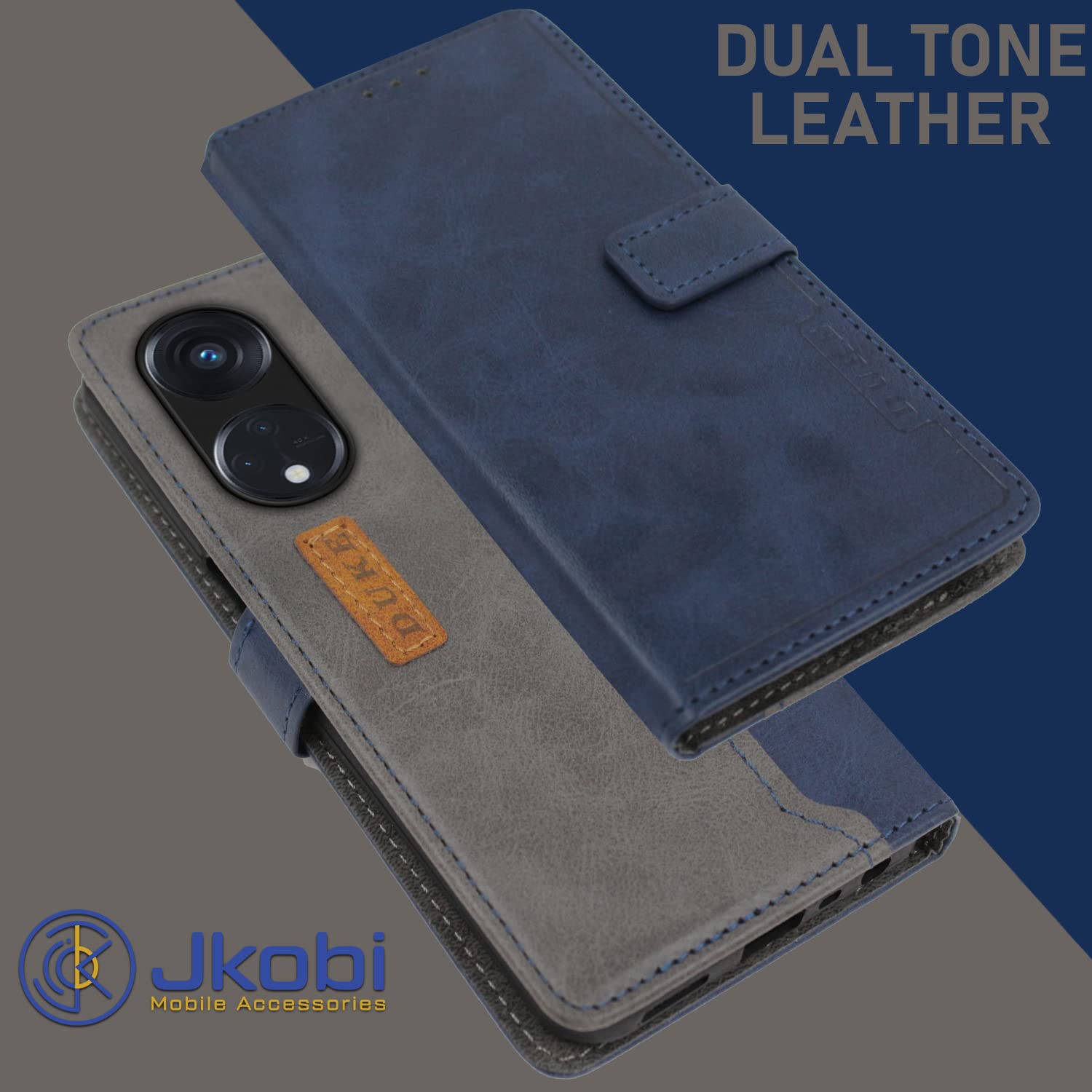 For Oppo Reno 8T 5G Flip Cover Case (Professional Dual Leather Finish | Blue with Grey)