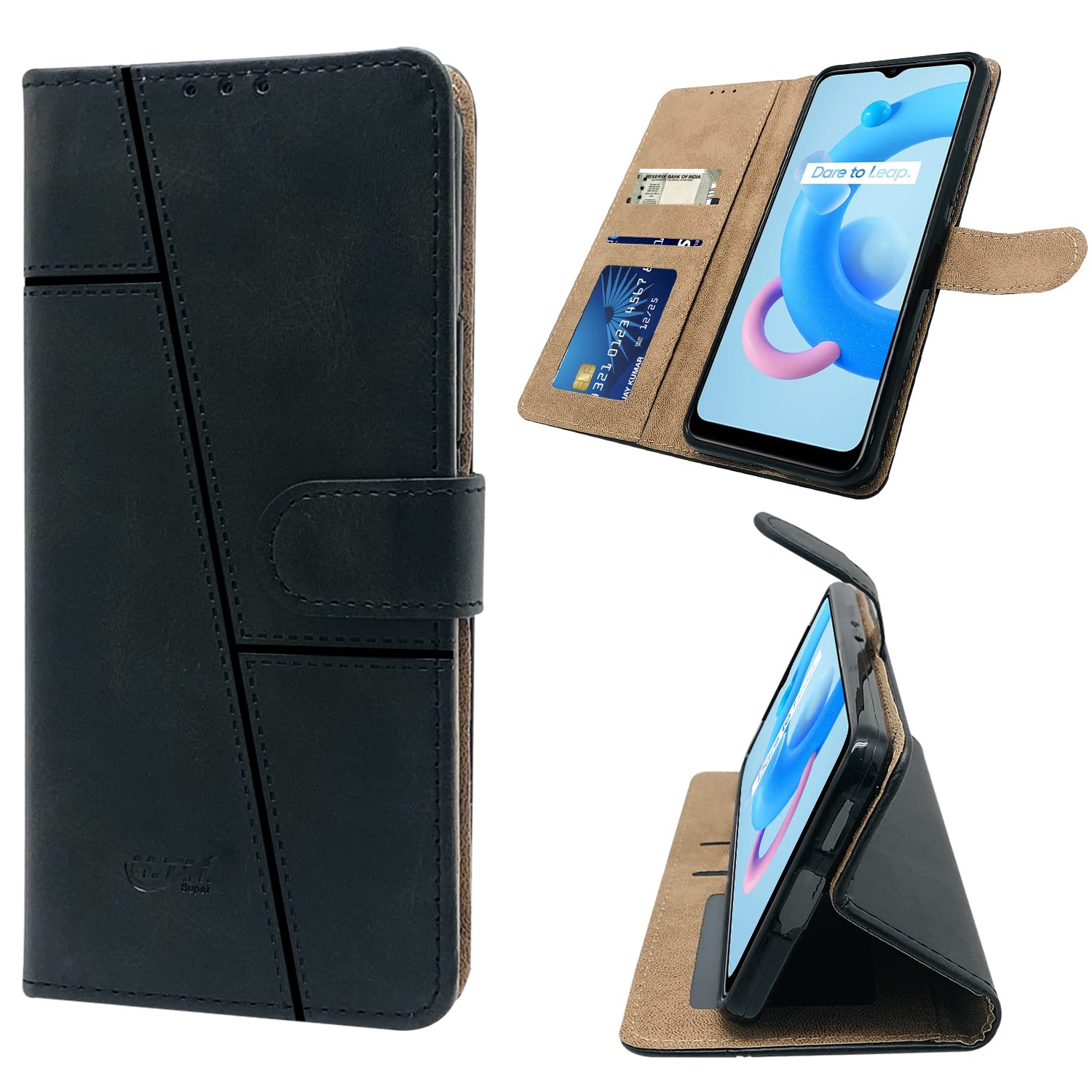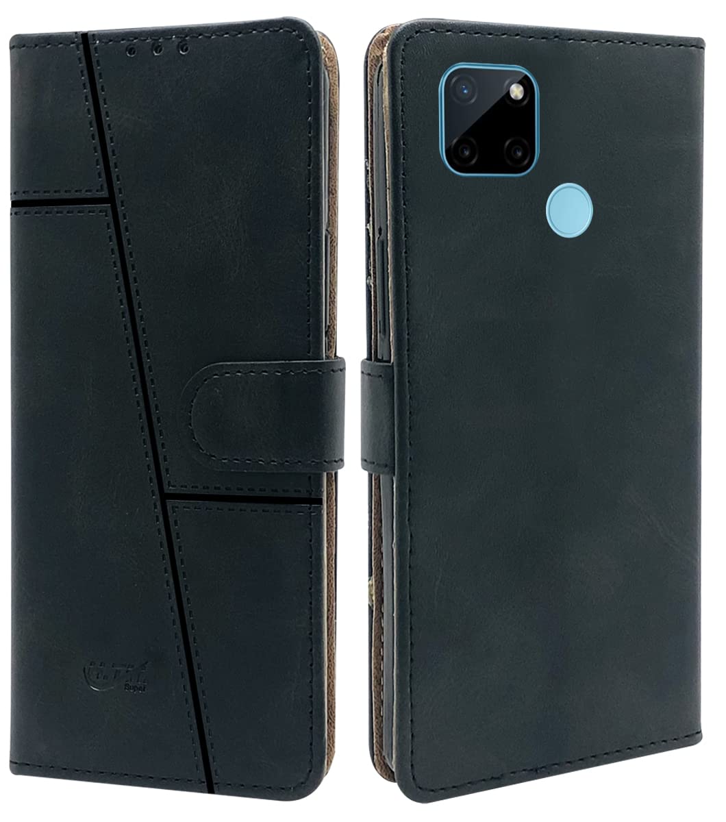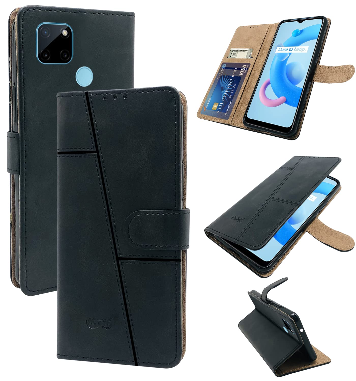 For Realme C25Y | C21Y Flip Cover Case (Stitched Leather Finish | Magnetic Closure | Inner TPU | Foldable Stand | Wallet Card Slots)