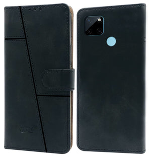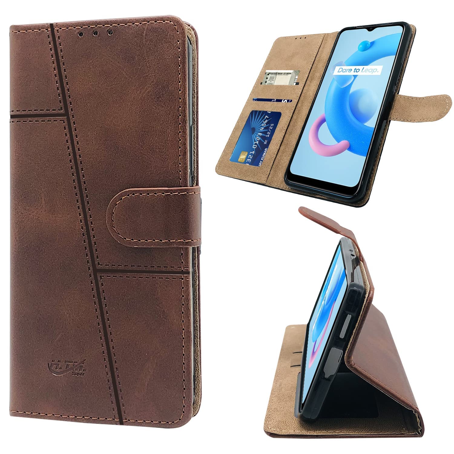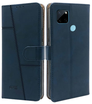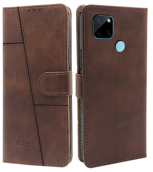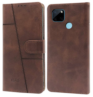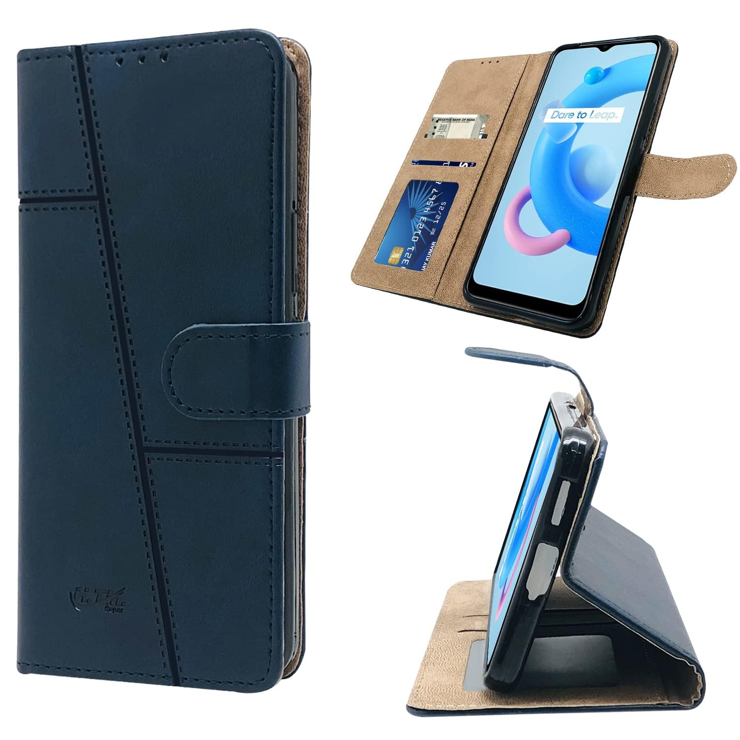 For Realme C25Y | C21Y Flip Cover Case (Stitched Leather Finish | Magnetic Closure | Inner TPU | Foldable Stand | Wallet Card Slots)