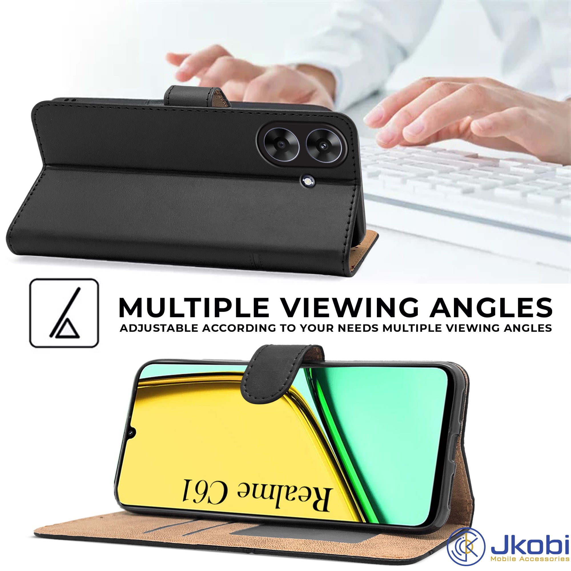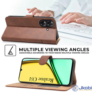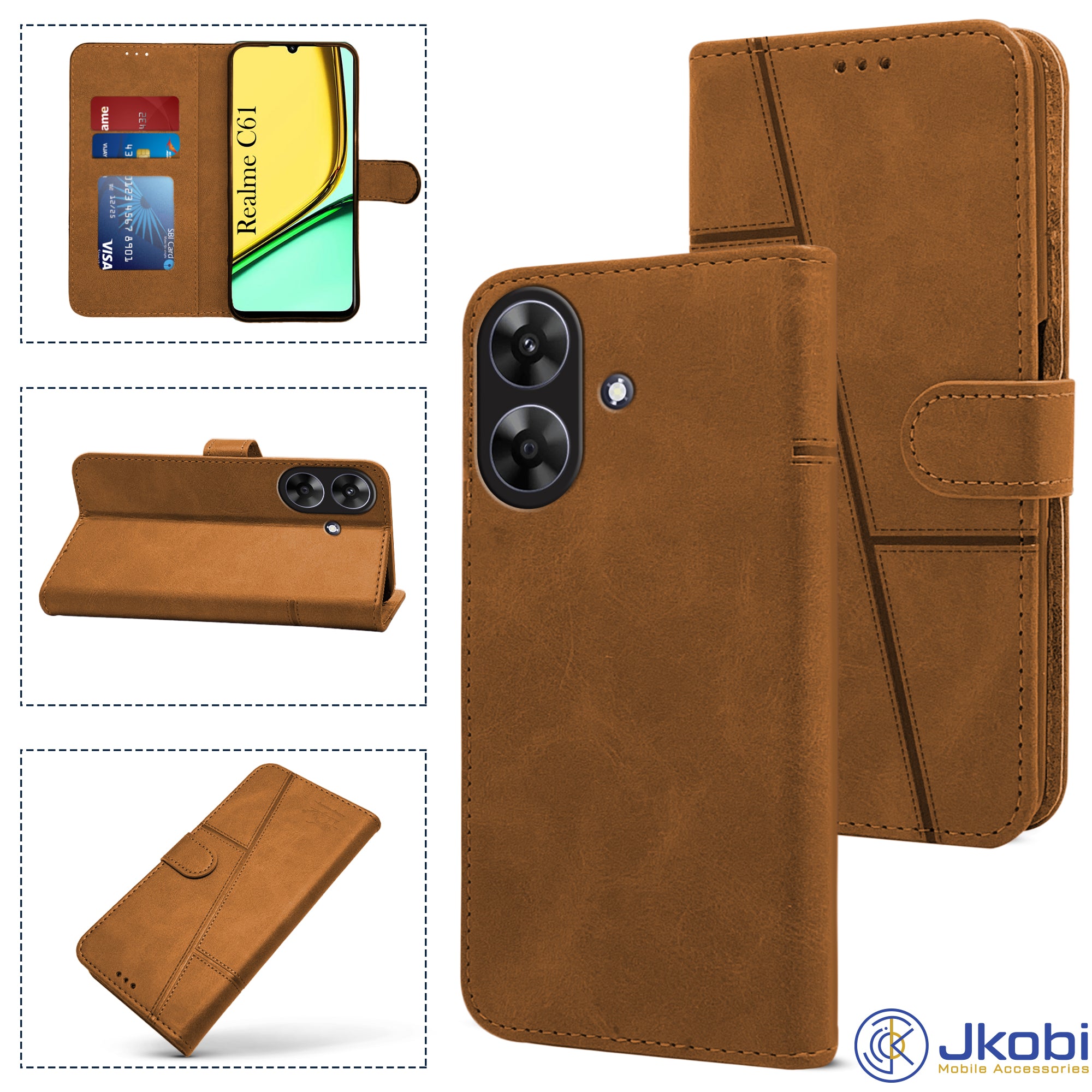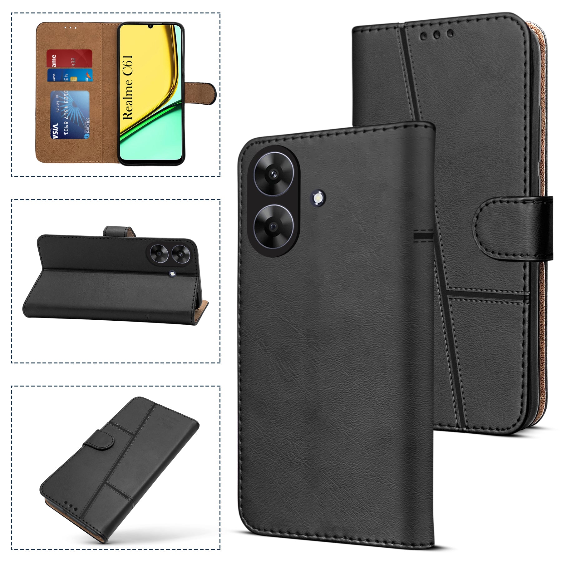 For Realme C61 | Realme Narzo N61 Flip Cover Case (Stitched Leather with Magnetic Closure)