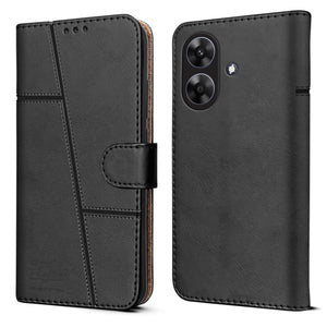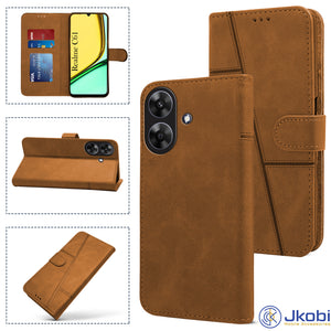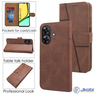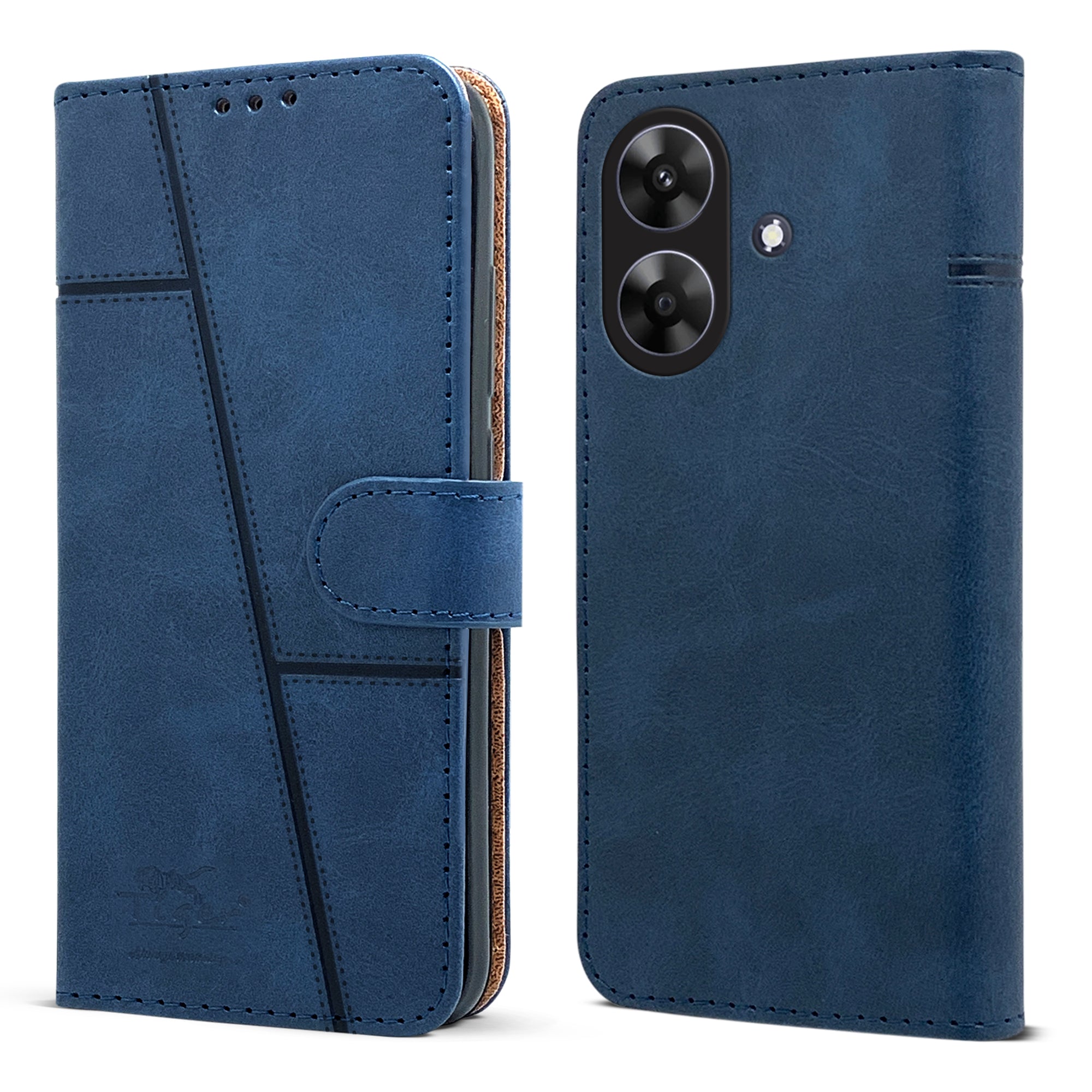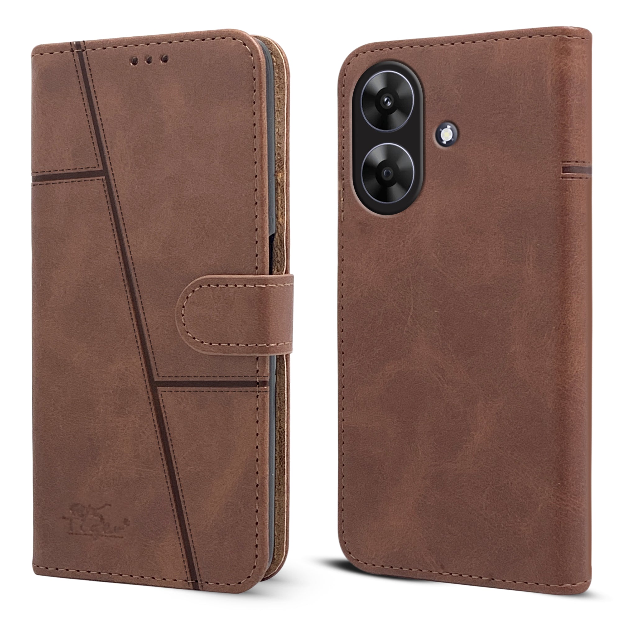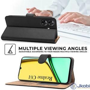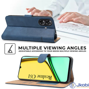 For Realme C61 | Realme Narzo N61 Flip Cover Case (Stitched Leather with Magnetic Closure)