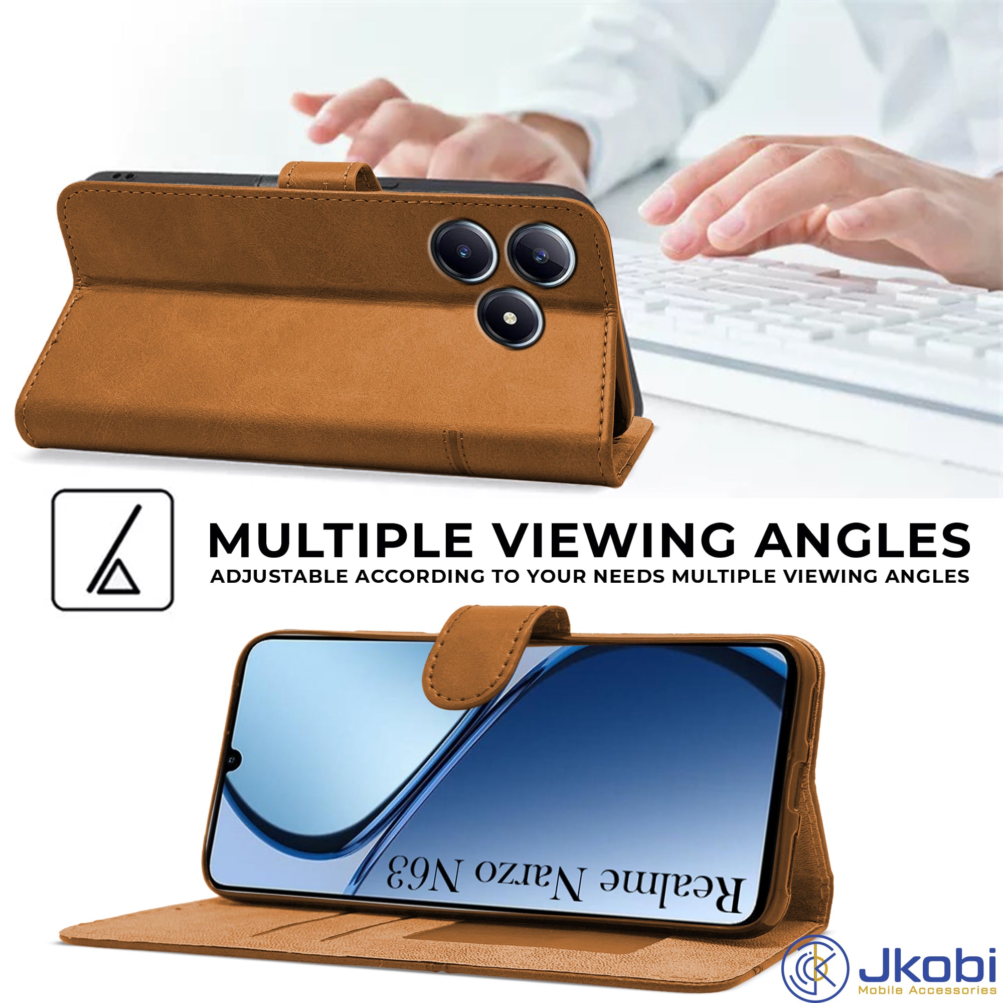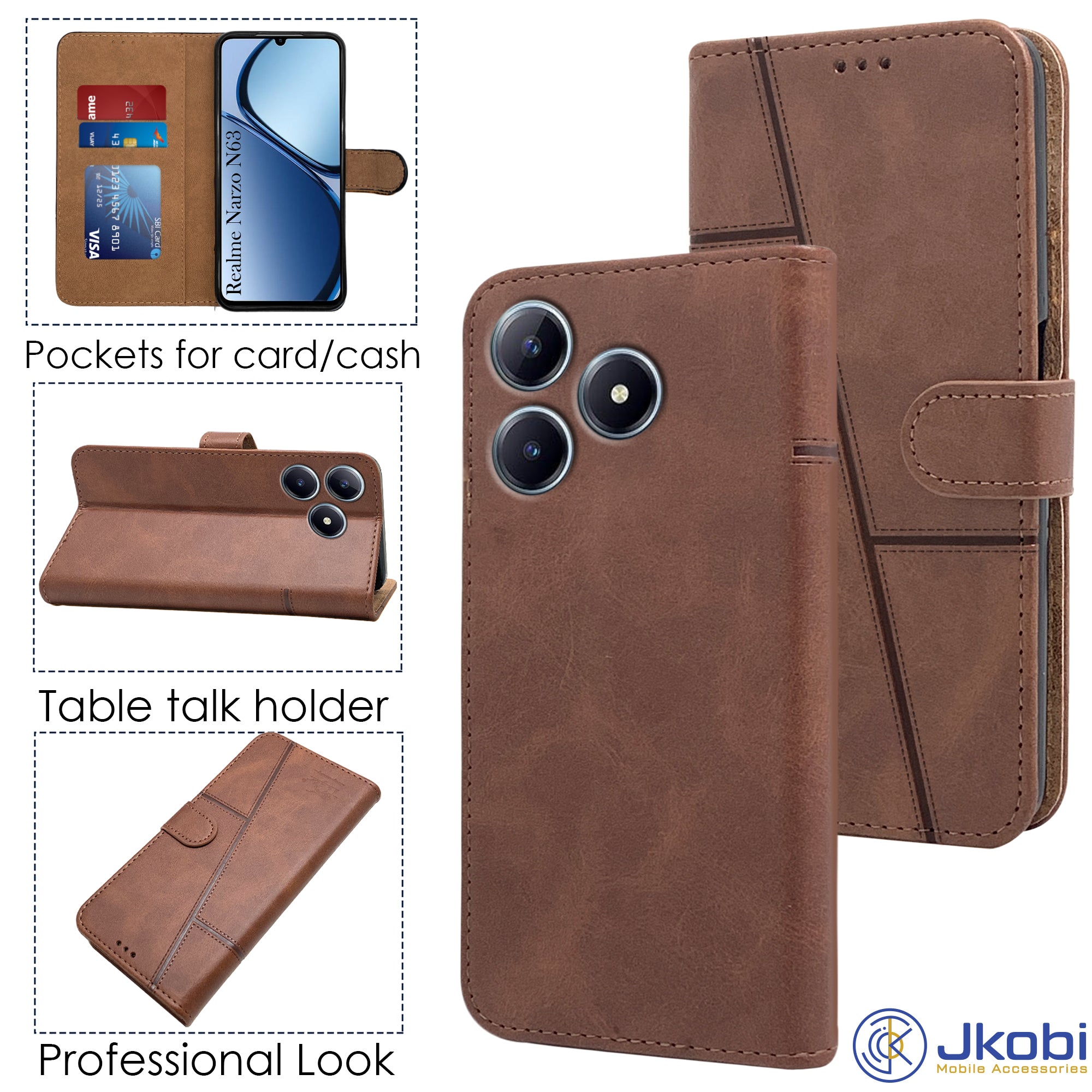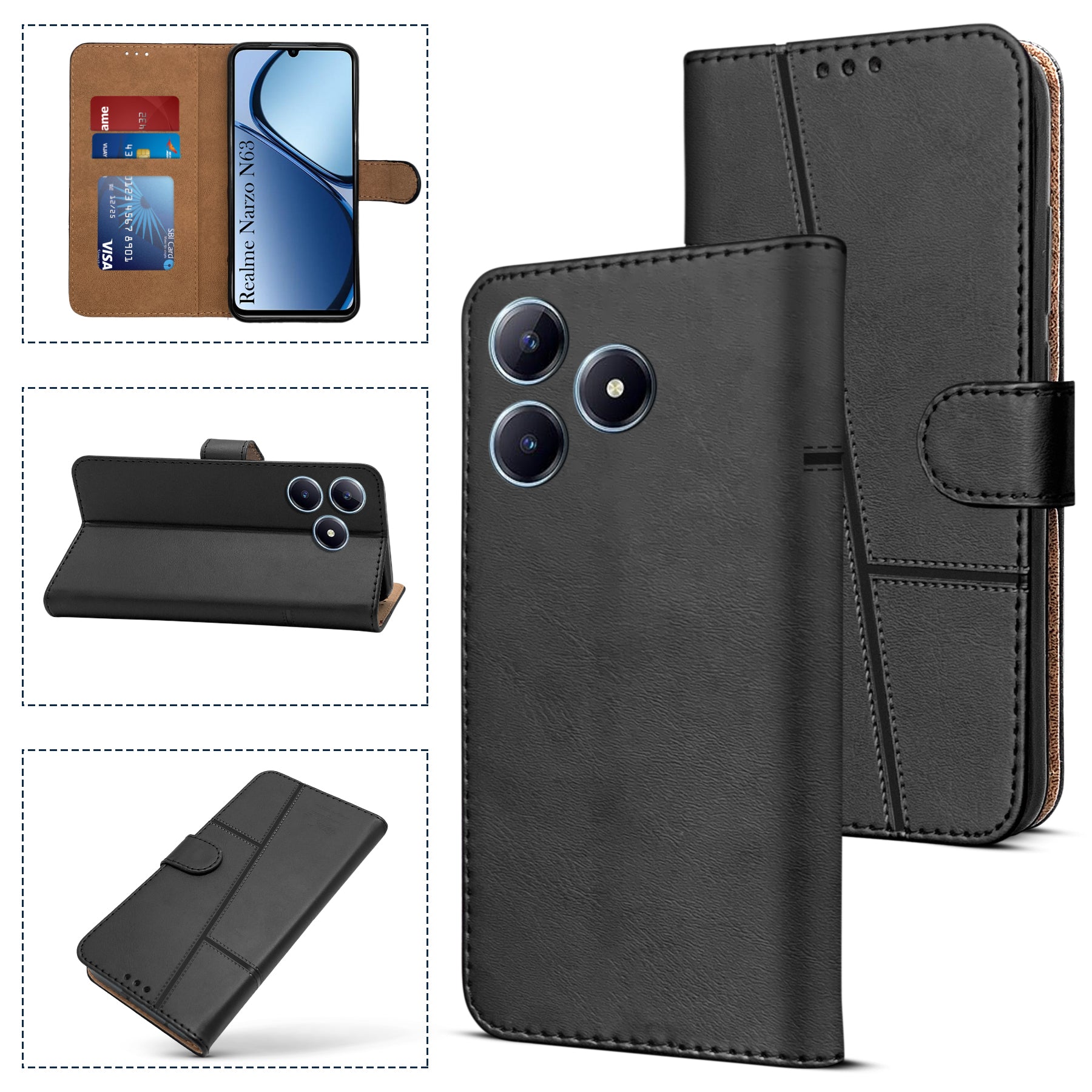 For Realme Narzo N63 Flip Cover Case (Stitched Leather with Magnetic Closure)