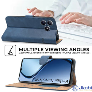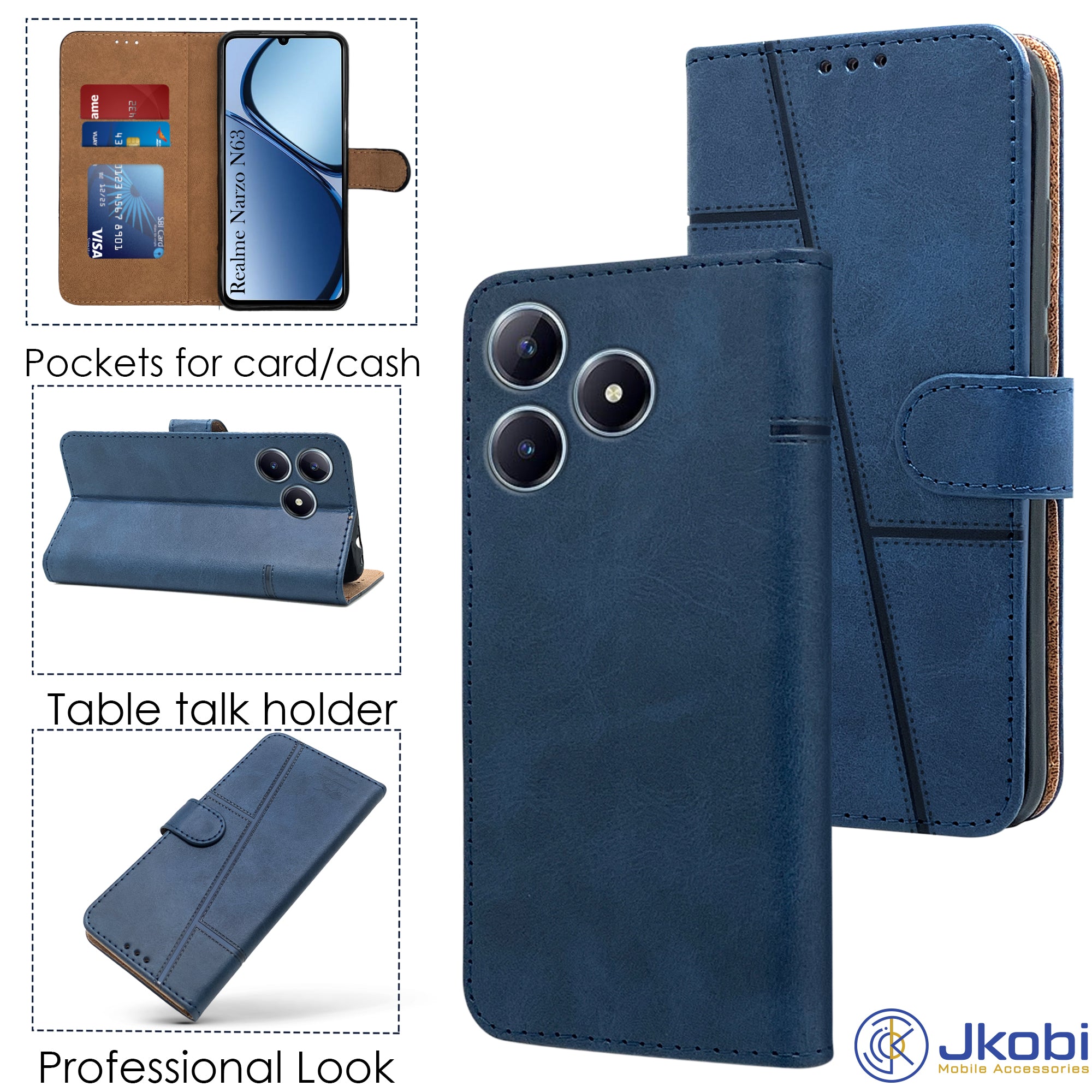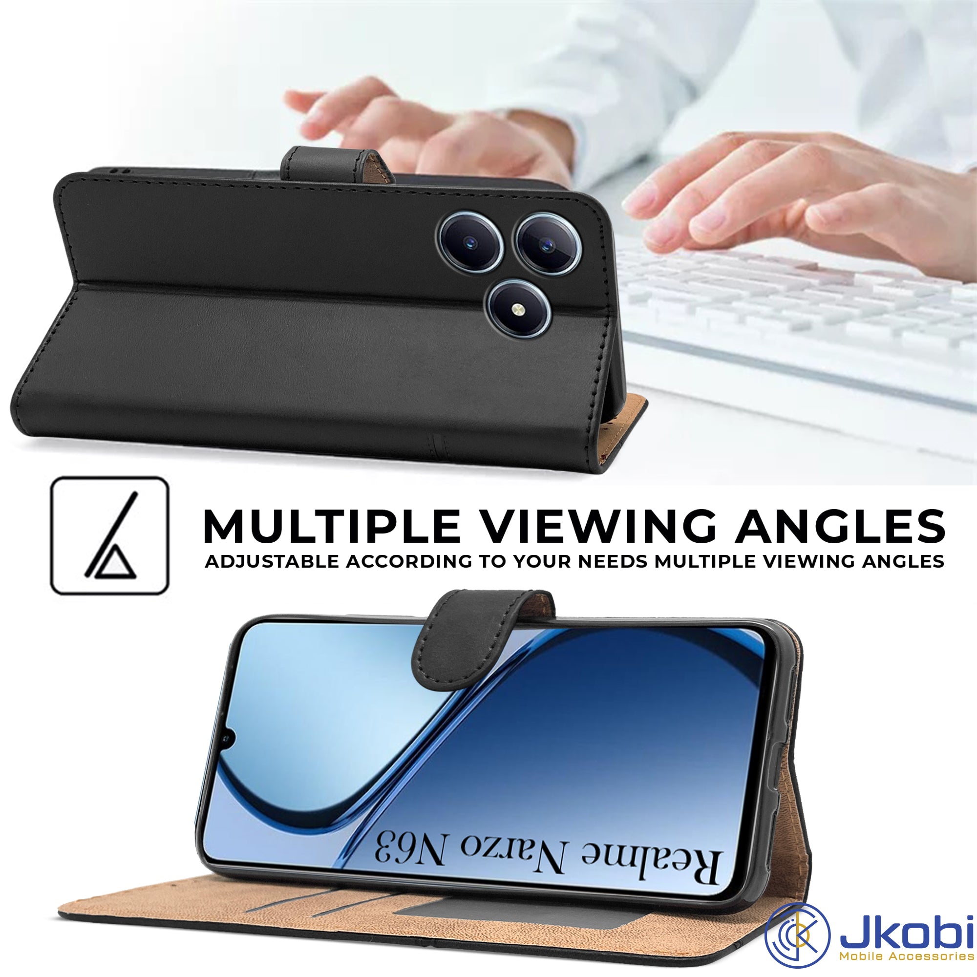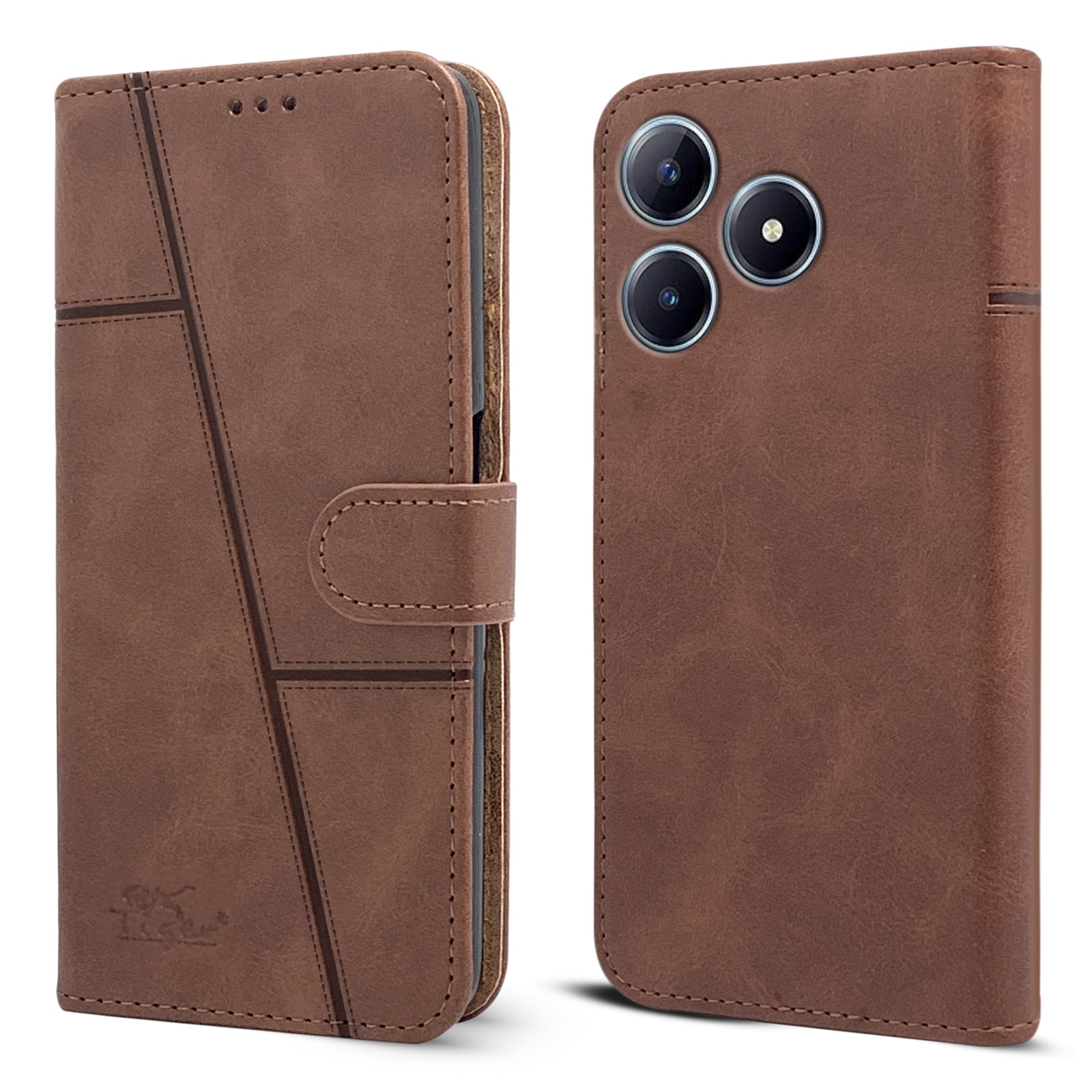 For Realme Narzo N63 Flip Cover Case (Stitched Leather with Magnetic Closure)