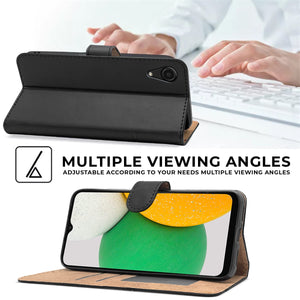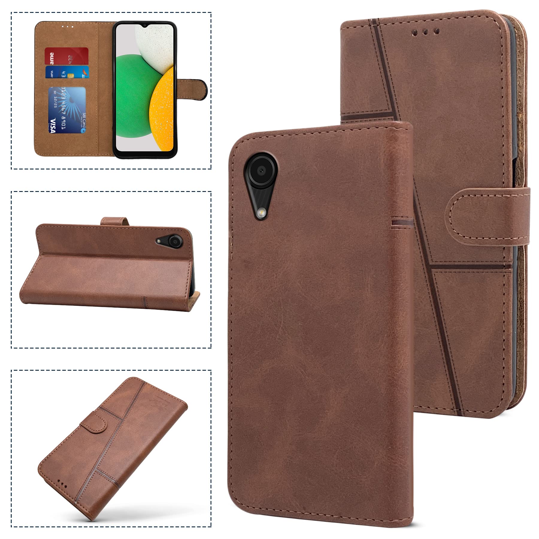 For Samsung Galaxy A03 Core Flip Cover Case (Stitched Leather Finish | Magnetic Closure | Inner TPU | Foldable Stand | Wallet Card Slots)