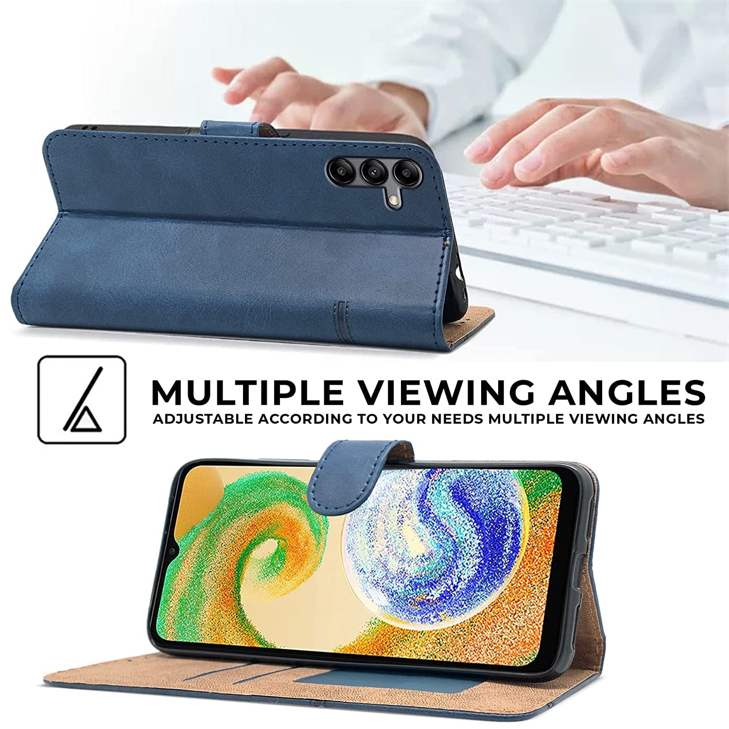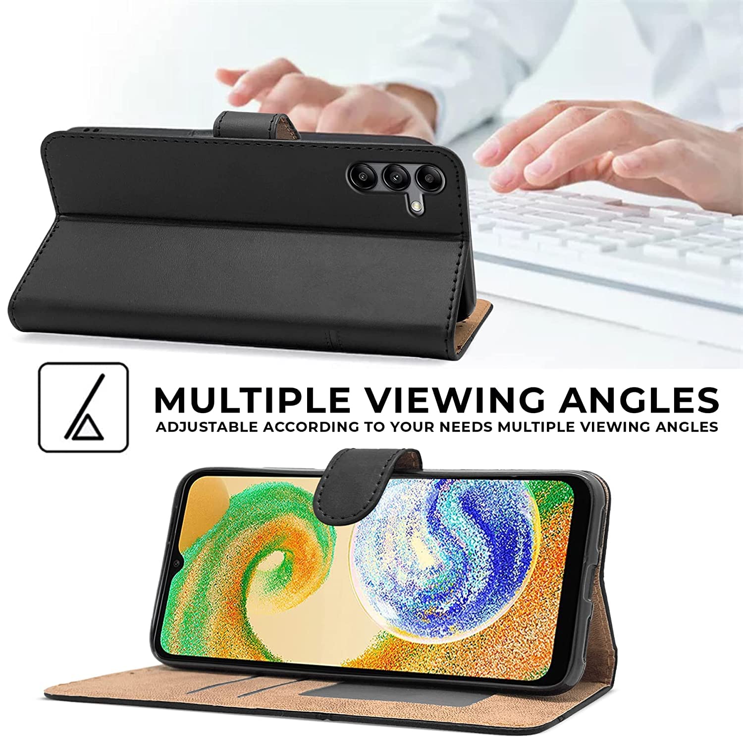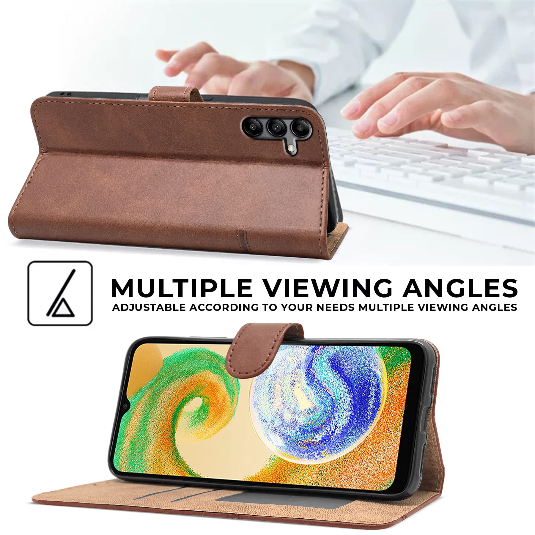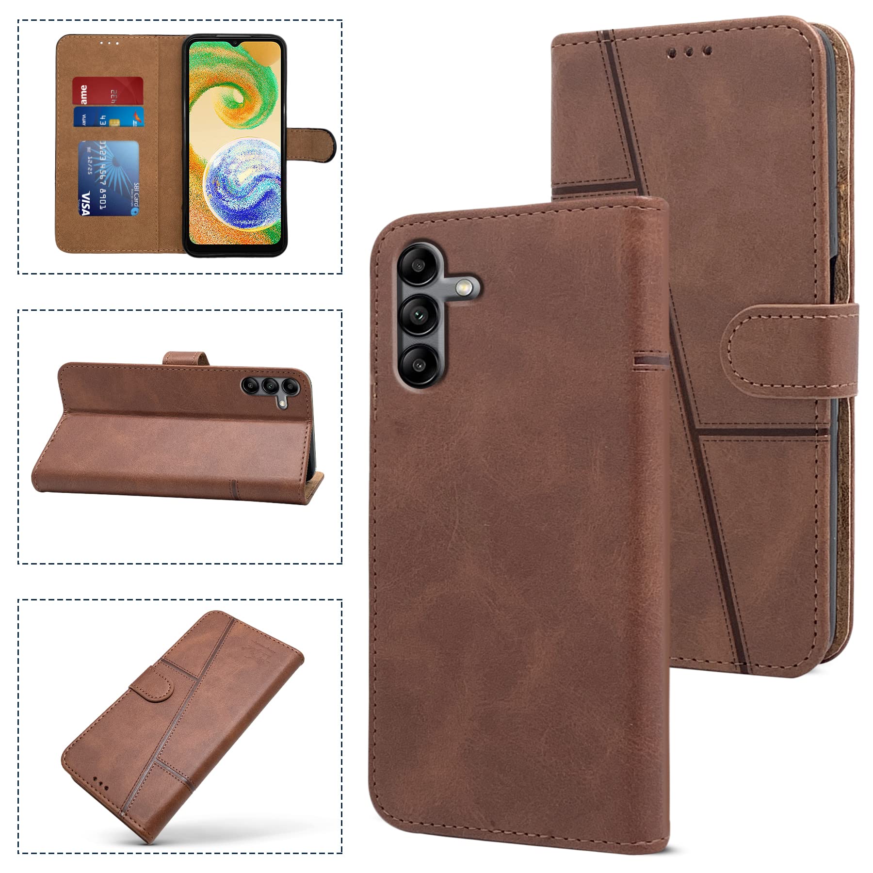 For Samsung Galaxy A04s Flip Cover Case (Stitched Leather Finish | Inner TPU | Foldable Stand | Wallet Card Slots)