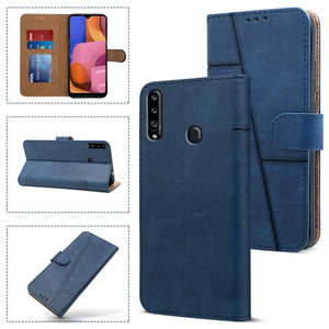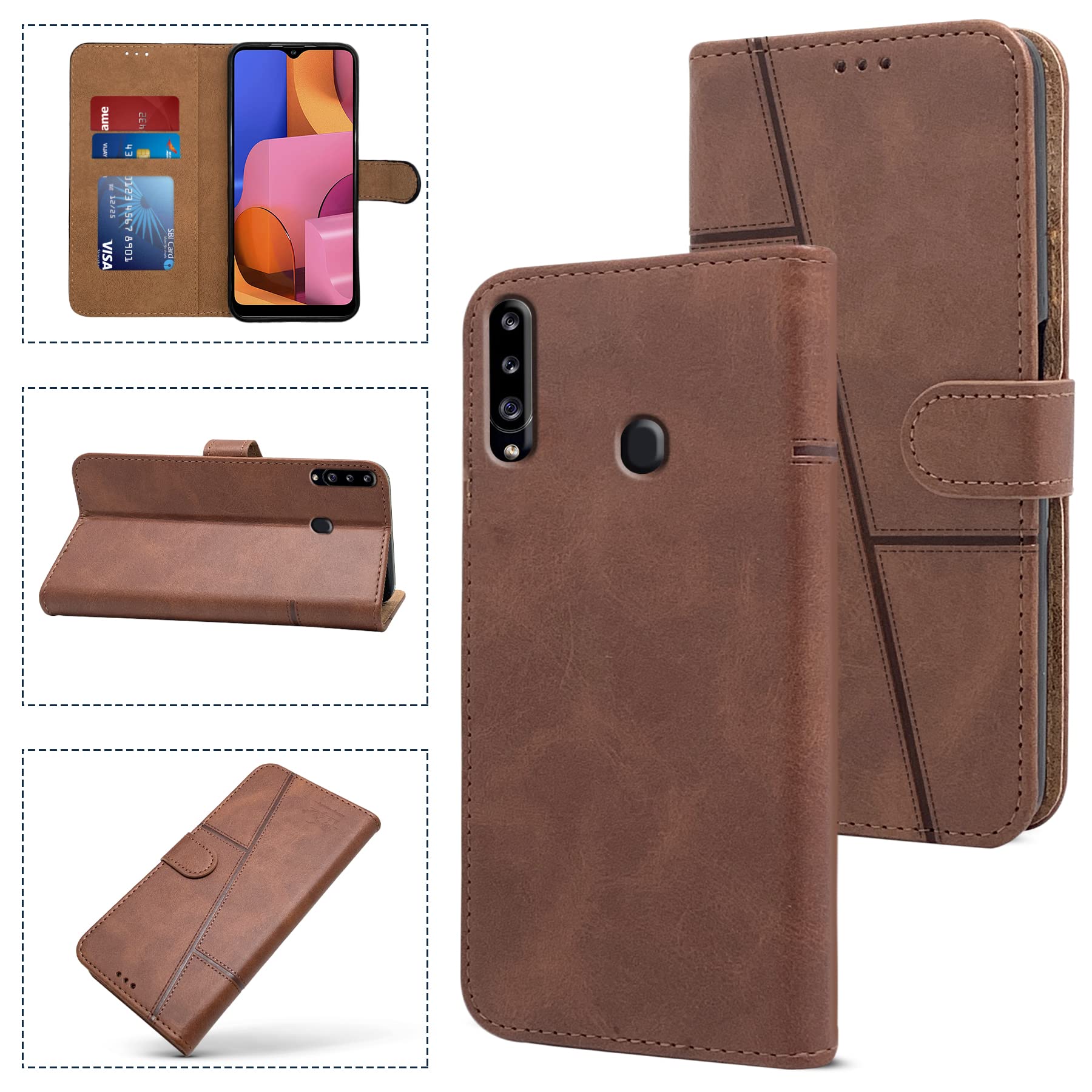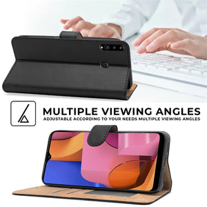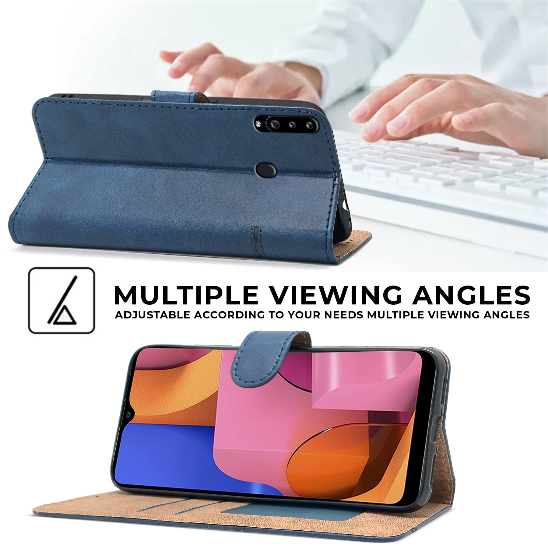 For Samsung Galaxy A20s Flip Cover Case (Stitched Leather Finish | Magnetic Closure | Inner TPU | Foldable Stand | Wallet Card Slots)