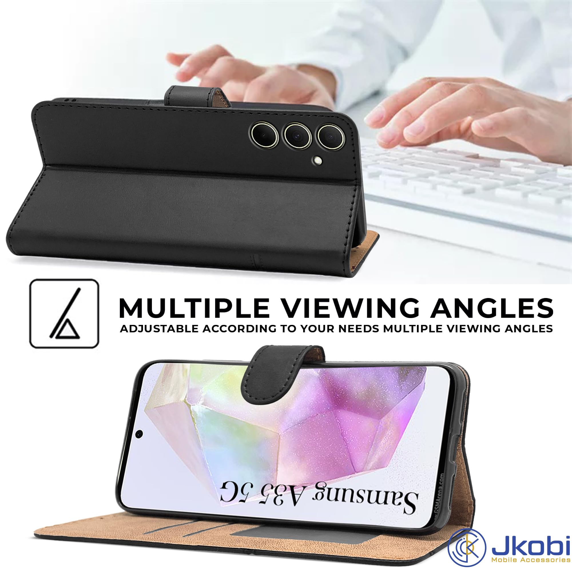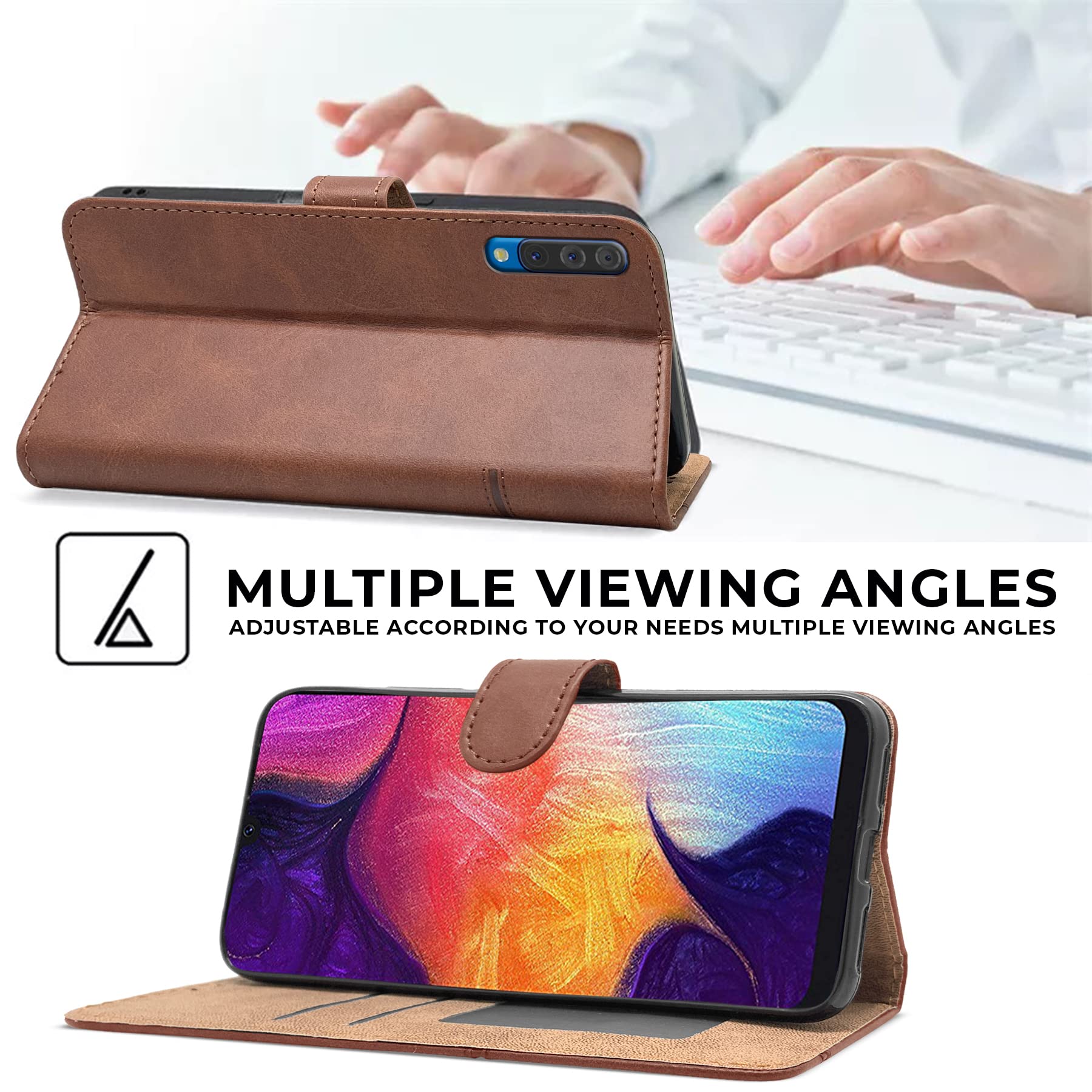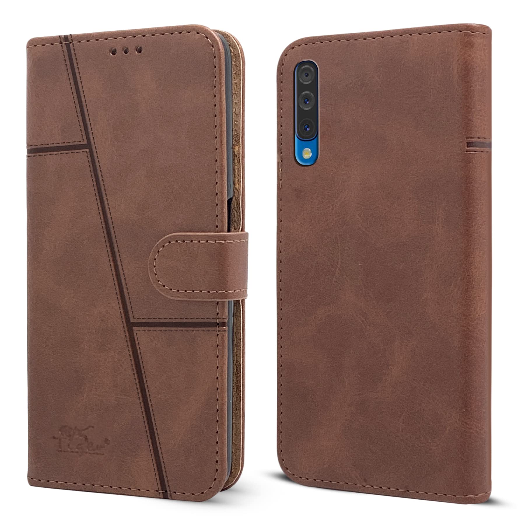 For Samsung Galaxy A50 | Galaxy A50s Flip Cover Case (Stitched Leather Finish | Magnetic Closure | Inner TPU | Foldable Stand | Wallet Card Slots)
