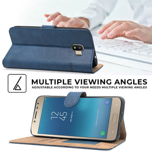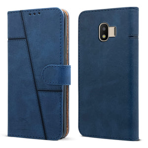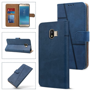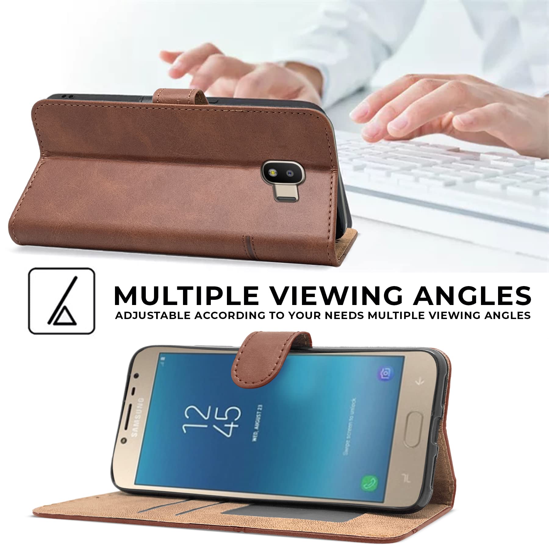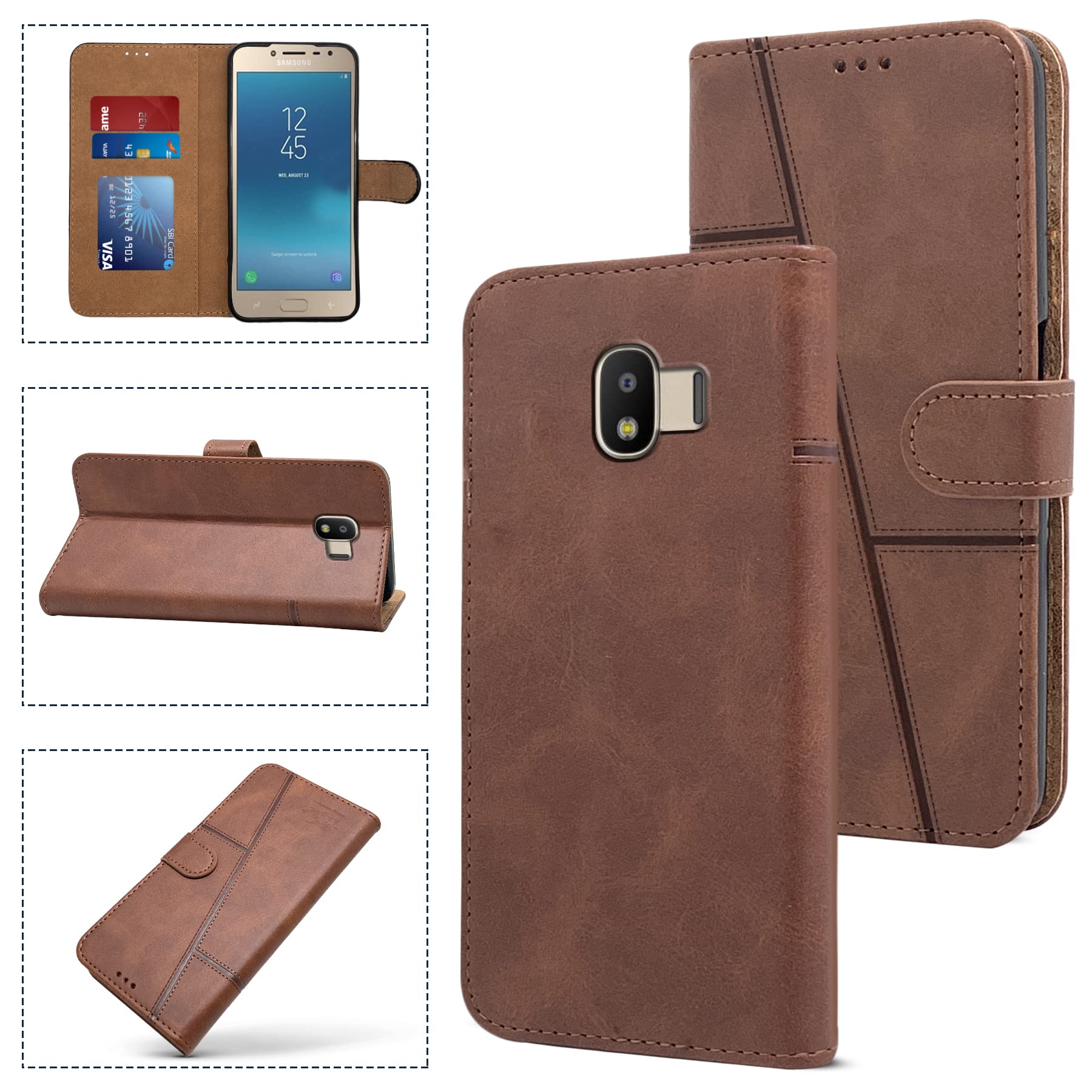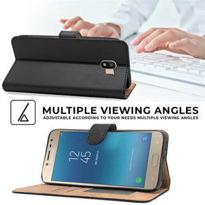 For Samsung Galaxy J2 2018 Flip Cover Case (Stitched Leather Finish | Magnetic Closure | Inner TPU | Foldable Stand | Wallet Card Slots)