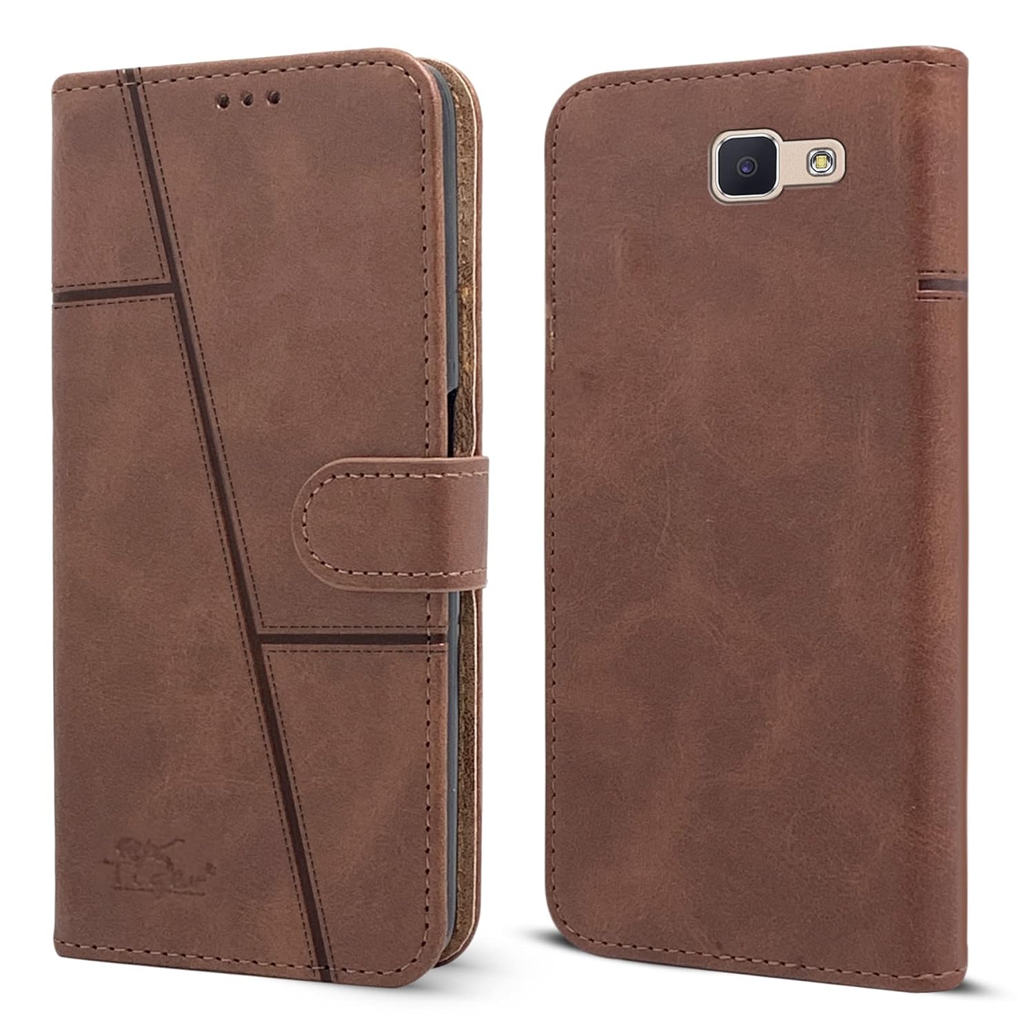 For Samsung Galaxy J5 Prime Flip Cover Case (Stitched Leather Finish | Magnetic Closure | Inner TPU | Foldable Stand | Wallet Card Slots)