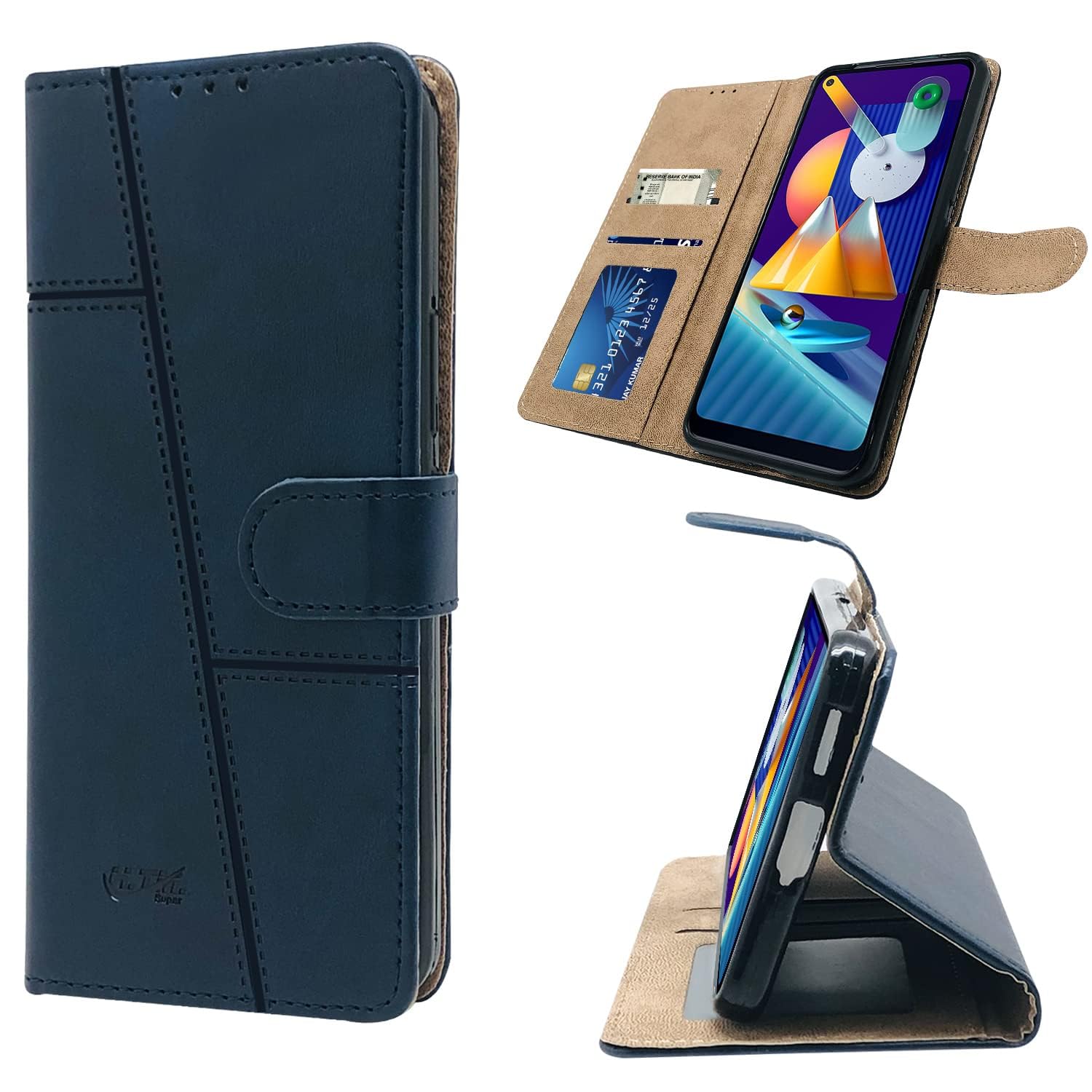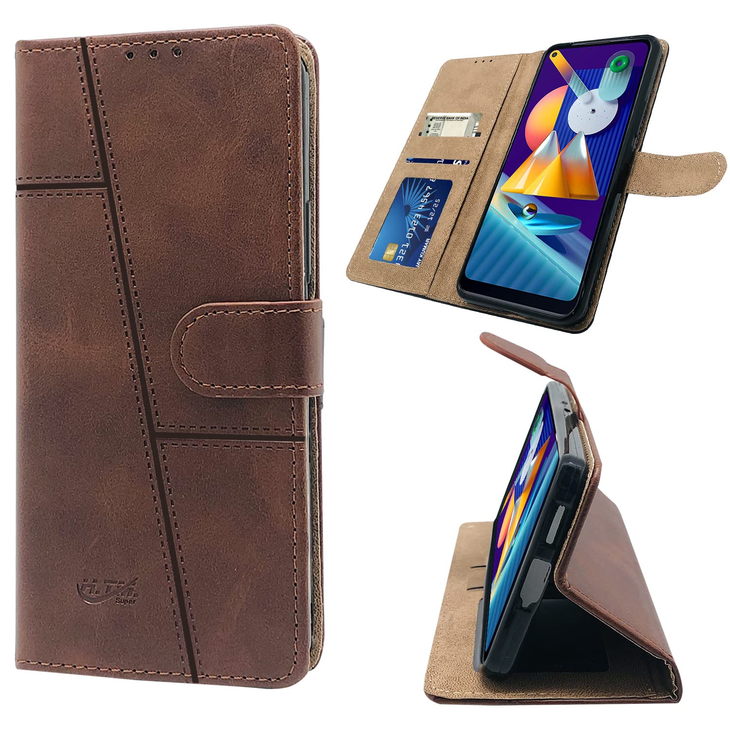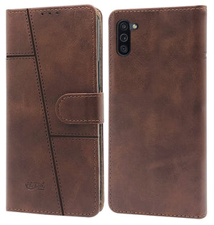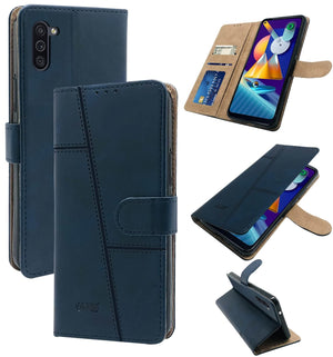 For Samsung Galaxy M11 Flip Cover Case(Stitched Leather with Magnetic Closure)