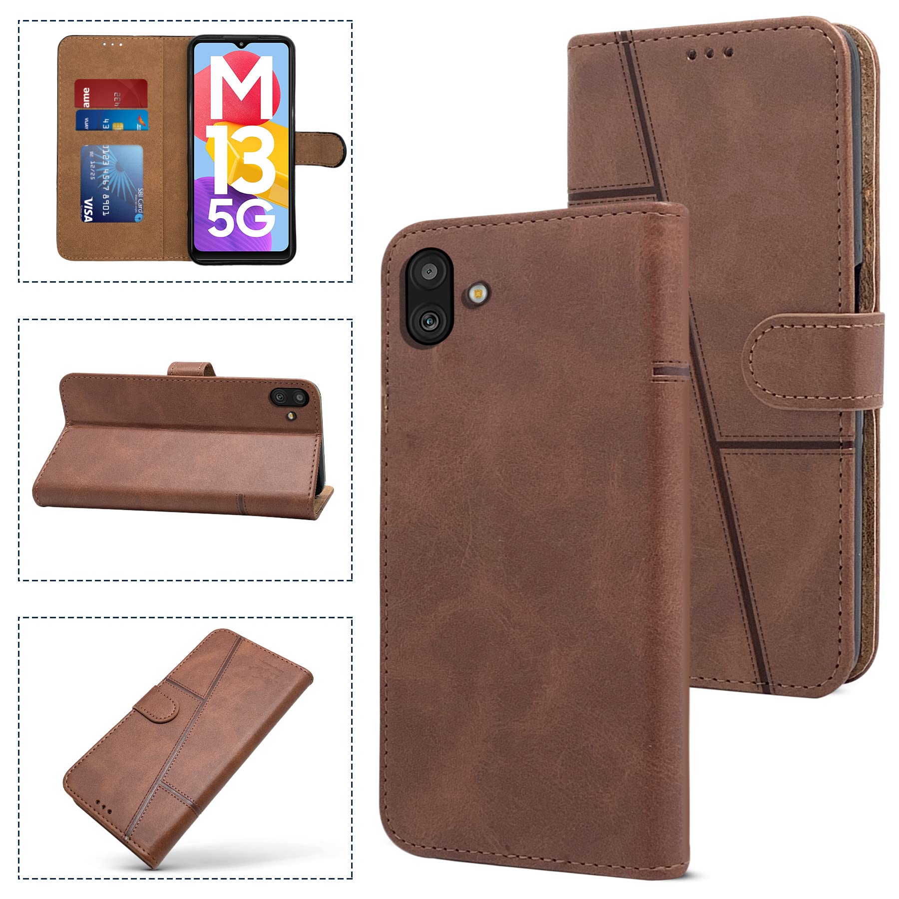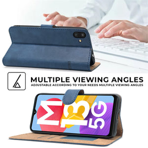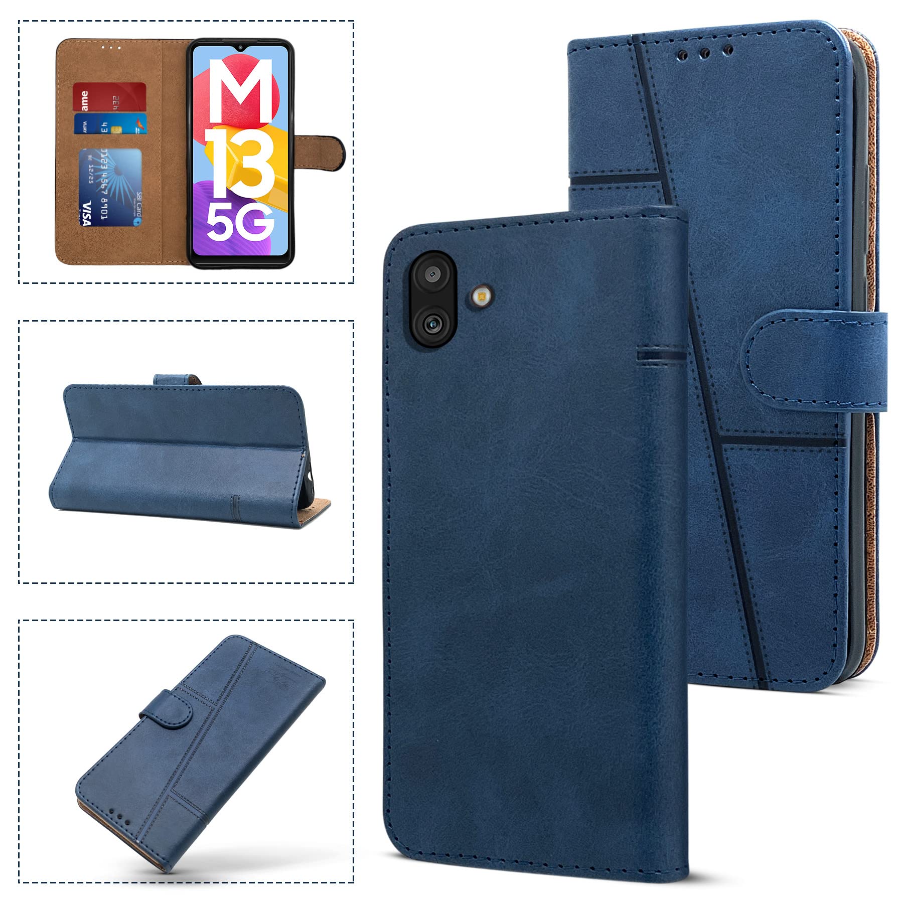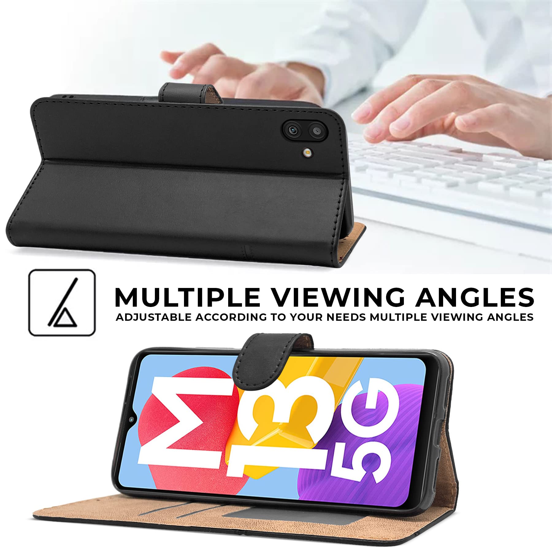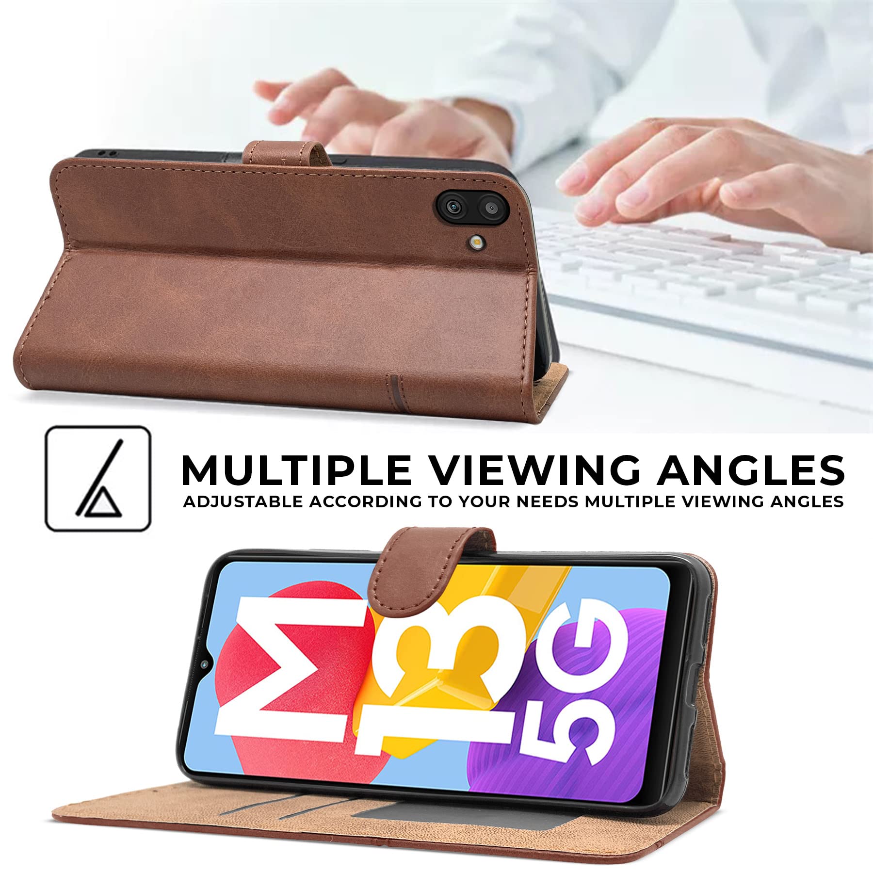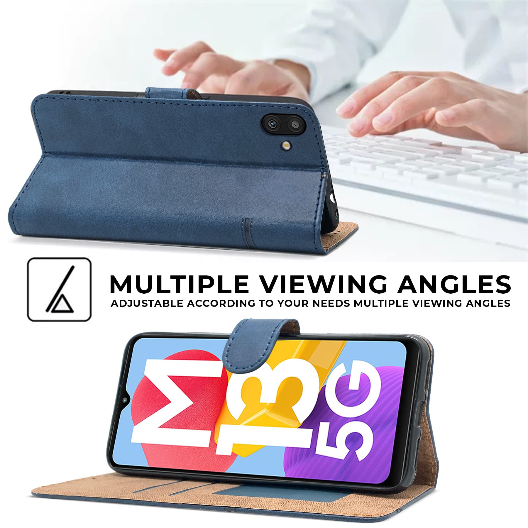 For Samsung Galaxy M13 5G Flip Cover Case (Stitched Leather Finish | Magnetic Closure | Inner TPU | Foldable Stand | Wallet Card Slots)
