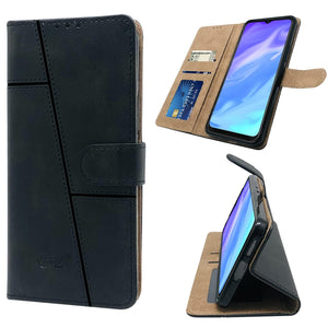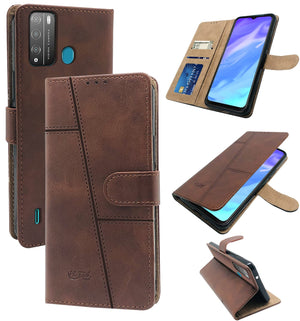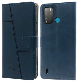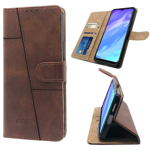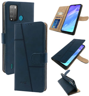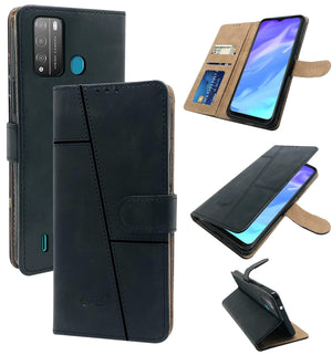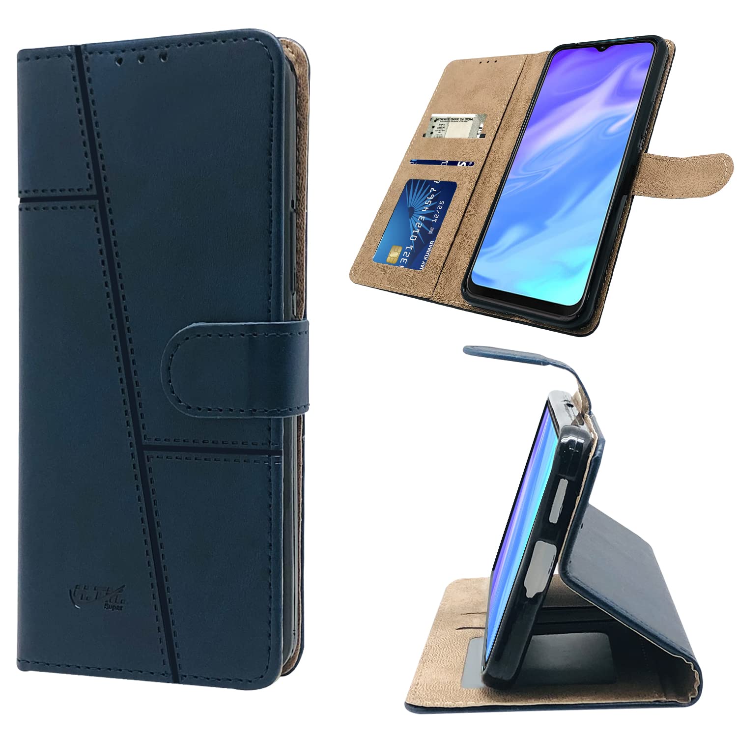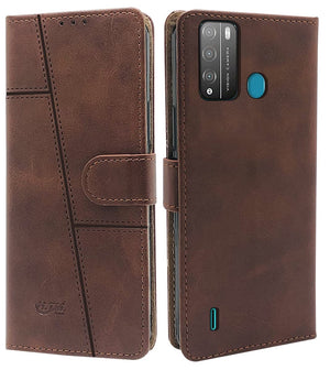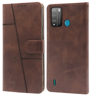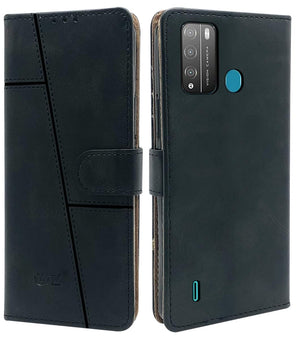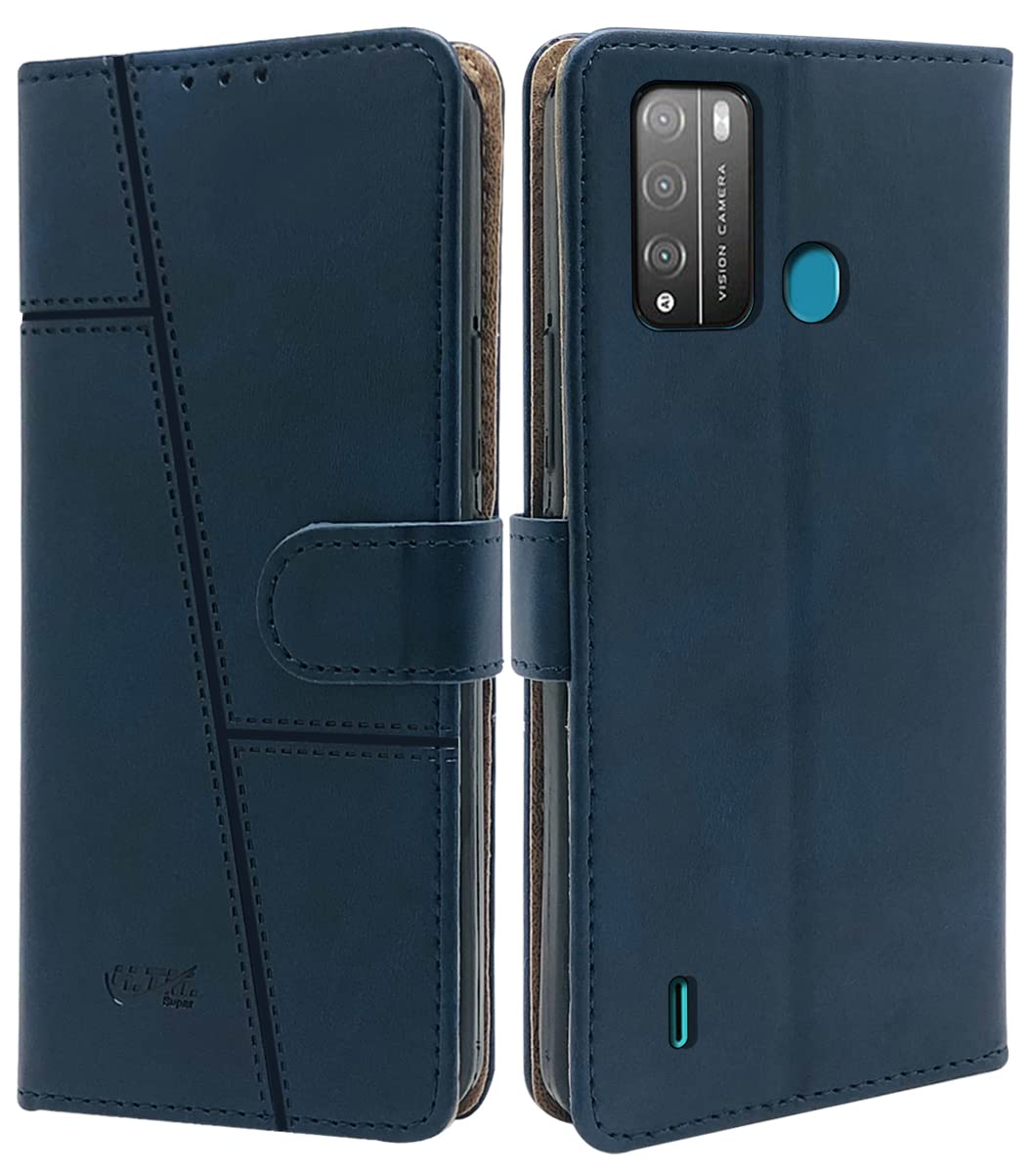 For Tecno Pop 5X Flip Cover Case (Stitched Leather Finish | Magnetic Closure | Inner TPU | Foldable Stand | Wallet Card Slots)
