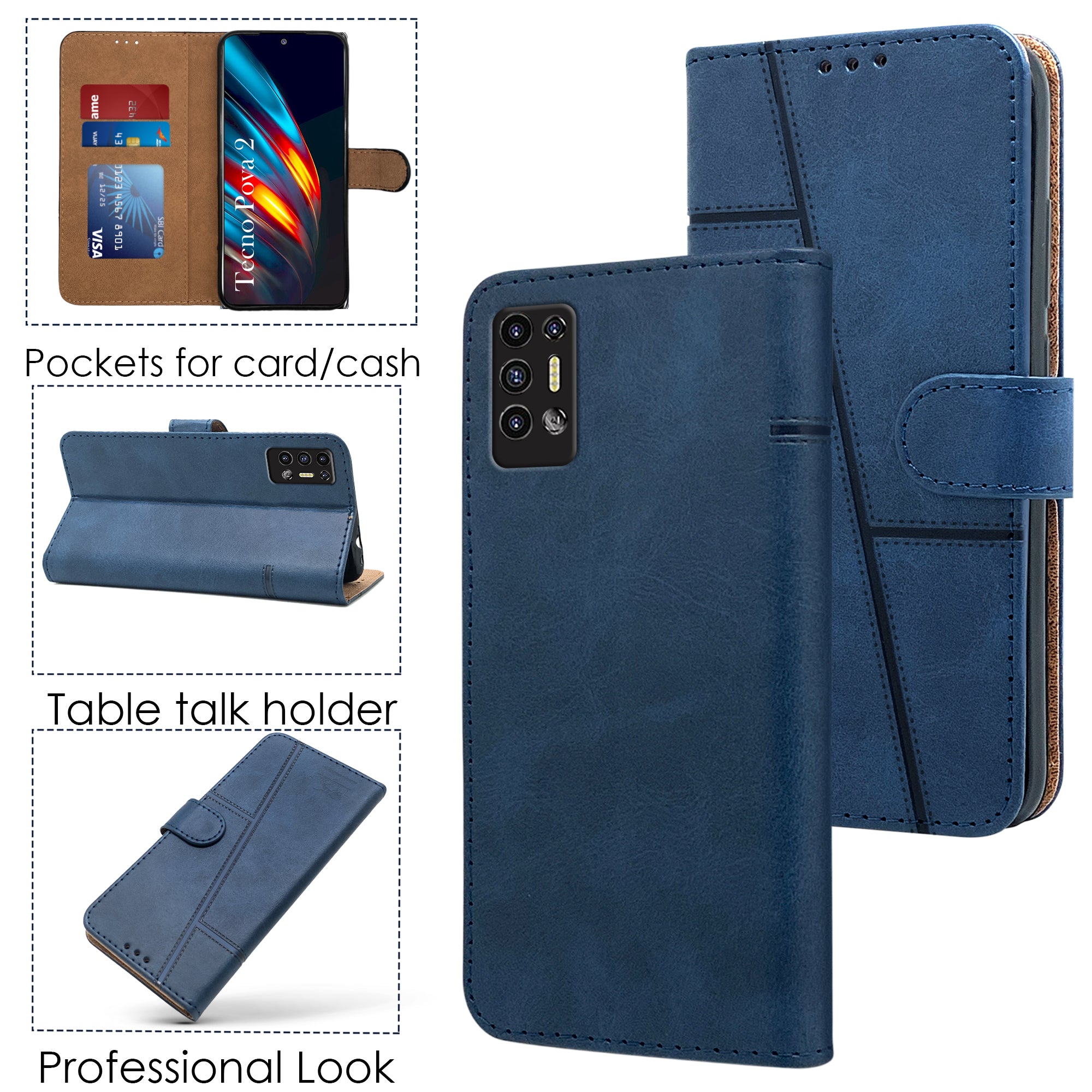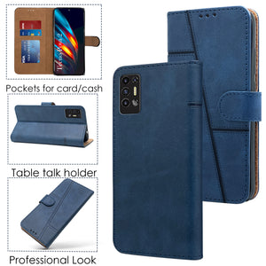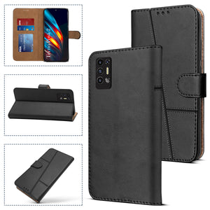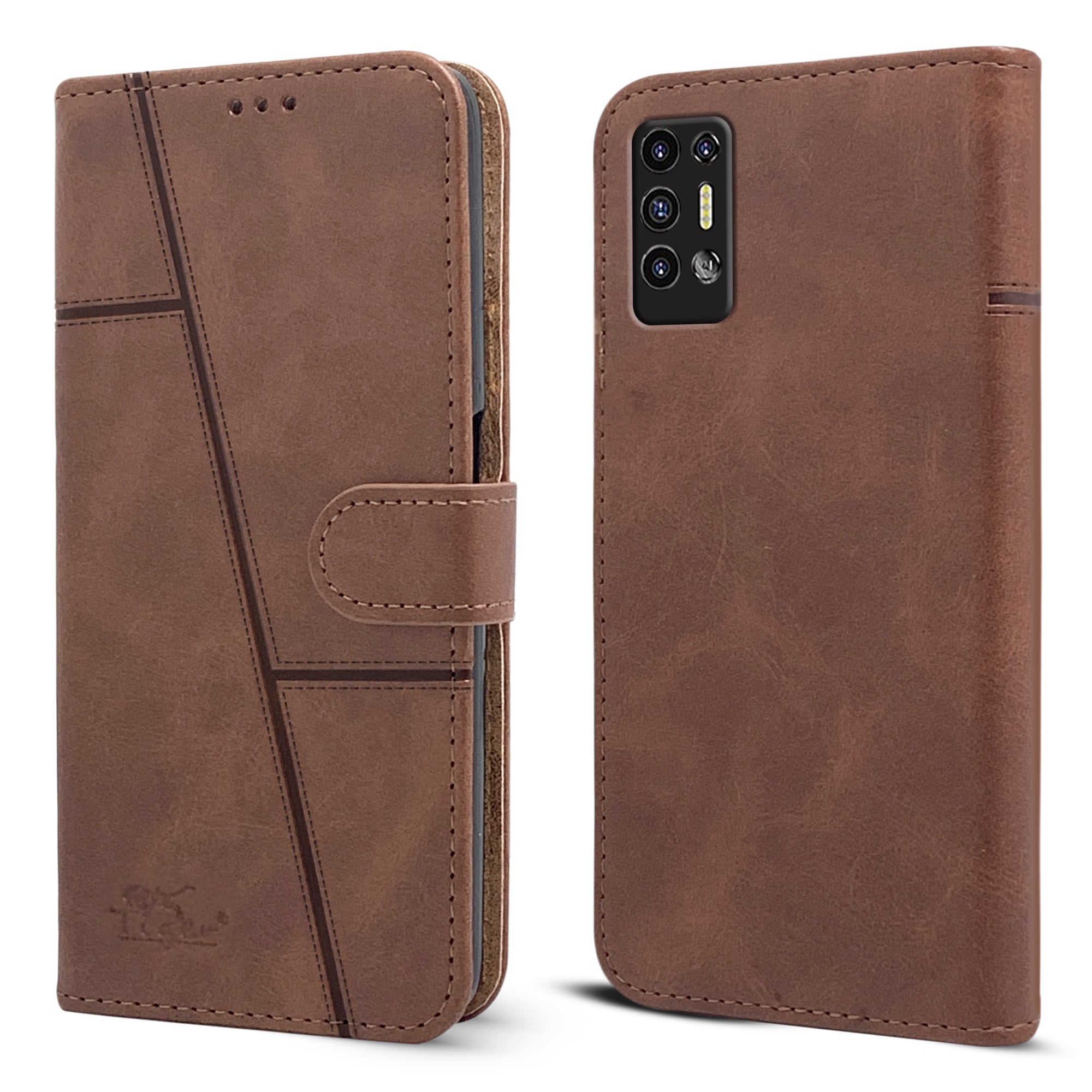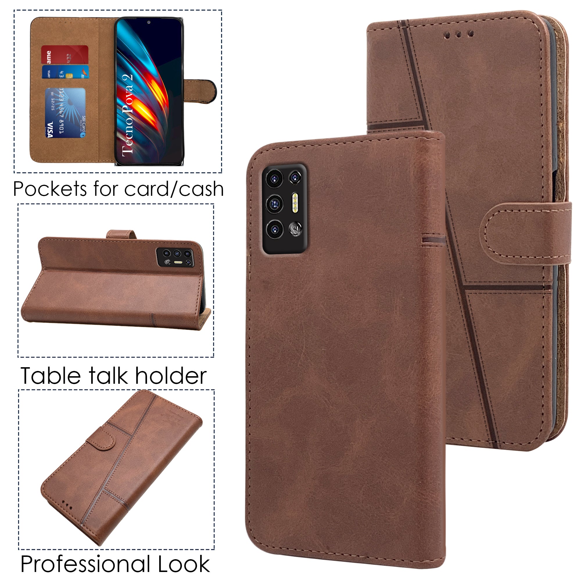 For Tecno Pova 2 Flip Cover Case (Stitched Leather Finish | Magnetic Closure | Inner TPU | Foldable Stand | Wallet Card Slots)