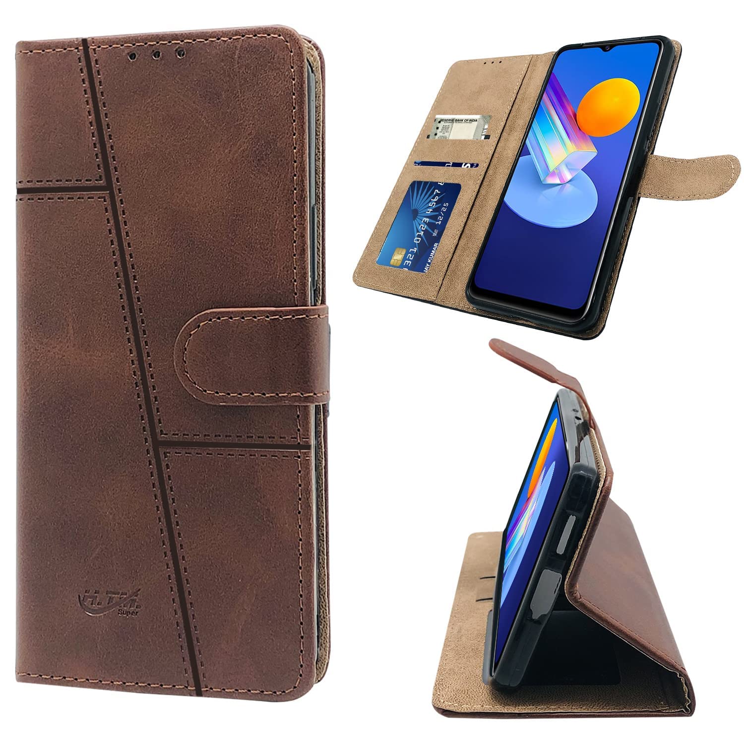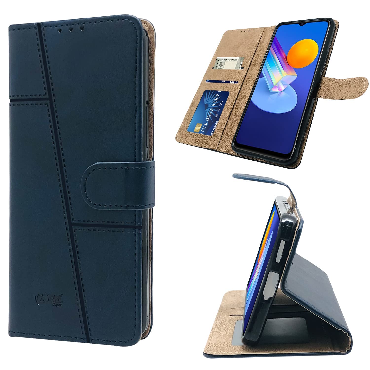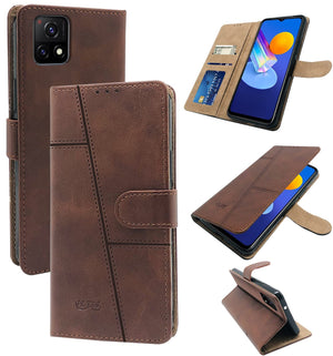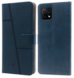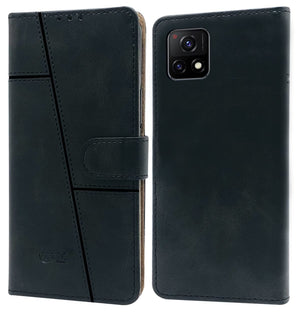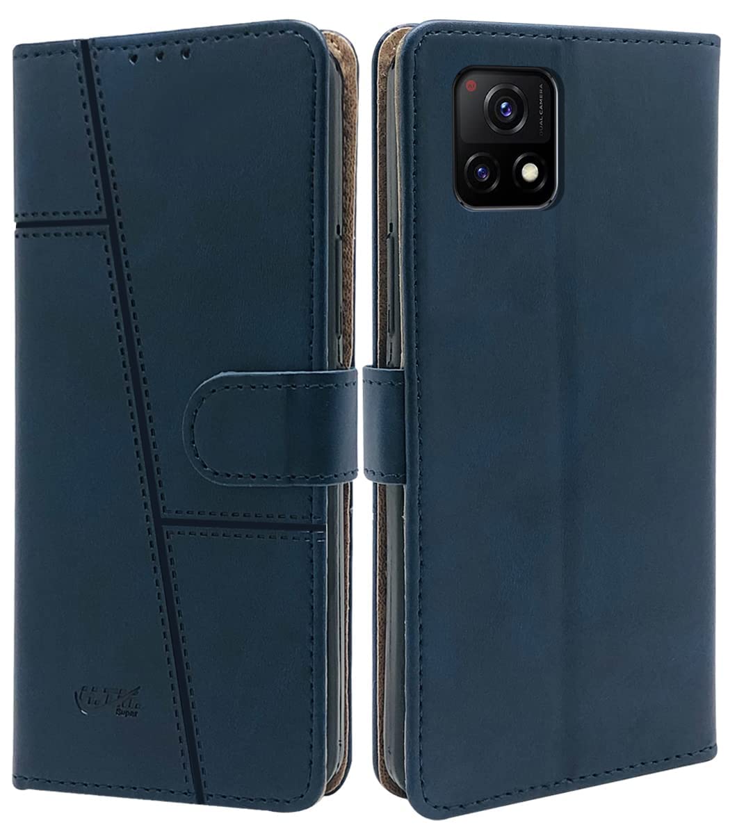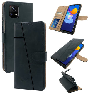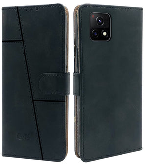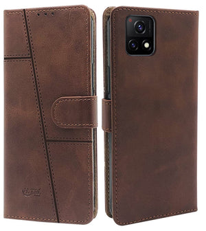 For Vivo iQOO U3 | iQOO U3x Flip Cover Case (Stitched Leather Finish | Magnetic Closure | Inner TPU | Foldable Stand | Wallet Card Slots)
