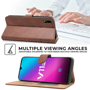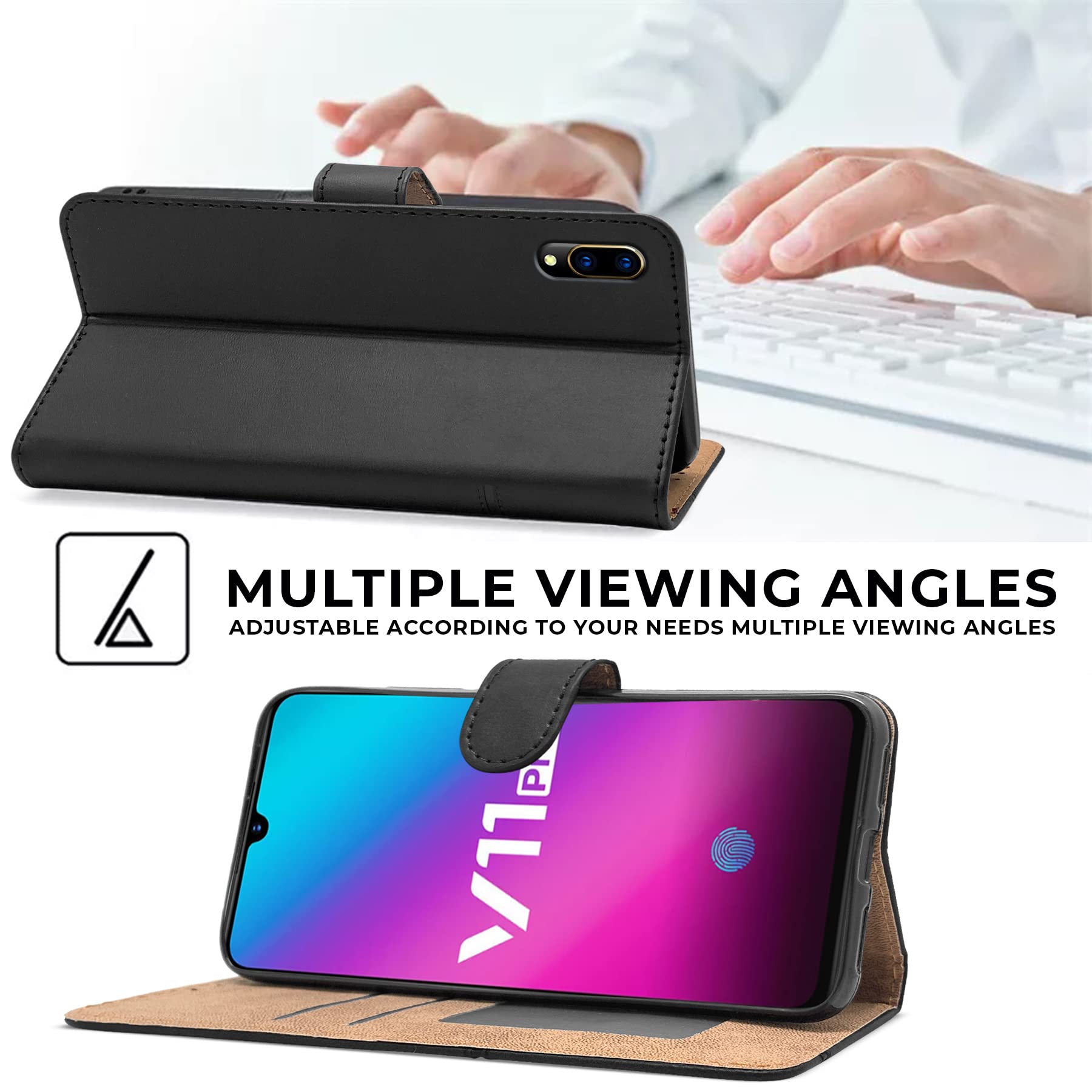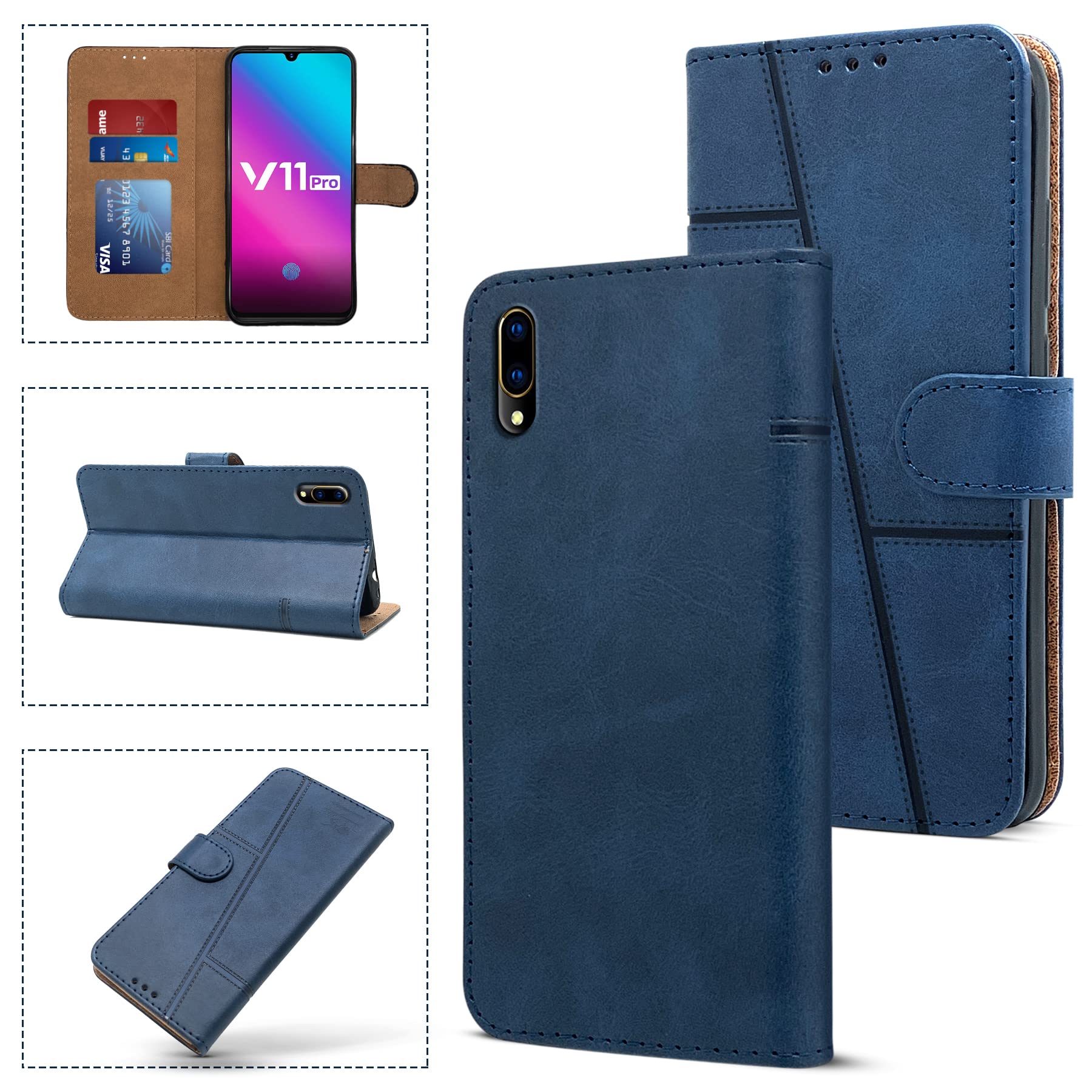 For Vivo V11 Pro Flip Cover Case (Stitched Leather Finish | Magnetic Closure | Inner TPU | Foldable Stand | Wallet Card Slots)