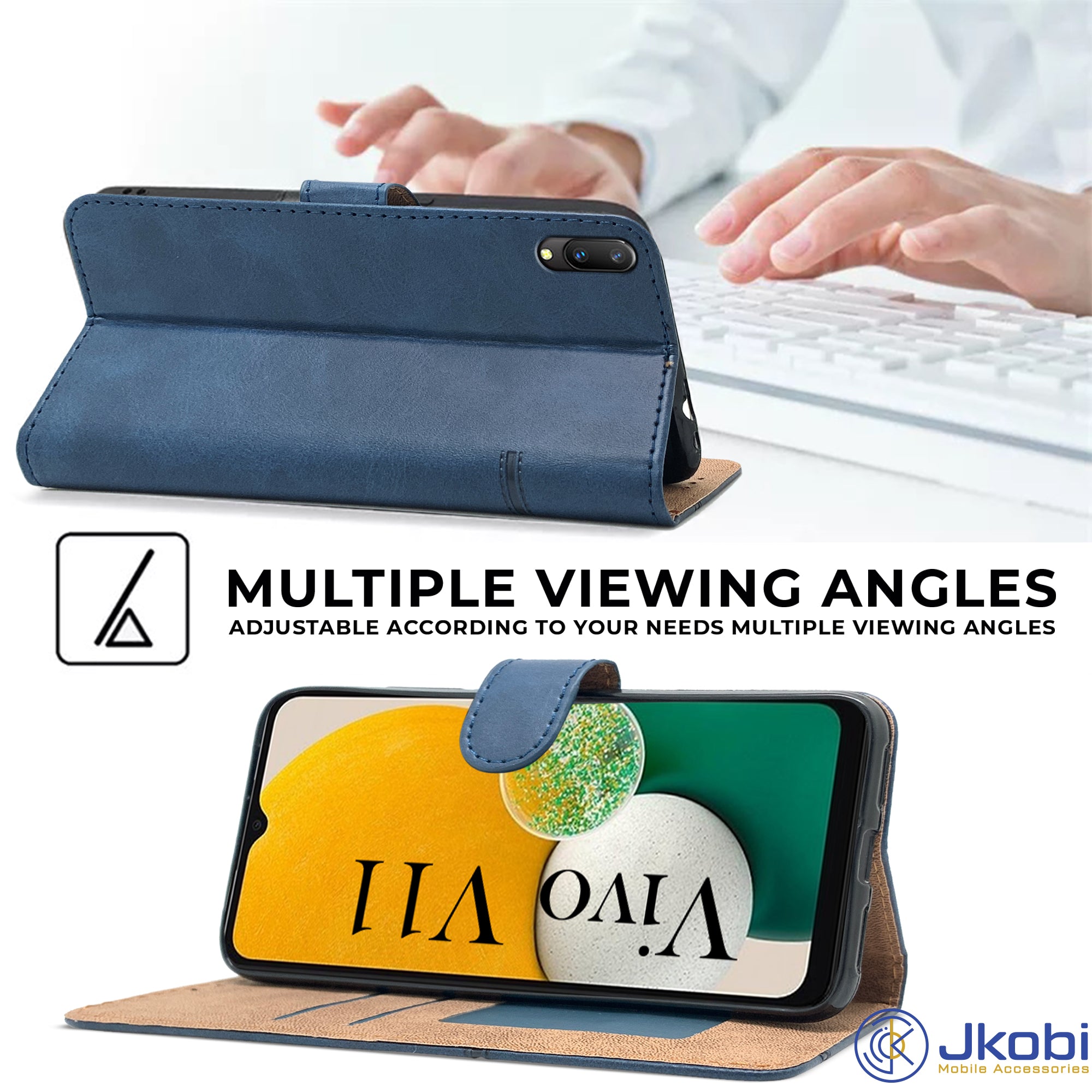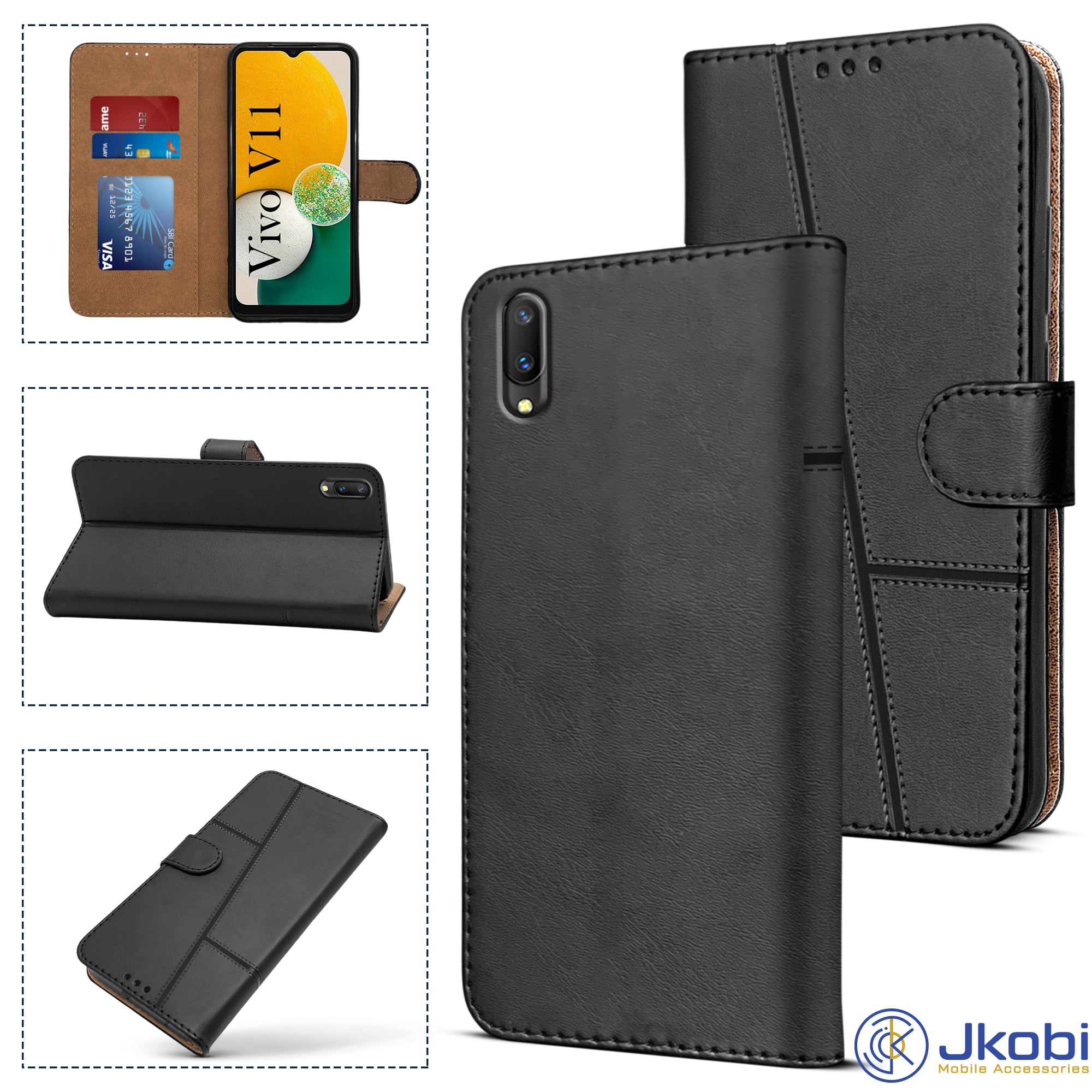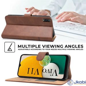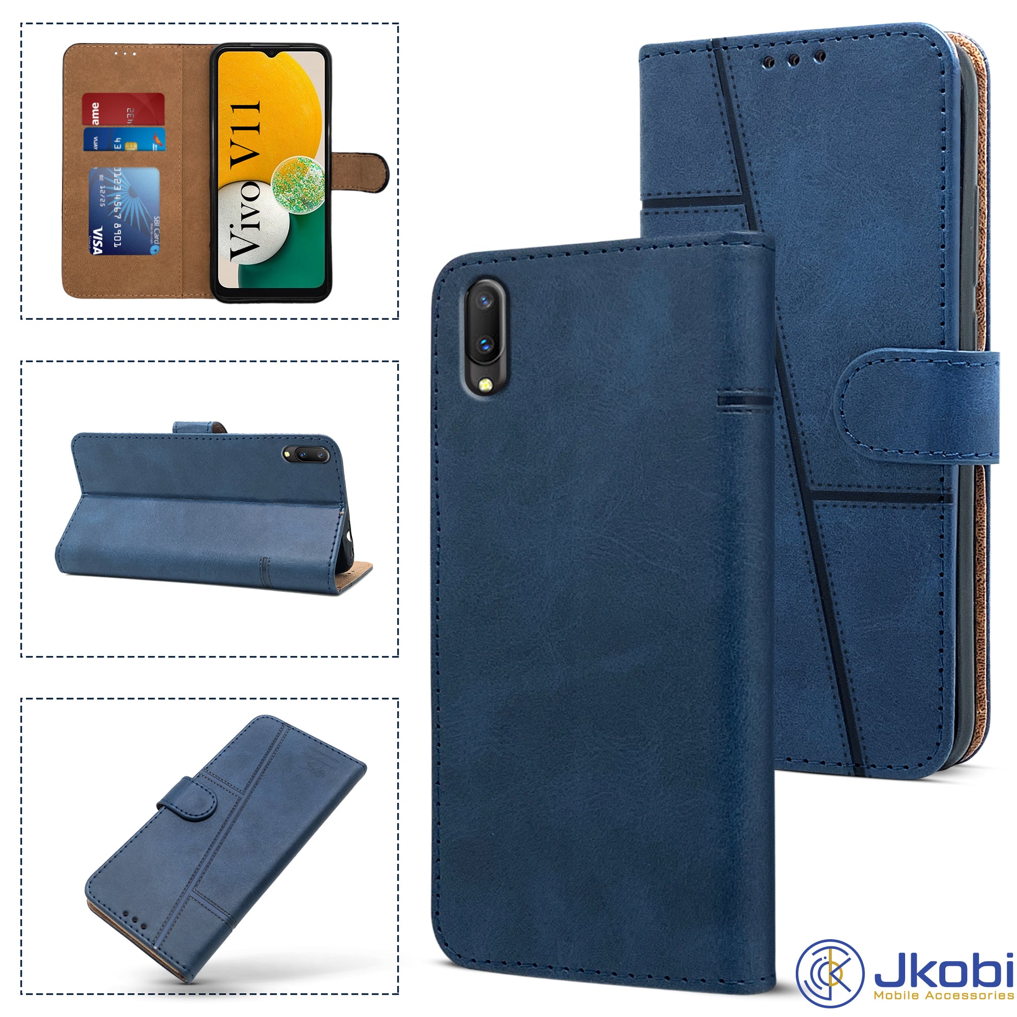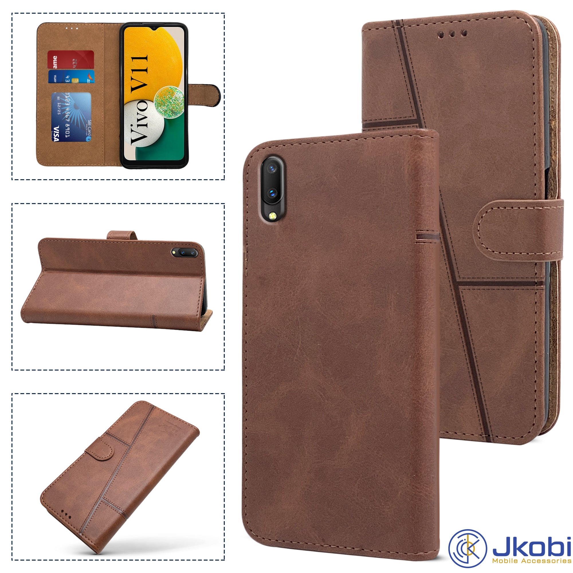 For Vivo V11 Flip Cover Case (Stitched Leather Finish | Magnetic Closure | Inner TPU | Foldable Stand | Wallet Card Slots)