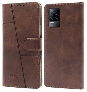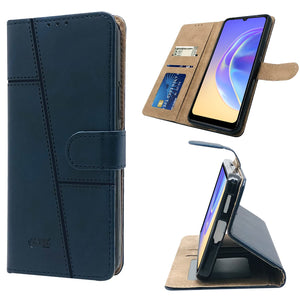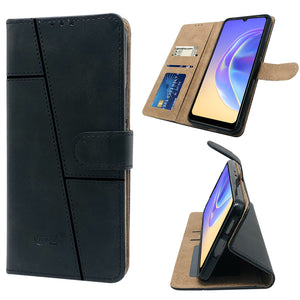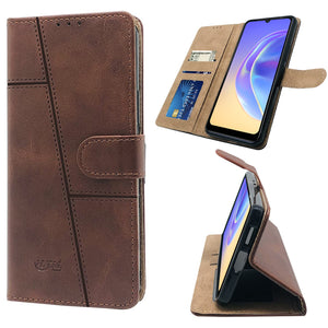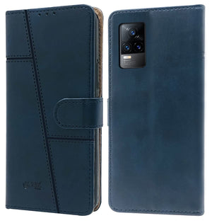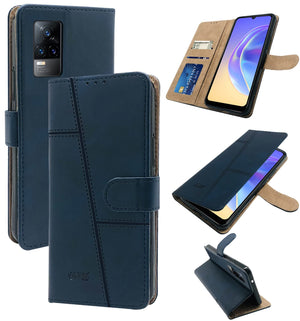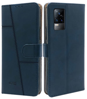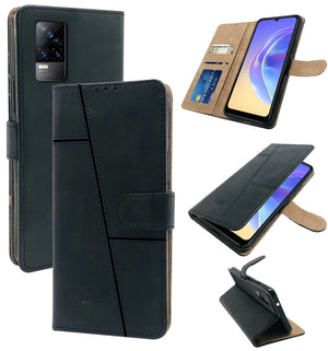 For Vivo V21e 4G Flip Cover Case (Stitched Leather Finish | Magnetic Closure | Inner TPU | Foldable Stand | Wallet Card Slots)