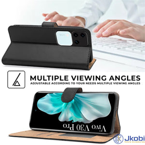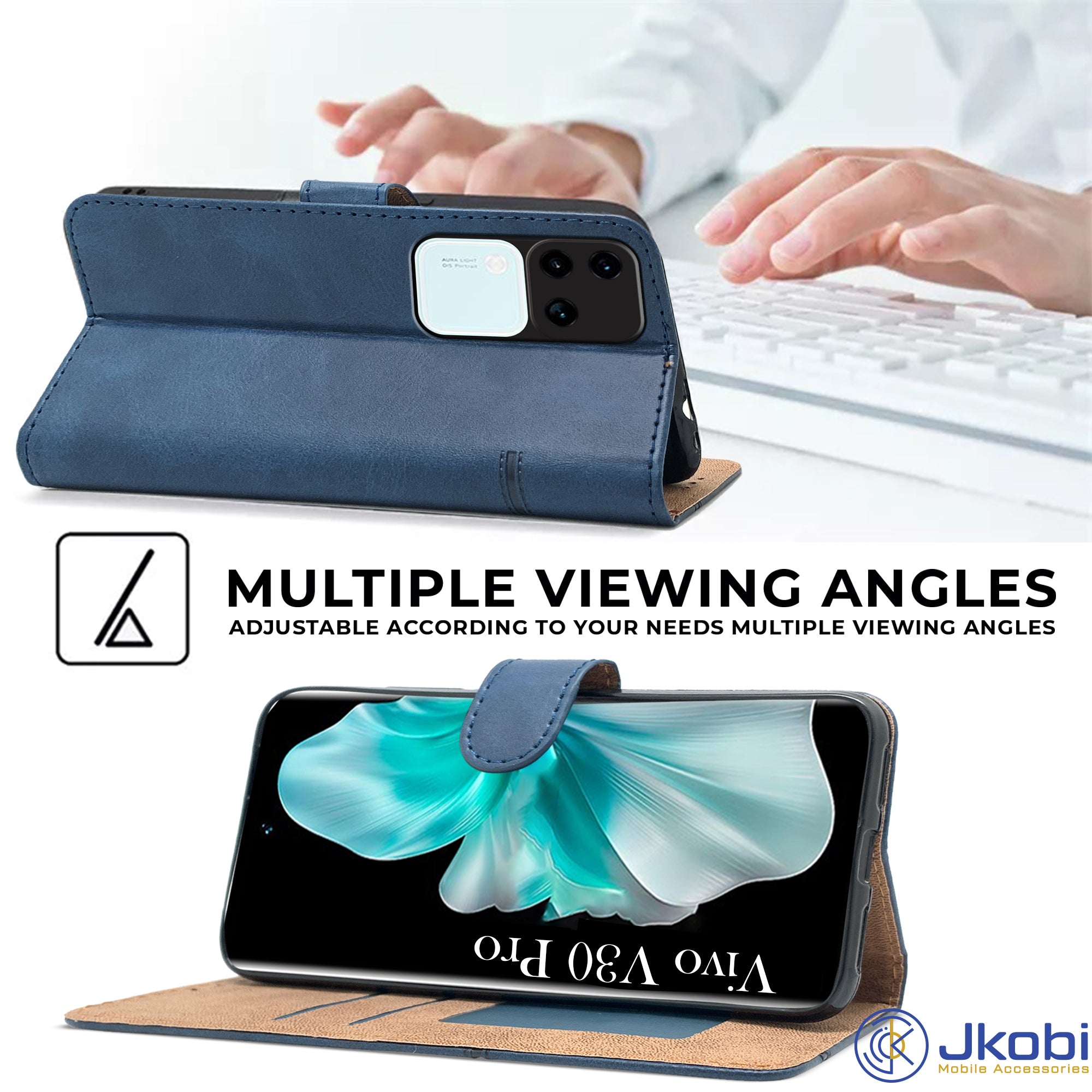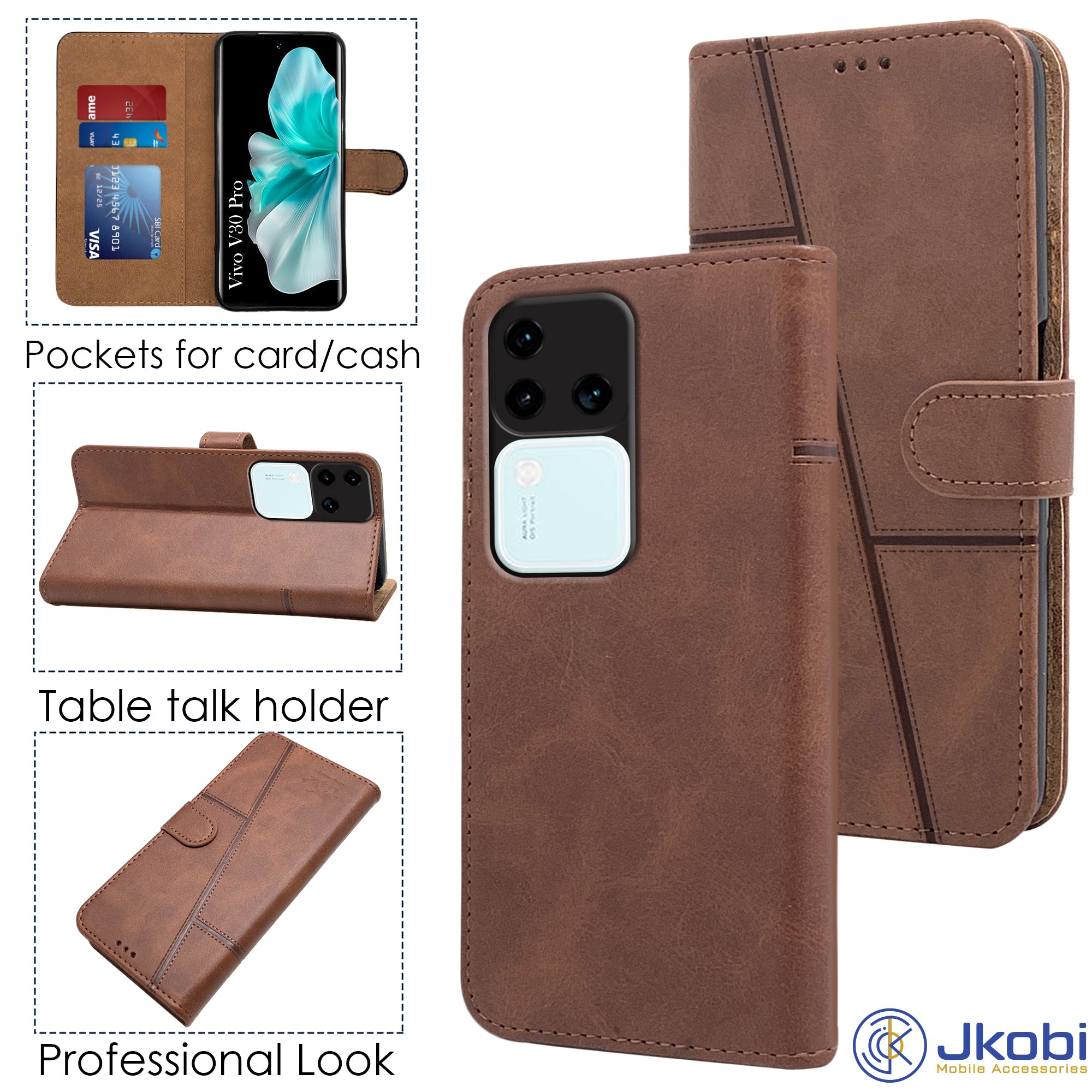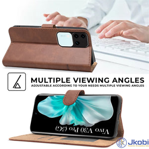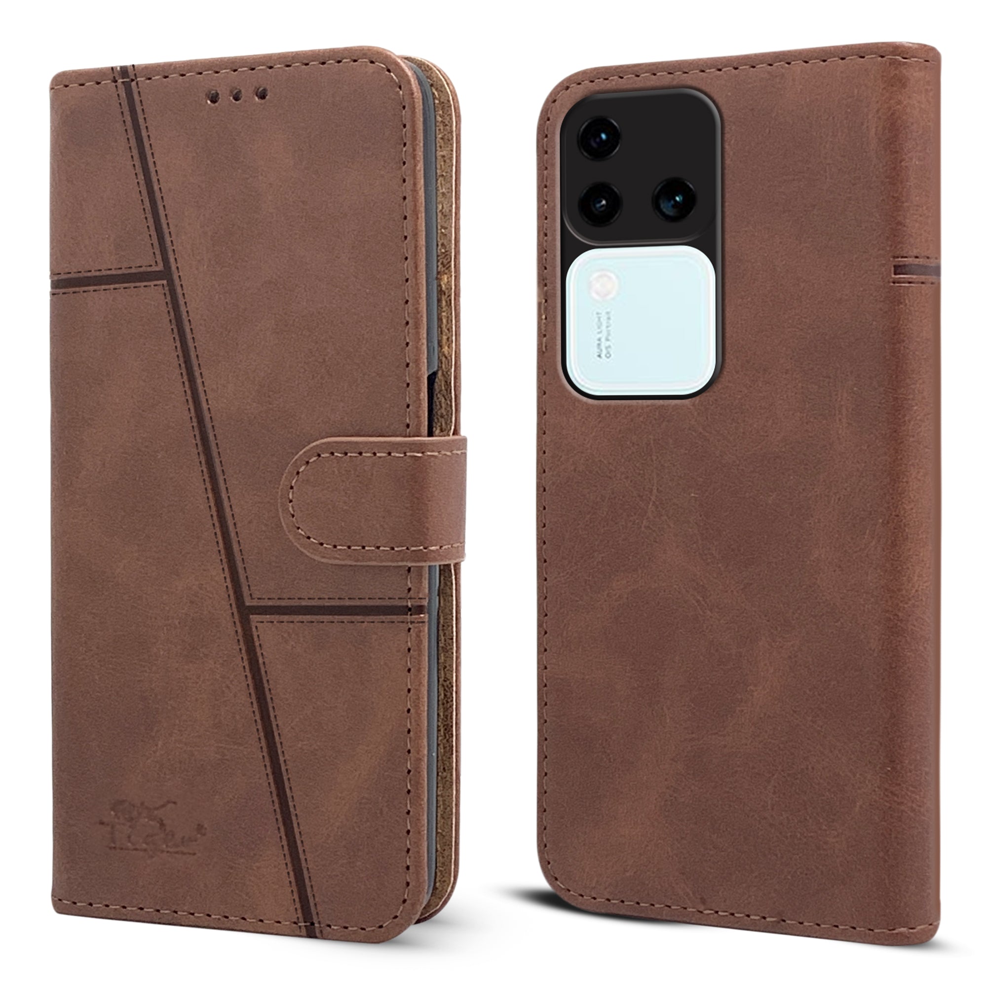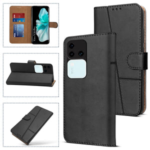 For Vivo V30 Pro 5G Flip Cover Case (Stitched Leather with Magnetic Closure)