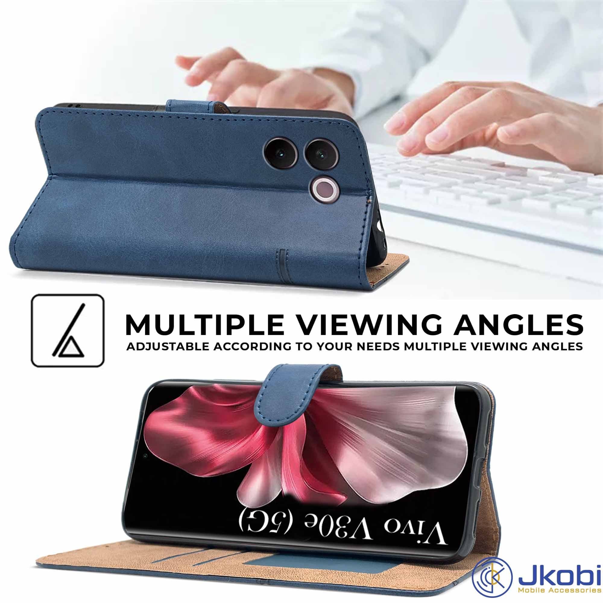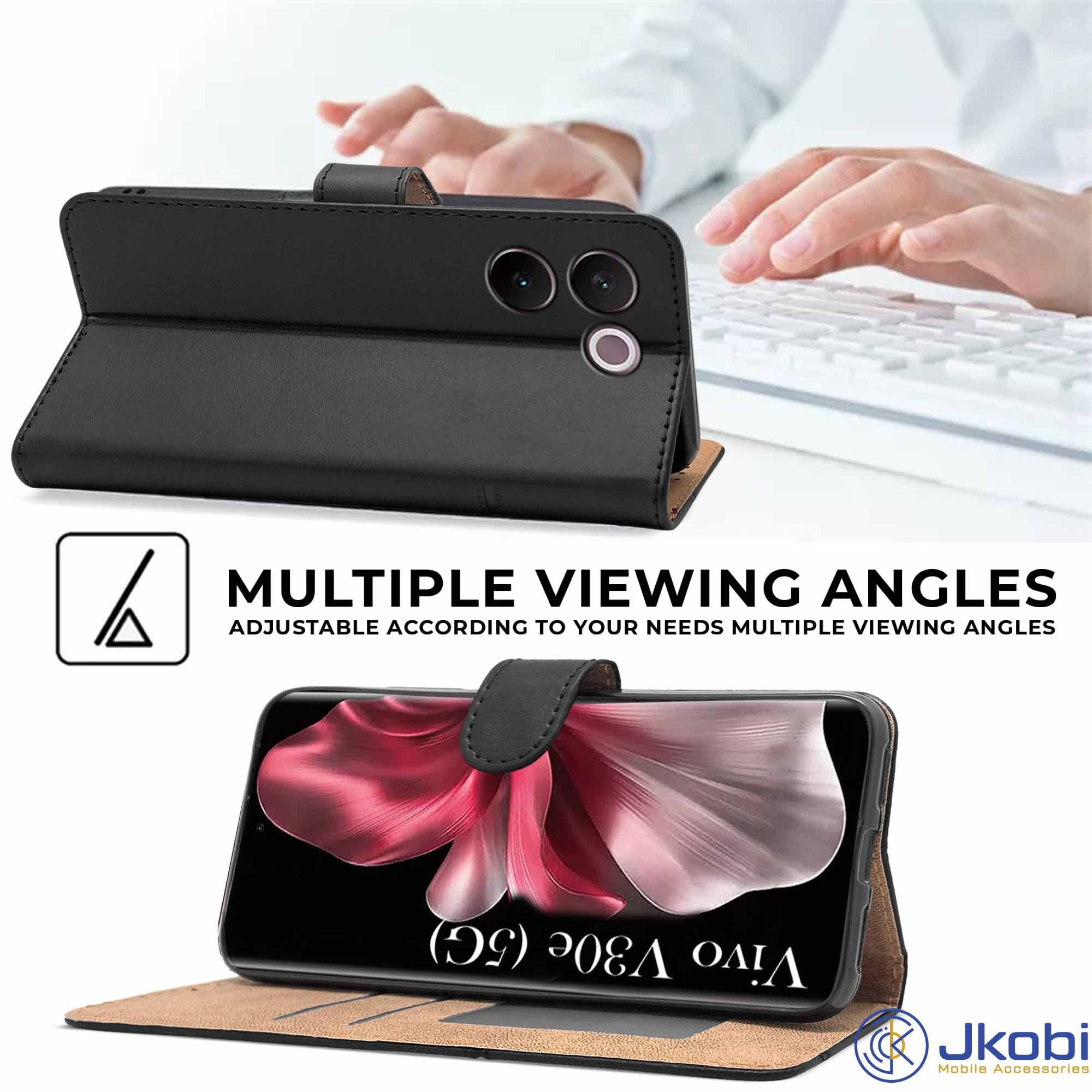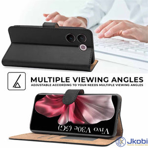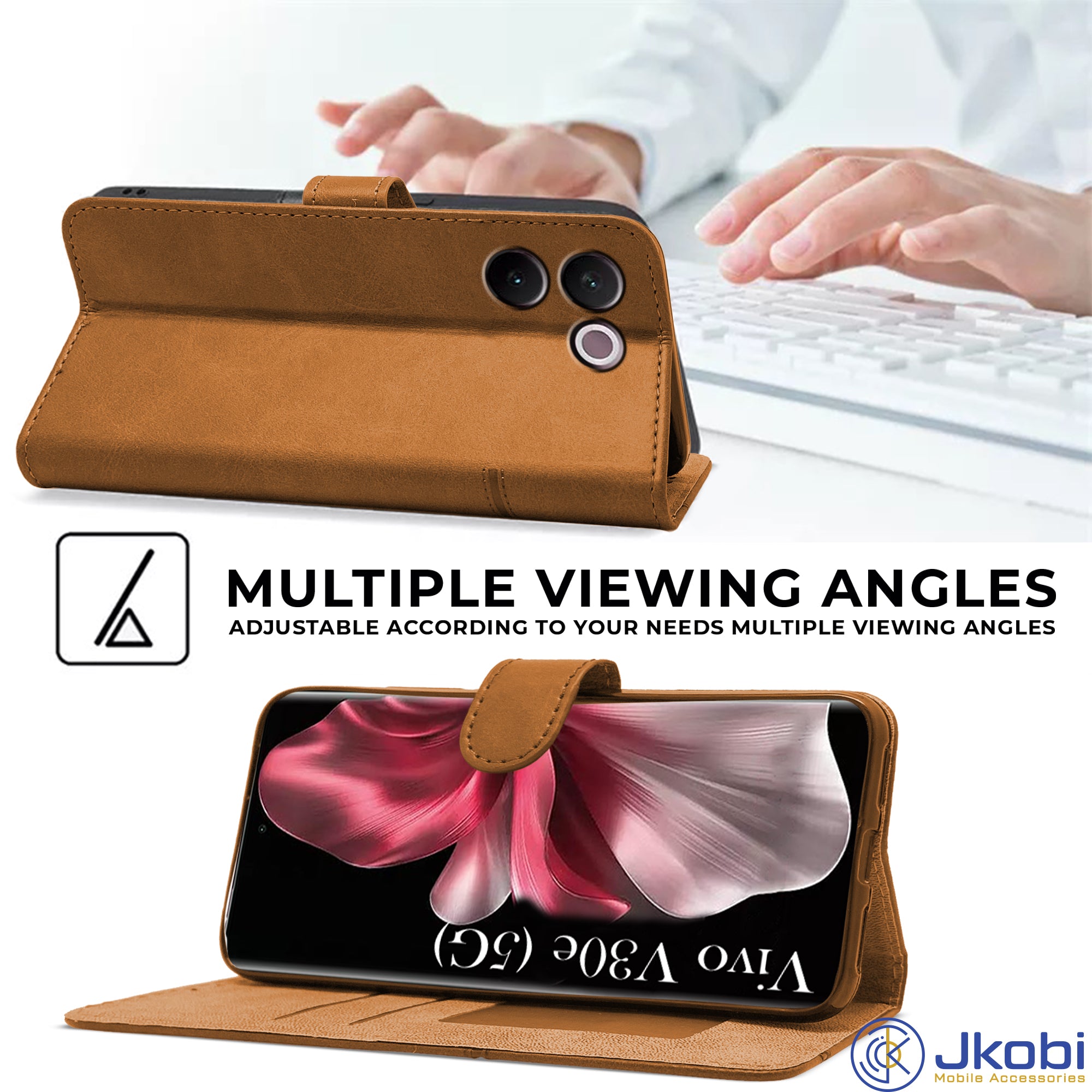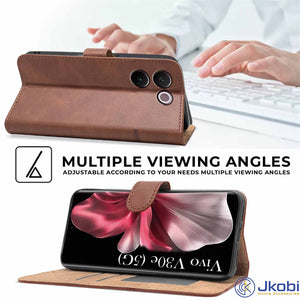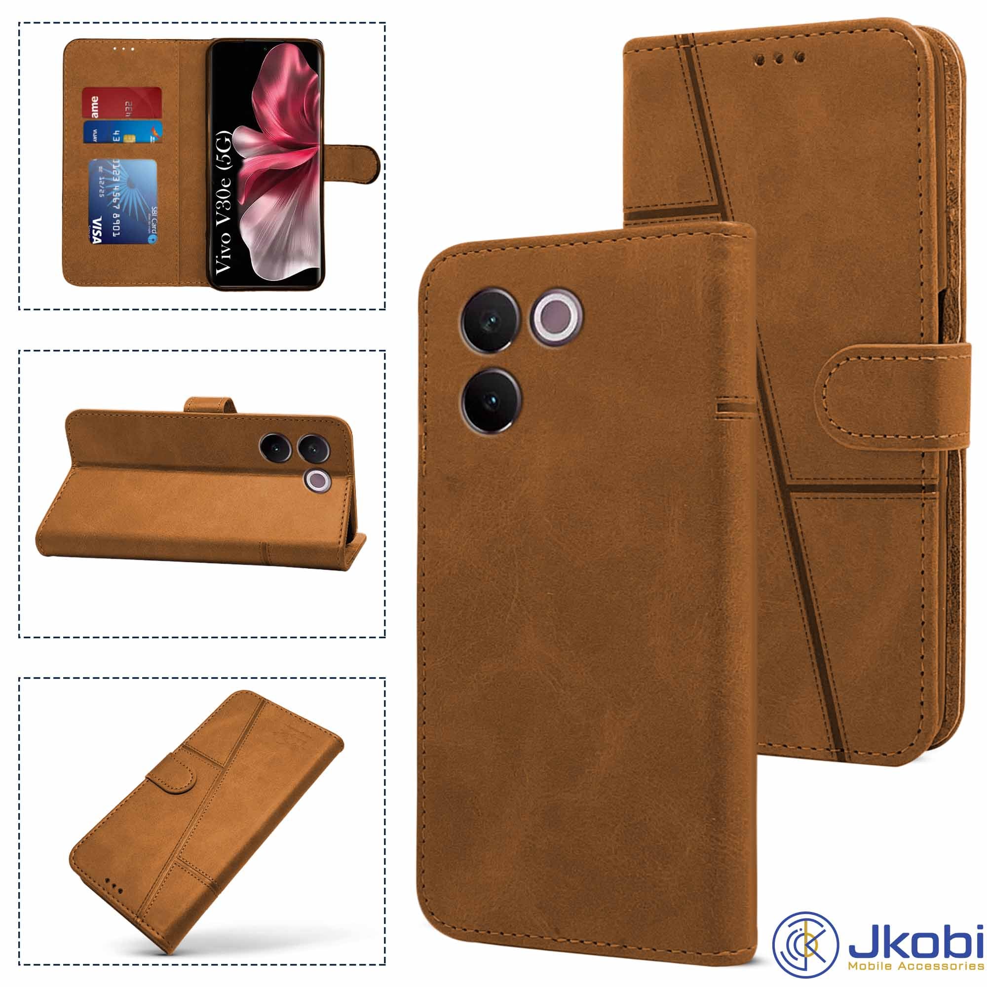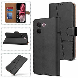 For Vivo V30e 5G Flip Cover Case (Stitched Leather with Magnetic Closure)