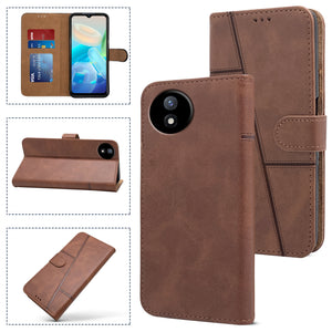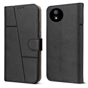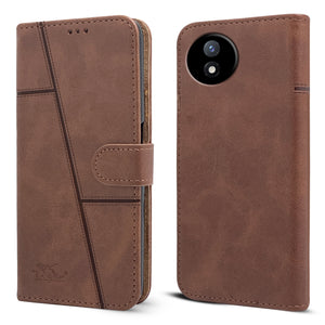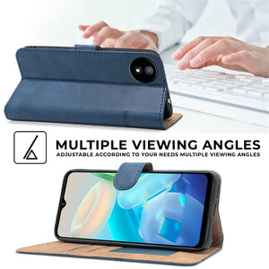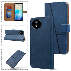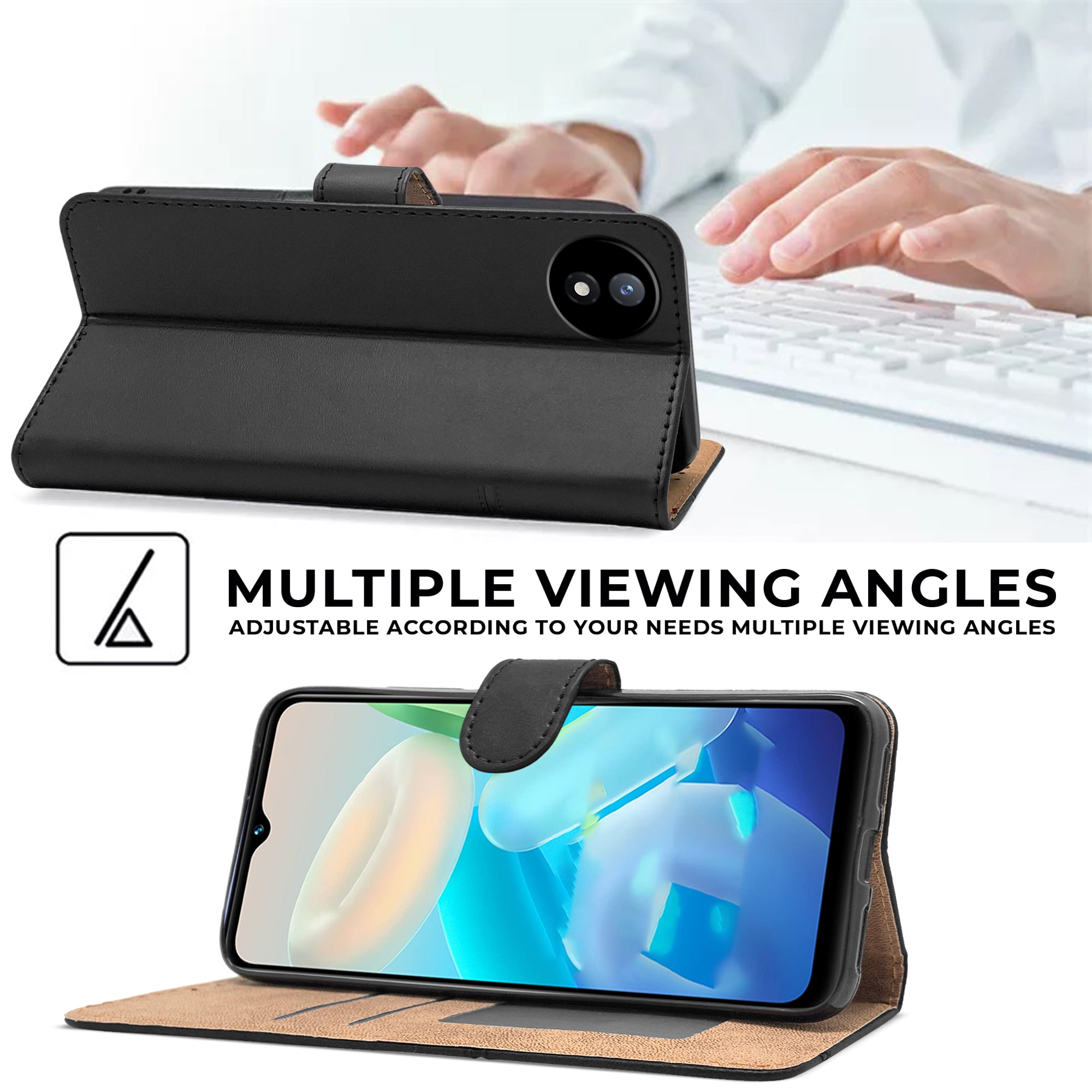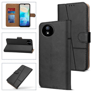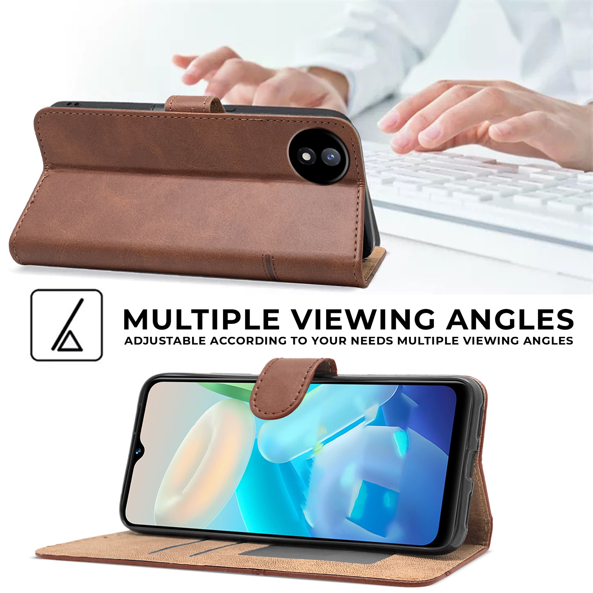 For Vivo Y02 Flip Cover Case (Stitched Leather Finish | Magnetic Closure | Inner TPU | Foldable Stand | Wallet Card Slots)