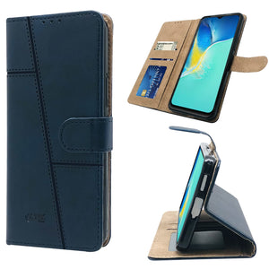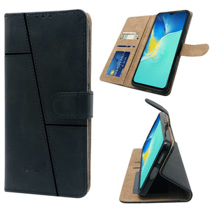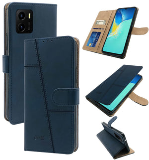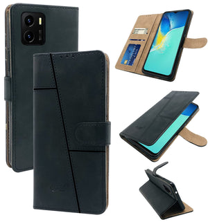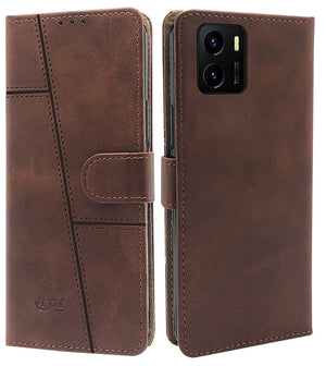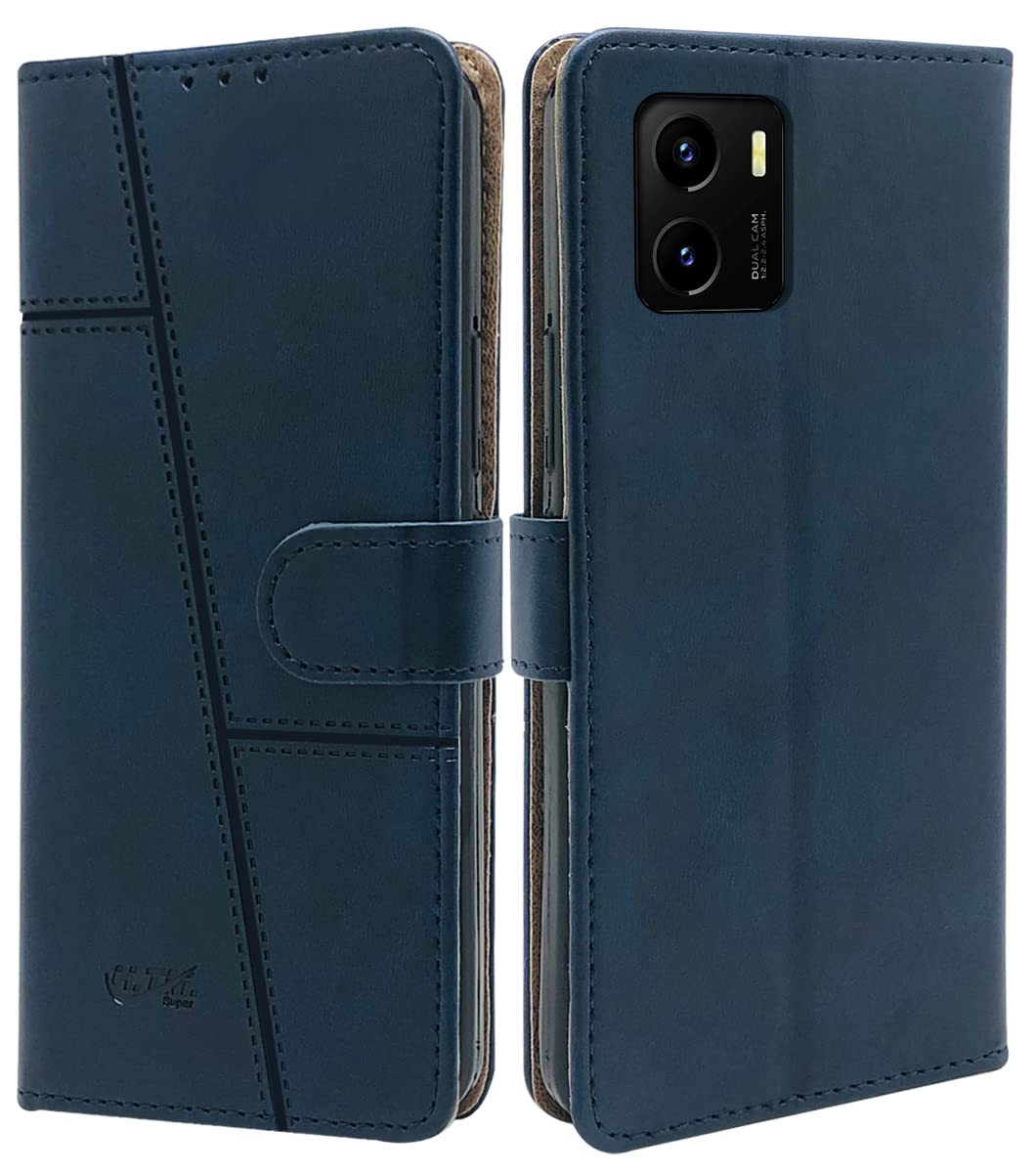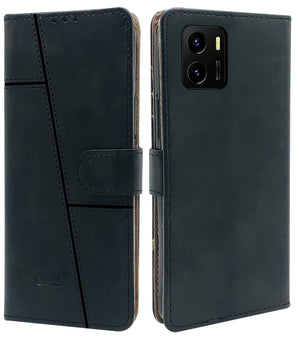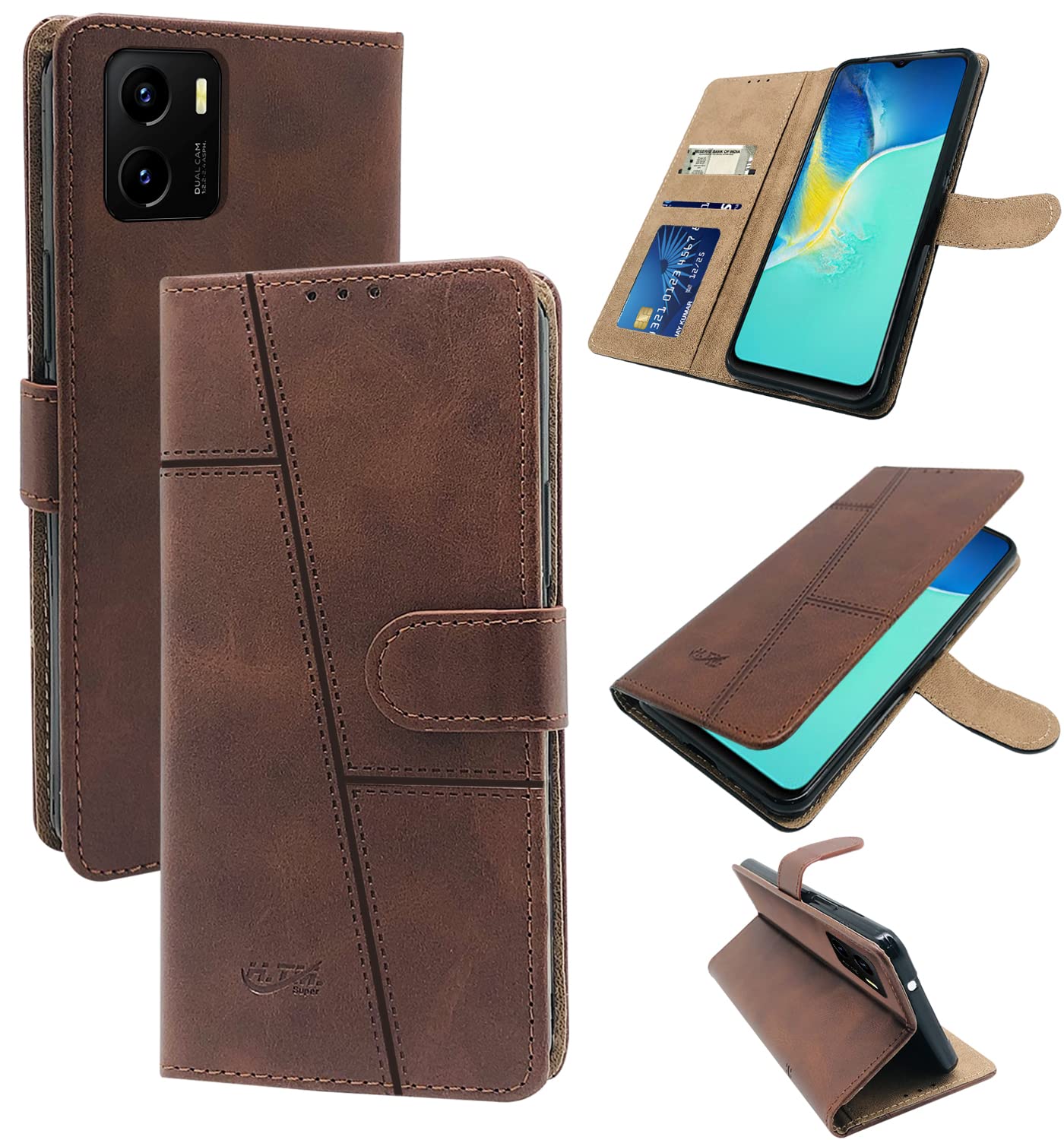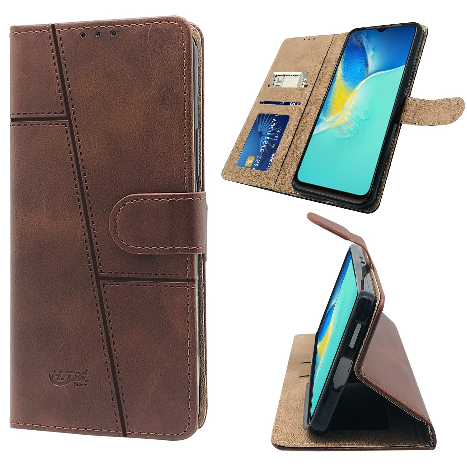 For Vivo Y15s (2021) | Y15A 2021 Flip Cover Case (Stitched Leather Finish | Magnetic Closure | Inner TPU | Foldable Stand | Wallet Card Slots)