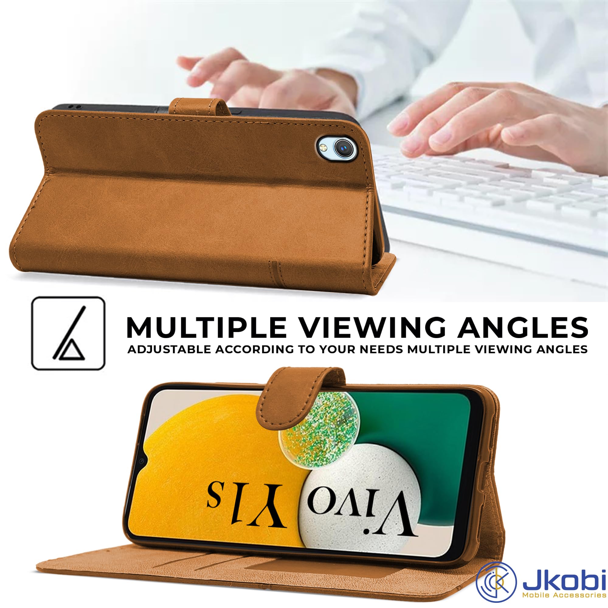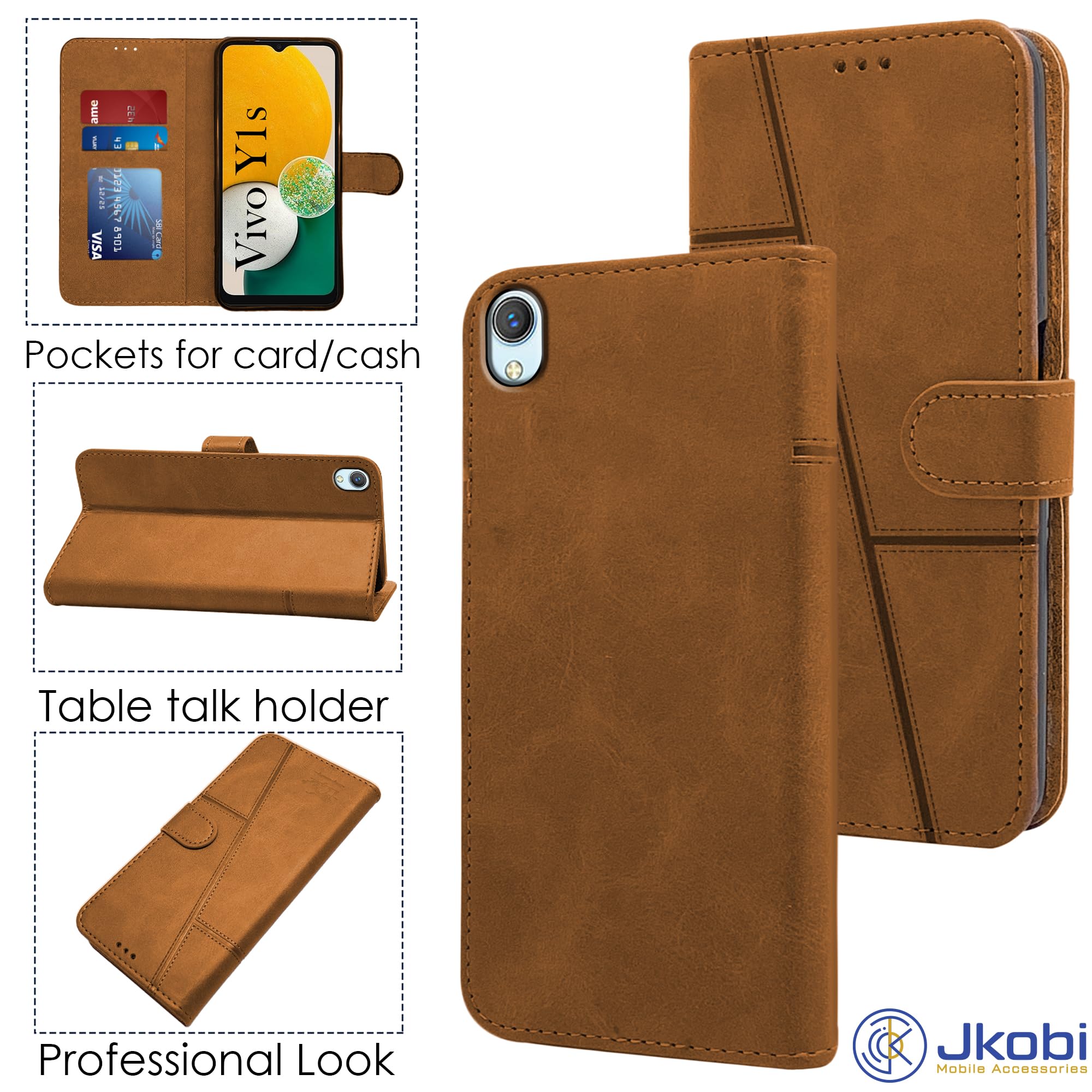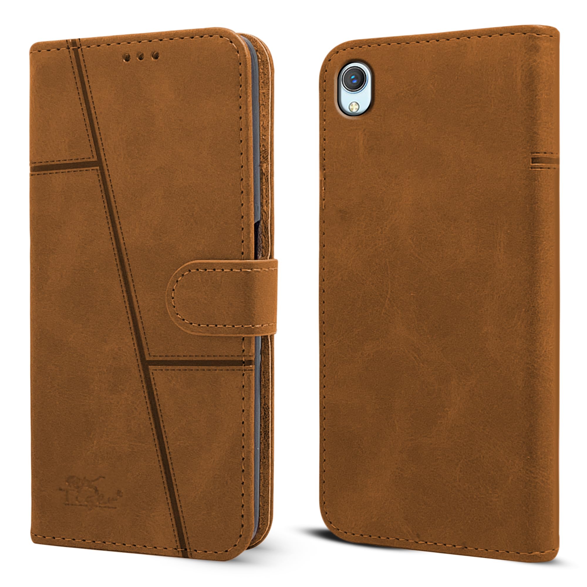 For Vivo Y1s Flip Cover Case (Stitched Leather with Magnetic Closure)
