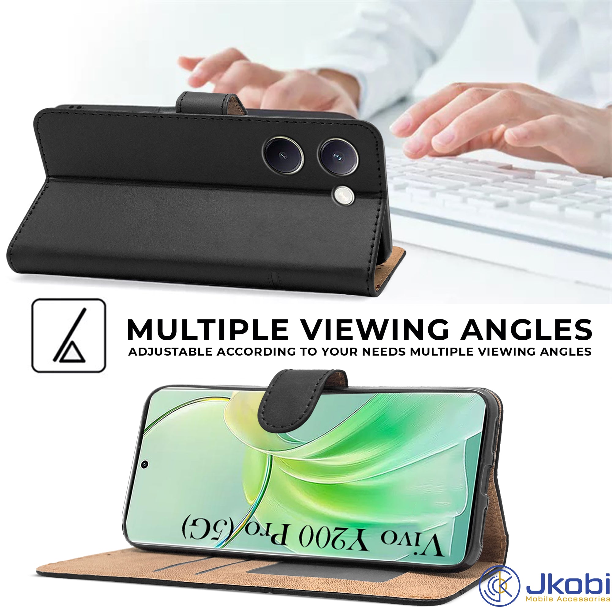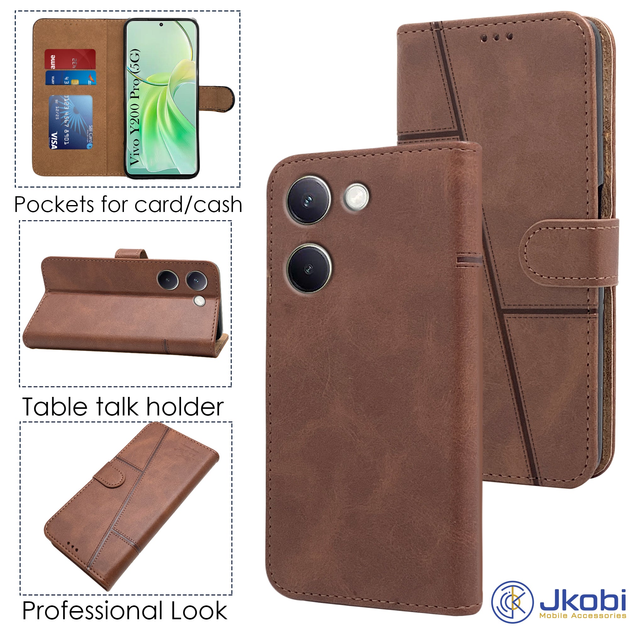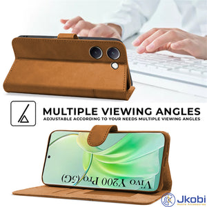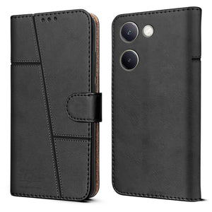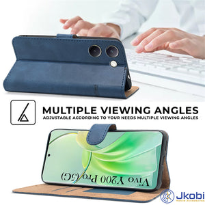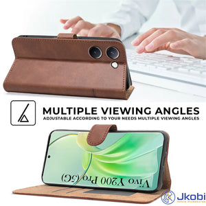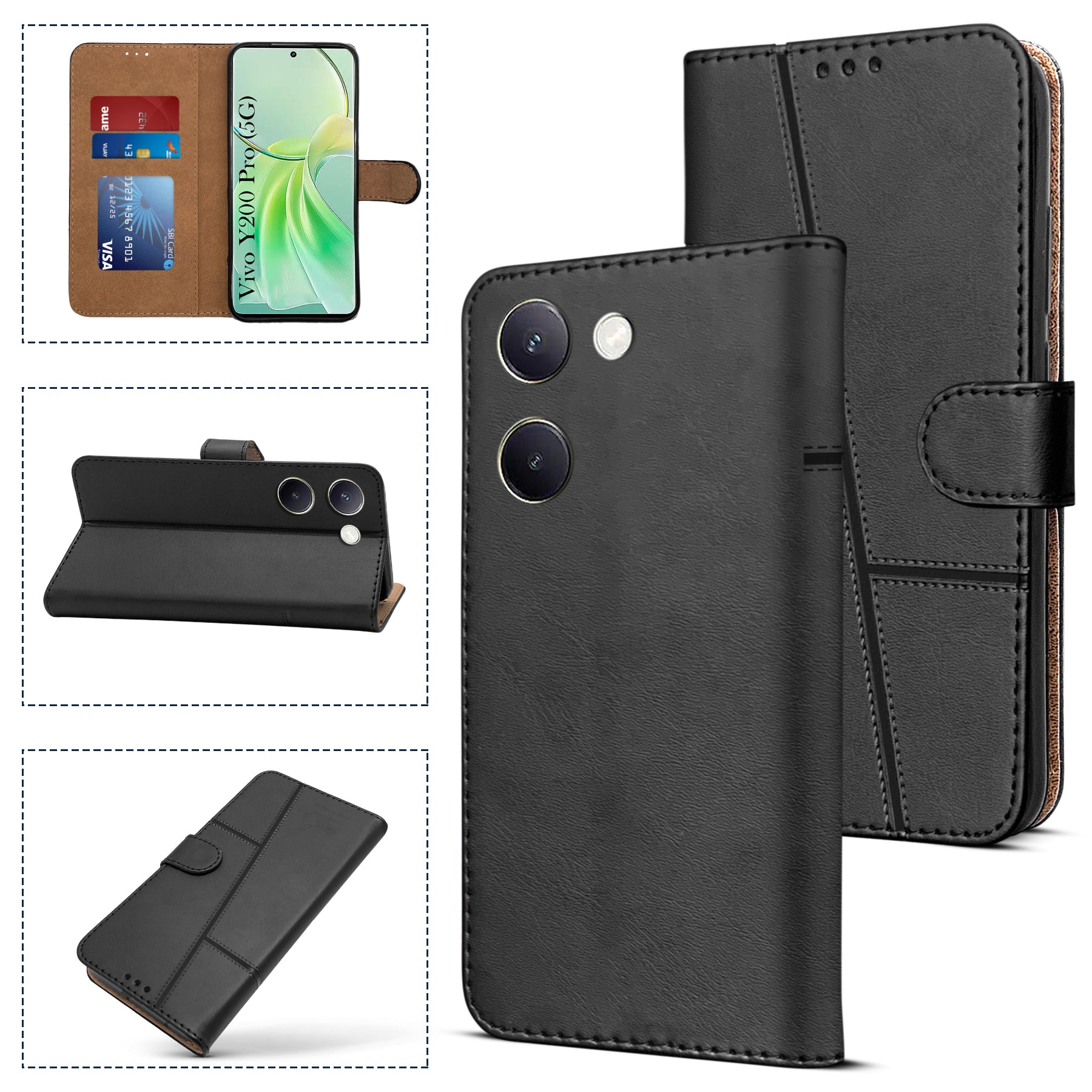 For Vivo Y200 Pro 5G Flip Cover Case (Stitched Leather with Magnetic Closure)