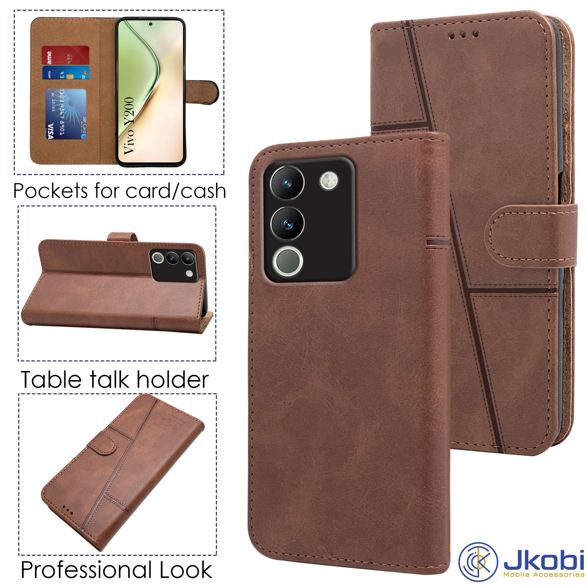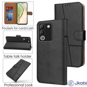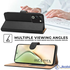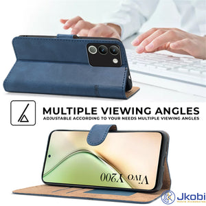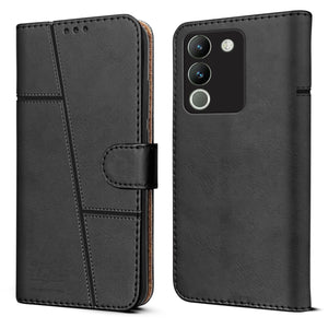 For Vivo Y200 Flip Cover Case (Stitched Leather with Magnetic Closure)
