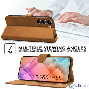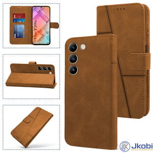 For Vivo Y200e Flip Cover Case (Stitched Leather with Magnetic Closure)