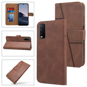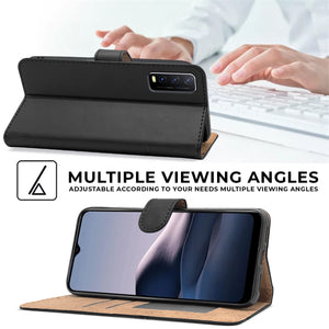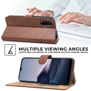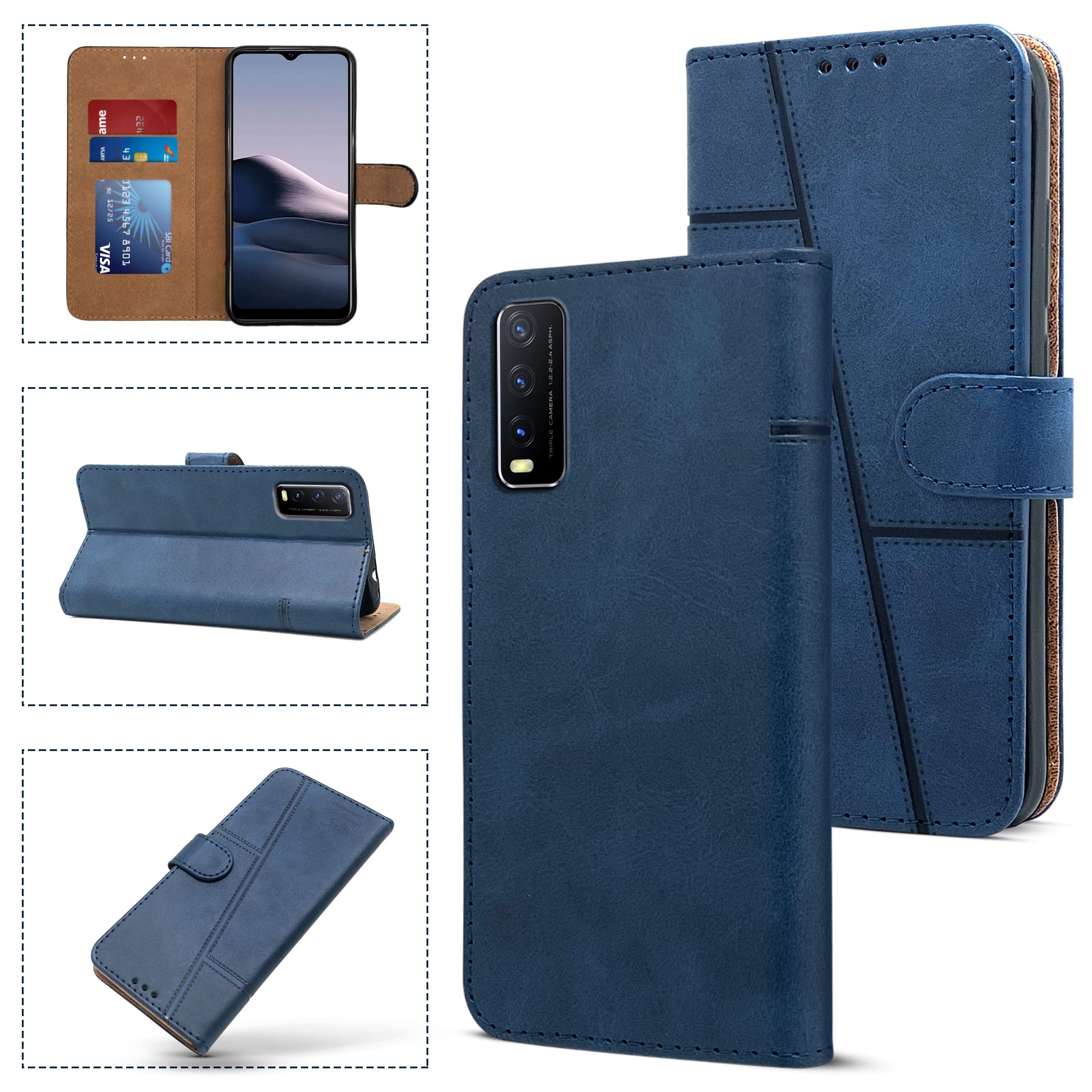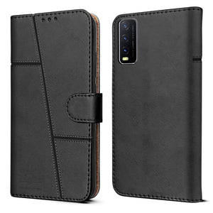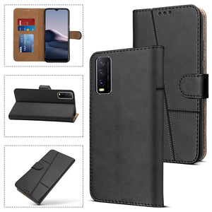 For Vivo Y20A | Y20T | Y20G Flip Cover Case (Stitched Leather Finish | Magnetic Closure | Inner TPU | Foldable Stand | Wallet Card Slots)