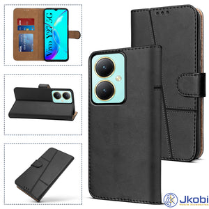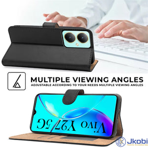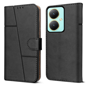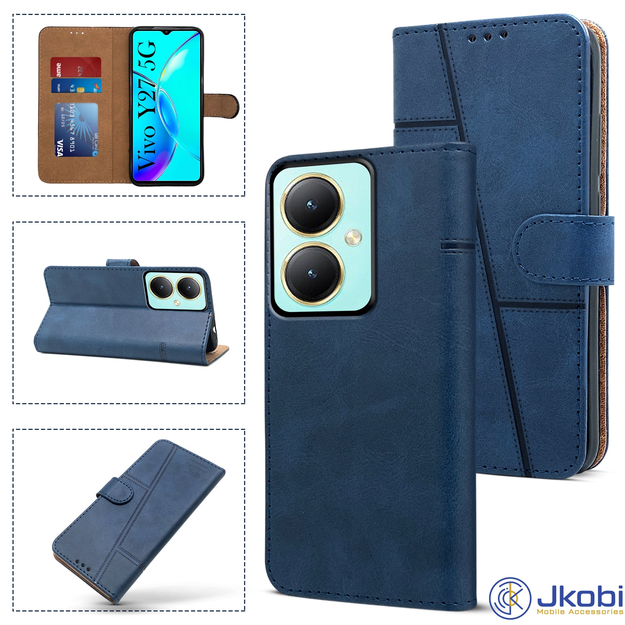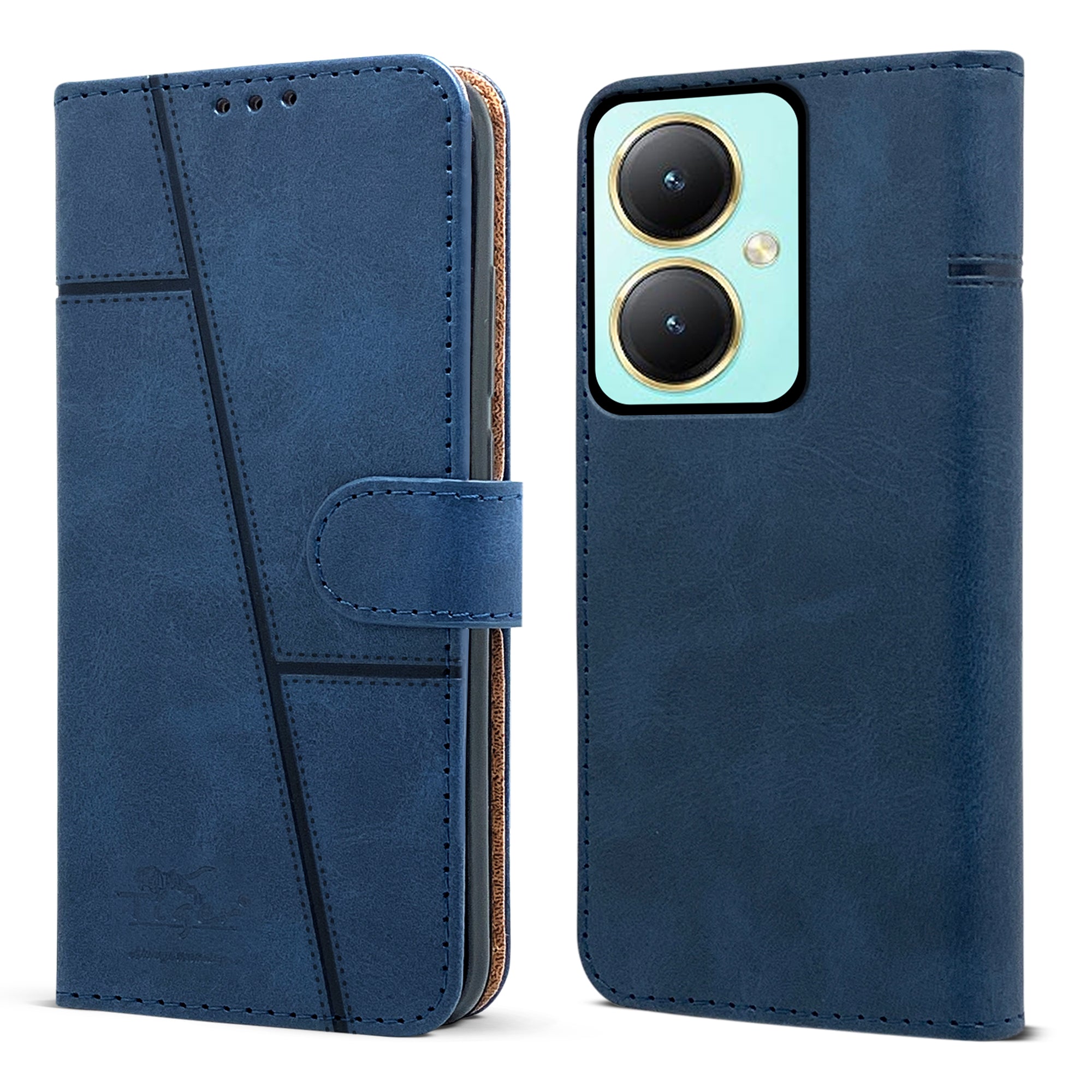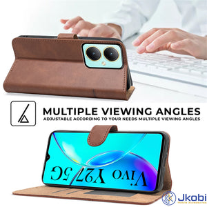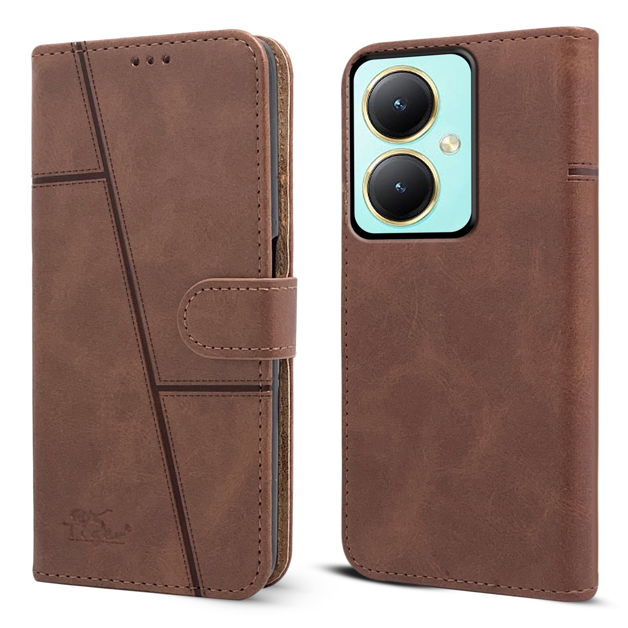 For Vivo Y27 Flip Cover Case (Stitched Leather with Magnetic Closure)