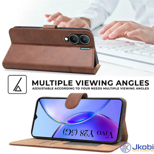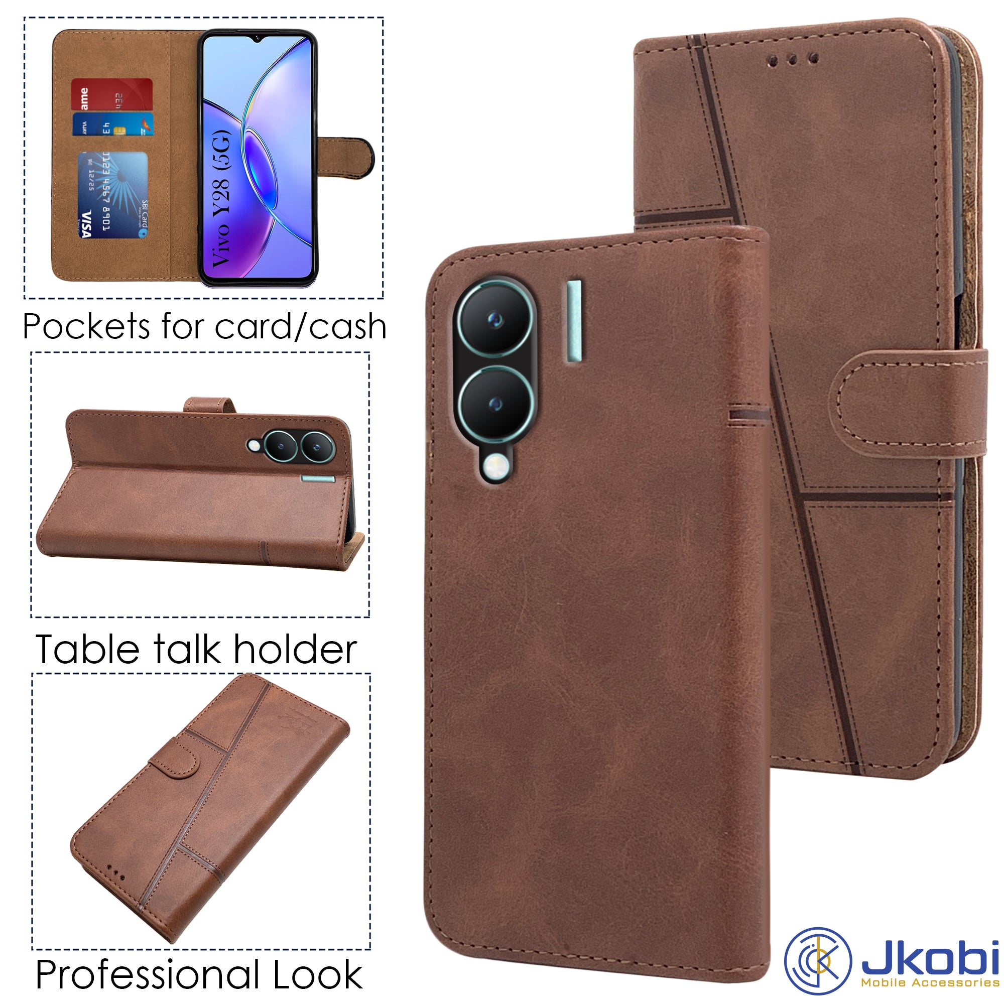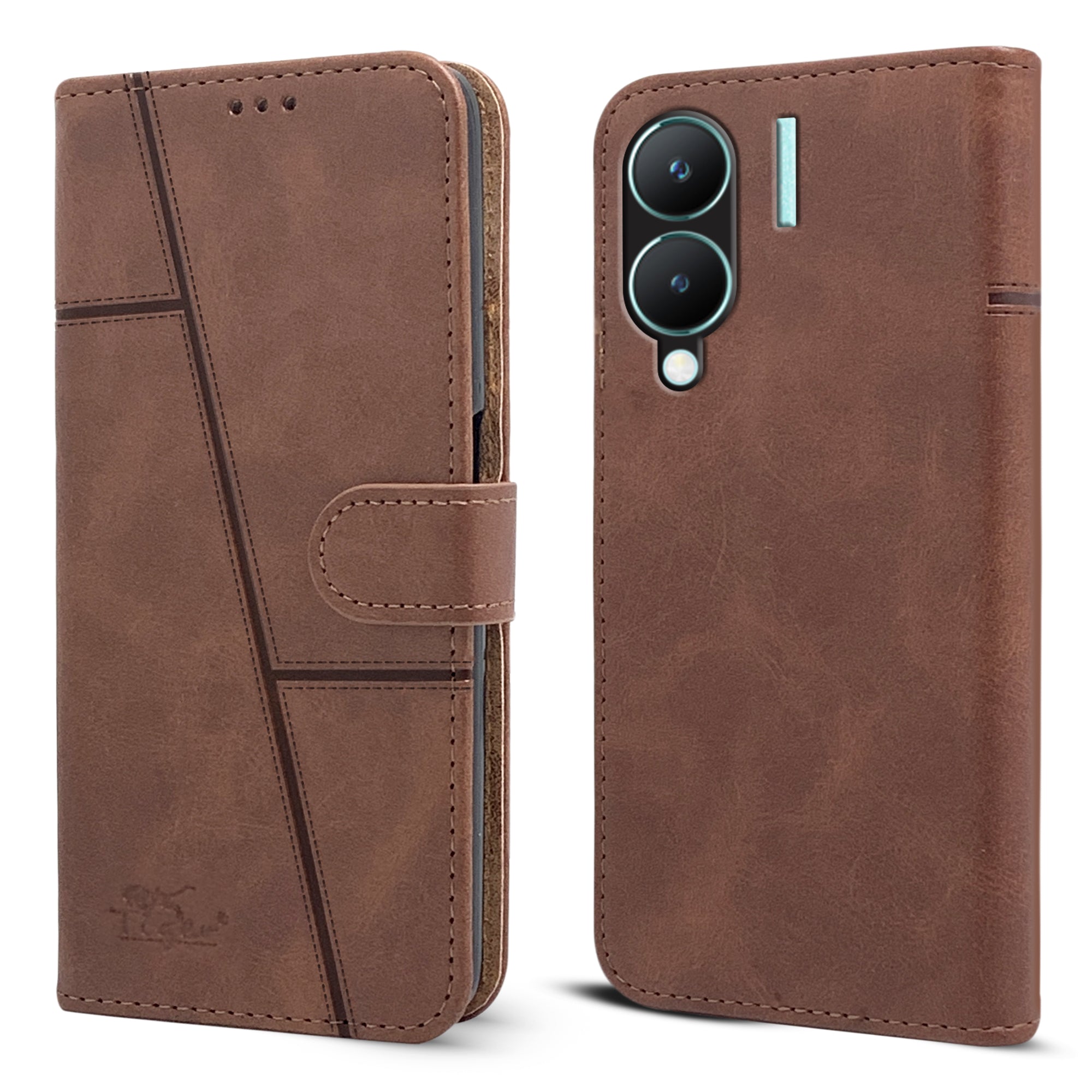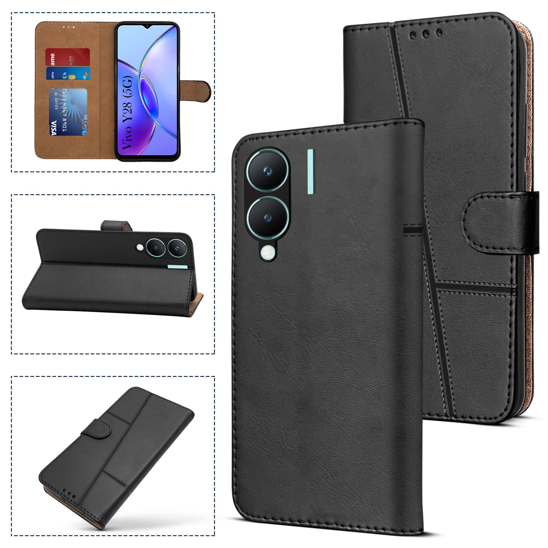 For VIVO Y28 5G Flip Cover Case (Stitched Leather with Magnetic Closure)
