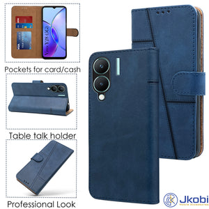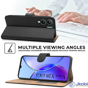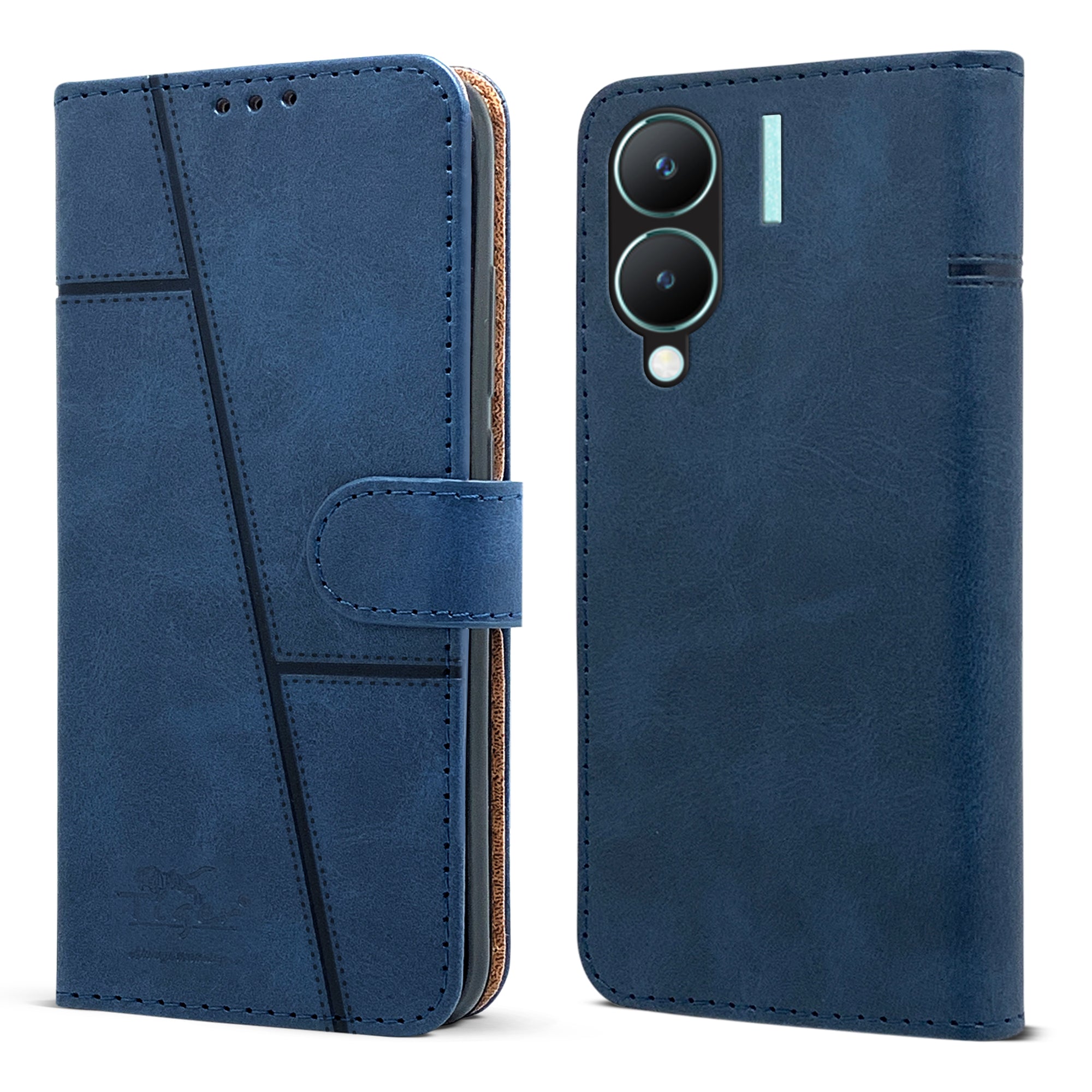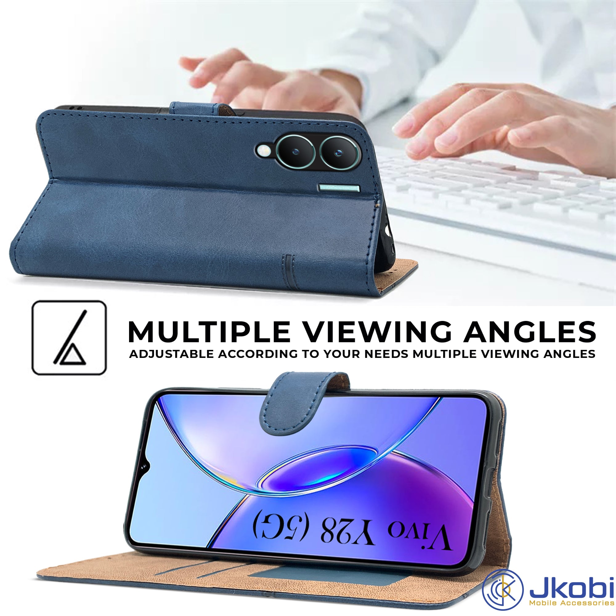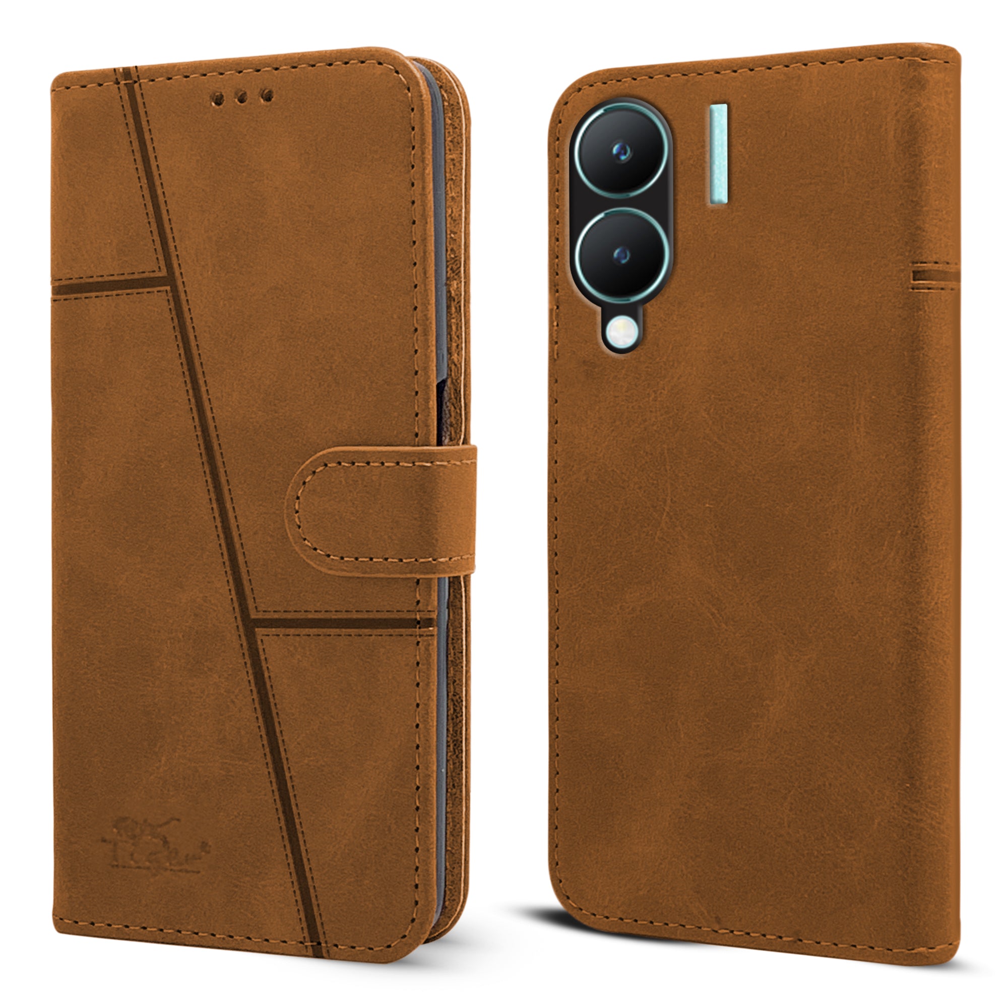 For VIVO Y28 5G Flip Cover Case (Stitched Leather with Magnetic Closure)